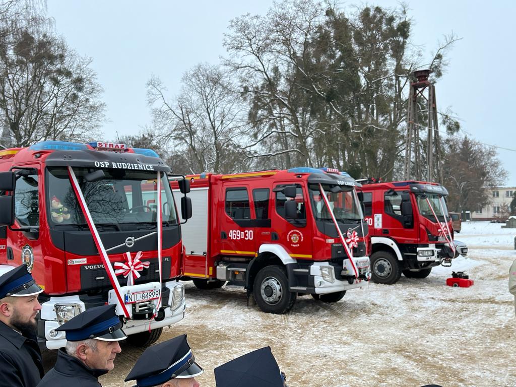 W piątek 8 grudnia w Rudzienicach odbyła się uroczysta zbiórka z okazji oficjalnego przekazana średnich samochodów ratowniczo-gaśniczych dla jednostek Ochotniczych Straży Pożarnych z Rudzienic, Ławic oraz Mątyk. Na placu przed remizą OSP uroczystość zainaugurowano złożeniem meldunku o gotowości pododdziałów do uroczystości, a odebrał go st. bryg. Tomasz Ostrowski Zastępca Warmińsko-Mazurskiego Komendanta Wojewódzkiego Państwowej Straży Pożarnej. Na uroczystości zgromadzili się strażacy ochotnicy, lokalne społeczeństwo oraz zaproszeni goście, obecni byli między innymi: Bogdan Bartnicki Członek Zarządu Województwa Warmińsko-Mazurskiego, Marek Polański Wicestarosta Powiatu Iławskiego, st. bryg. Tomasz Ostrowski Zastępca Warmińsko-Mazurskiego Komendanta Wojewódzkiego PSP wraz z st. bryg. Piotrem Wlazłowski Komendantem Powiatowym PSP w Iławie, dh Maciej Jasiński Dyrektor wykonawczy Zarządu Odziału Wojewódzkiego ZOSP RP w Olsztynie oraz dh Stanisław Kastrau Prezes Zarządu Powiatowego. Na uroczystości zgromadzili się również samorządowcy na czele z Wójtem Gminy Iława Krzysztofem Harmacińskim. Kulminacyjnym punktem uroczystości było wręczenie aktu przekazania, kluczyków i dokumentów do pojazdu. Ponadto jednostki Ochotniczych Straży Pożarnych z Laseczna, Starzykowa, Gałdowa, Stradomna, Siemian otrzymały nieodpłatnie sprzęt ratowniczy tj. motopompy, aparaty powietrzne oraz przecinarkę do stali i betonu przekazaną przez Warmińsko-Mazurskiego Komendanta Wojewódzkiego PSP.