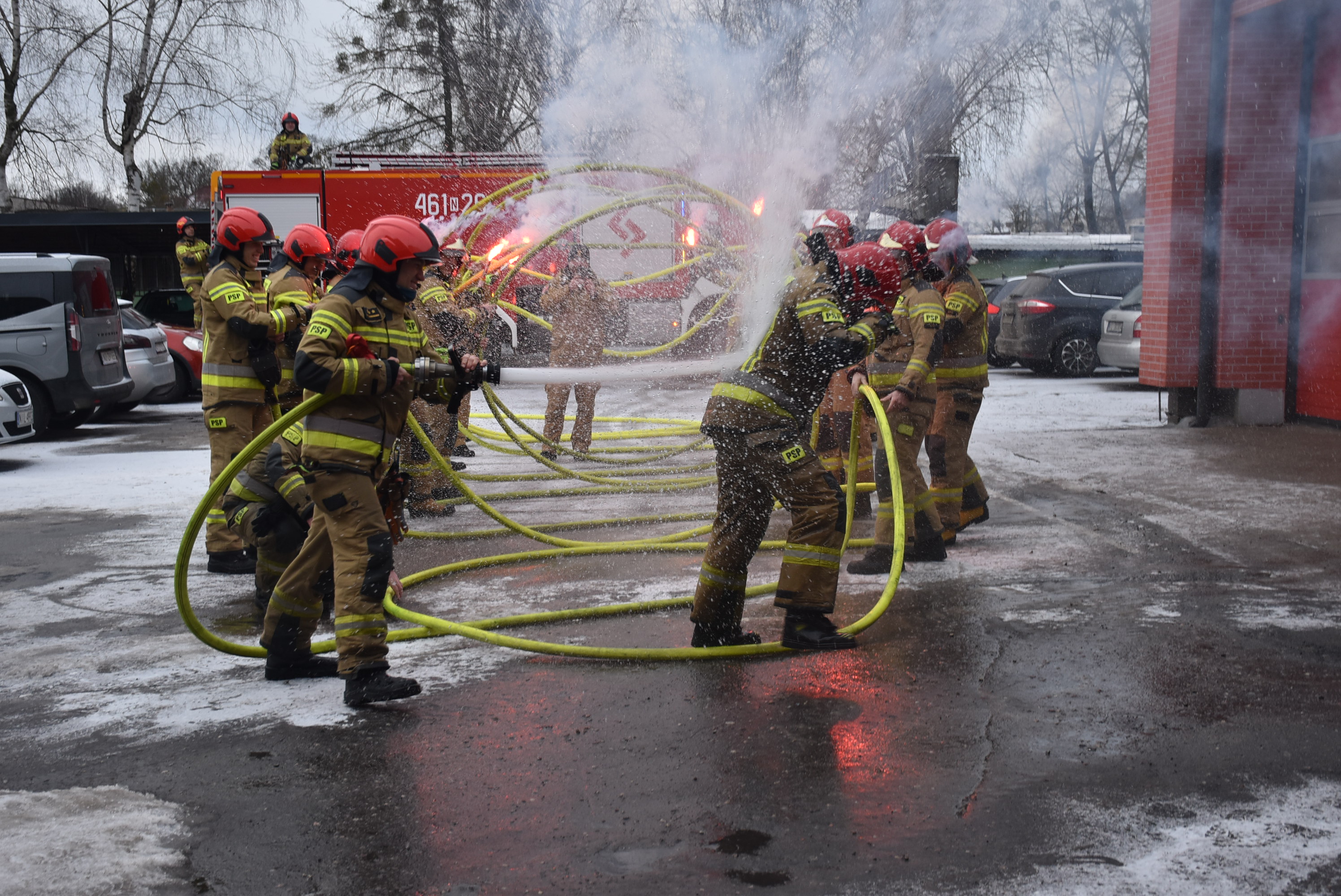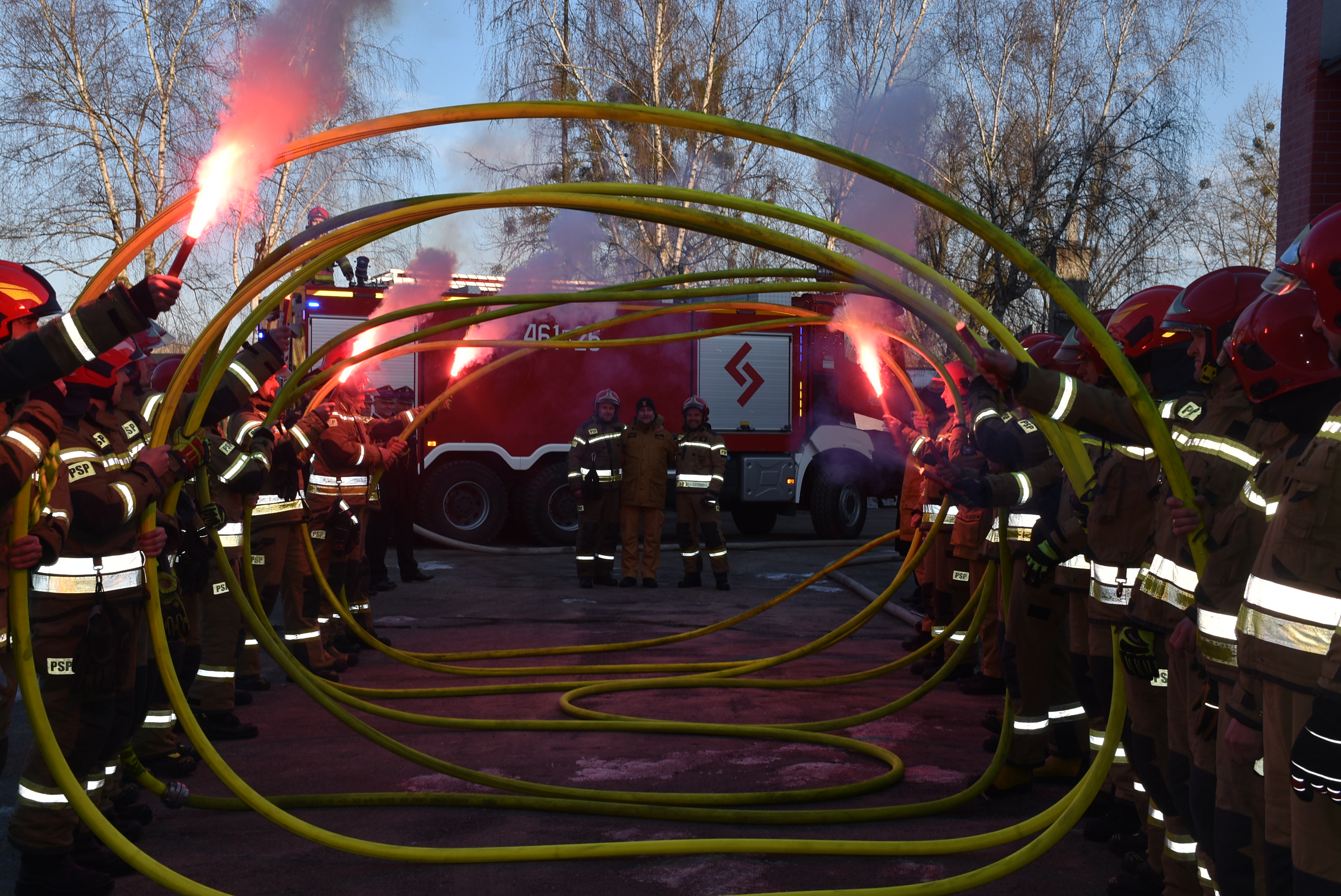 W dniach 25 oraz 26 lutego o godz. 8:00 miały również miejsce uroczyste zmiany służby w podziale bojowym iławskiej Jednostki Ratowniczo – Gaśniczej podczas, których ww. funkcjonariusze po raz ostatni zdali swoje obowiązki służbowe. W ramach podziękowania za wspólne lata służby wszyscy strażacy iławskiej JRG przygotowali tradycyjne pożegnanie w formie szpaleru z wykorzystaniem węża pożarniczego zakończonego kąpielą w zbiorniku z wodą. Na koniec wykonano wspólne pamiątkowe zdjęcia.