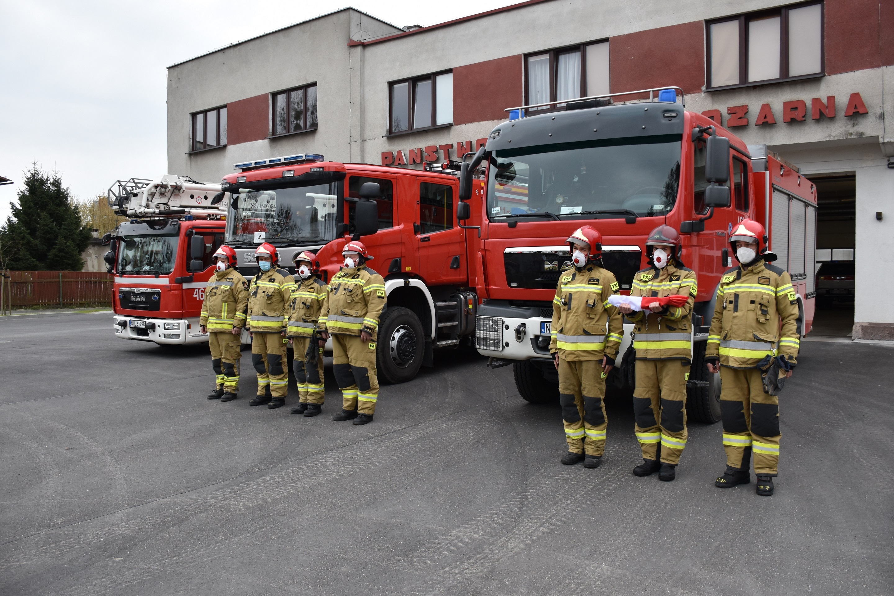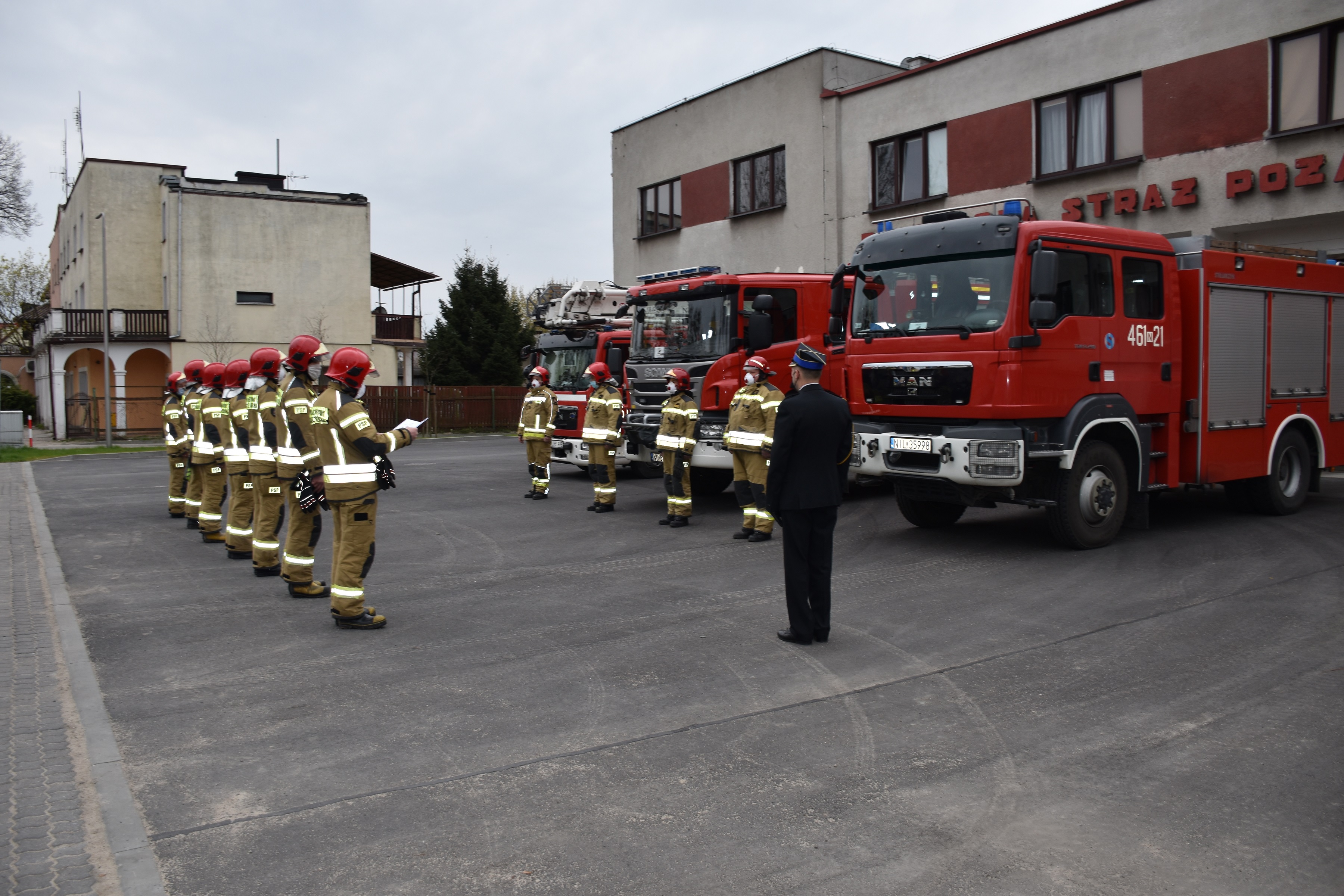 Uroczysta zmiana służby z okazji Dnia Flagi Rzeczpospolitej Polskiej w Komendzie Powiatowej Państwowej Straży Pożarnej w Iławie.