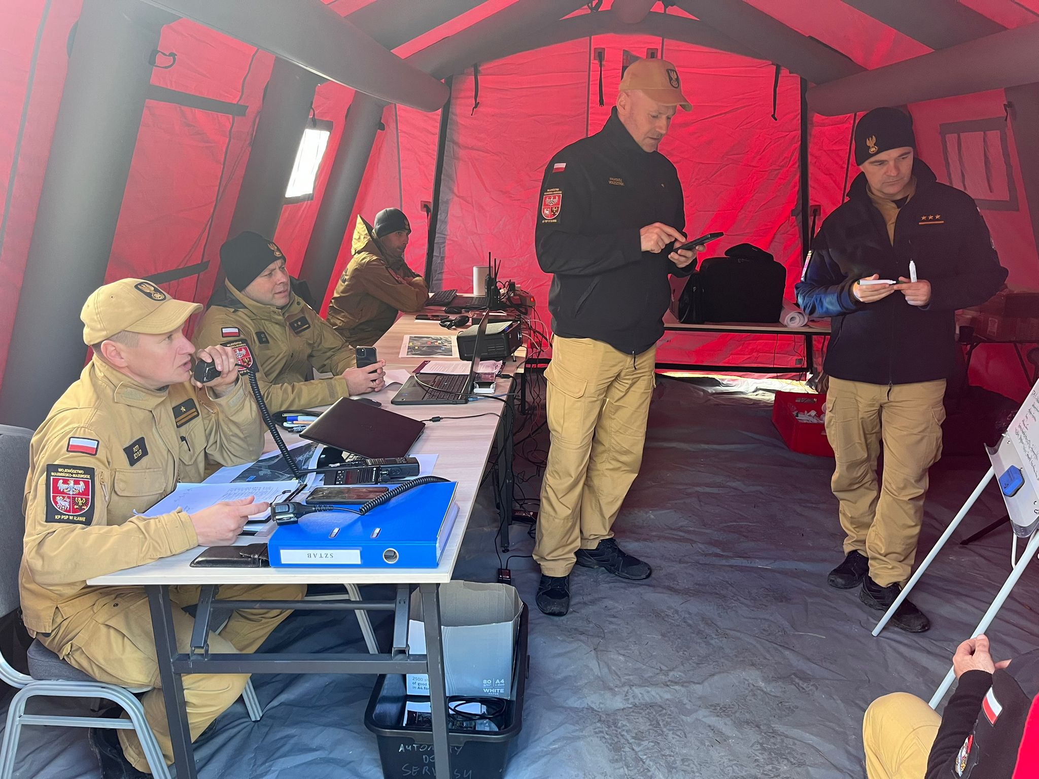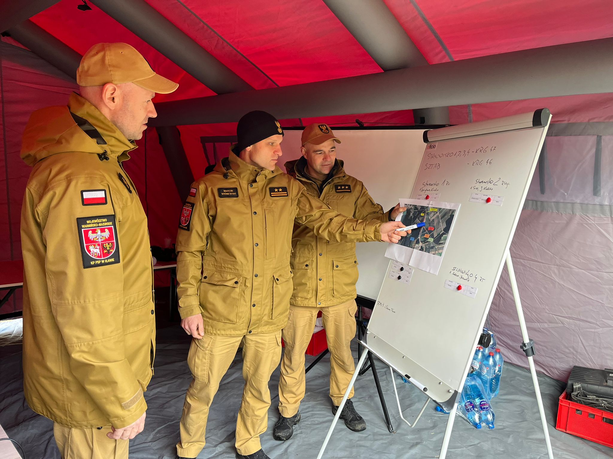 Po odprawie z dowódcami przybyłych zastępów utworzony na miejscu sztab doraźny rozpoczął koordynowanie i dysponowanie sił i środków na poszczególne przygotowane wcześniej stanowiska.