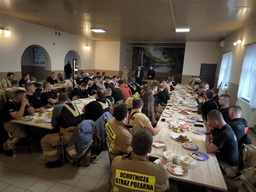 Dzięki wsparciu i uprzejmości Wójta Gminy Lubawa Pana Tomasza Ewertowskiego po zakończonych ćwiczeniach wszyscy strażacy zostali zaproszeni do świetlicy przy remizie OSP Kazanice na ciepłą strażacką grochówkę przygotowaną przez tutejszych druhów.