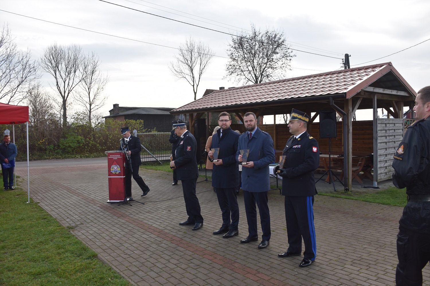 W uroczystej zbiórce udział wzięli: Parlamentarzyści w osobach Zbigniewa Babalskiego oraz Roberta Gontarza, Wiceminister Aktywów Państwowych Pan Andrzej Śliwka, Wicewojewoda Warmińsko – Mazurski Piotr Opaczewski, Pana Jarosław Bogusz – Prezes Wojewódzkiego Funduszu Ochrony Środowiska i Gospodarki Wodnej w Olsztynie Warmińsko – Mazurski Komendant Wojewódzki Państwowej Straży Pożarnej nadbrygadier Tomasz Komoszyński, Komendant Powiatowy PSP w Iławie starszy brygadier