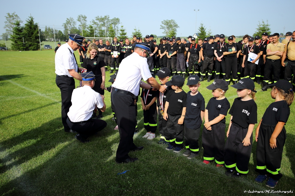 Na koniec zawodów tradycyjnie już swoje umiejętności pokazali najmłodsi strażacy z dziecięcej drużyny OSP Łążyn.