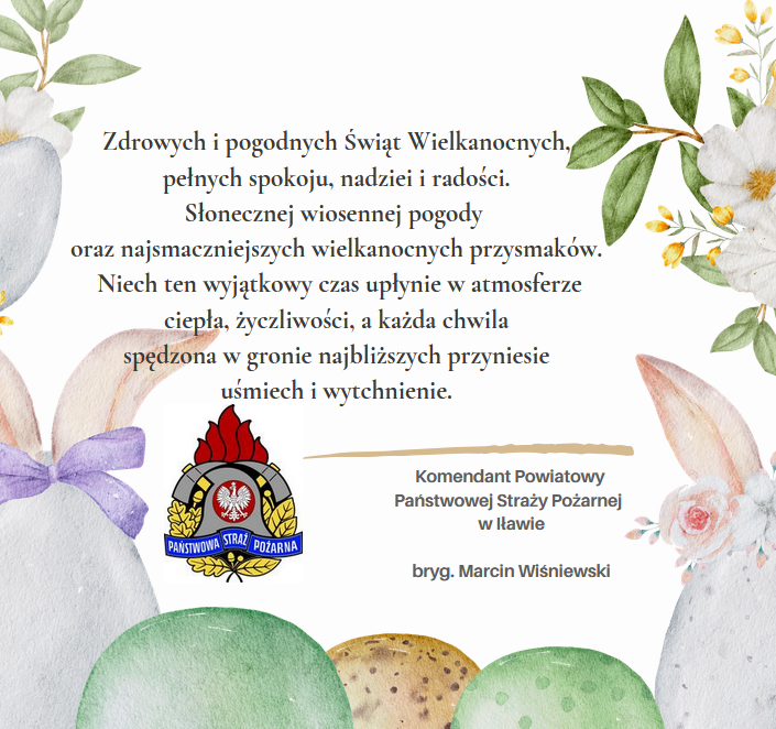 Życzenia Komendanta Powiatowego PSP w Iławie z okazji Świąt Wielkanocnych 03.04.2026 Zdjęcia (1) Pokaż zdjęcie 1 z galerii.