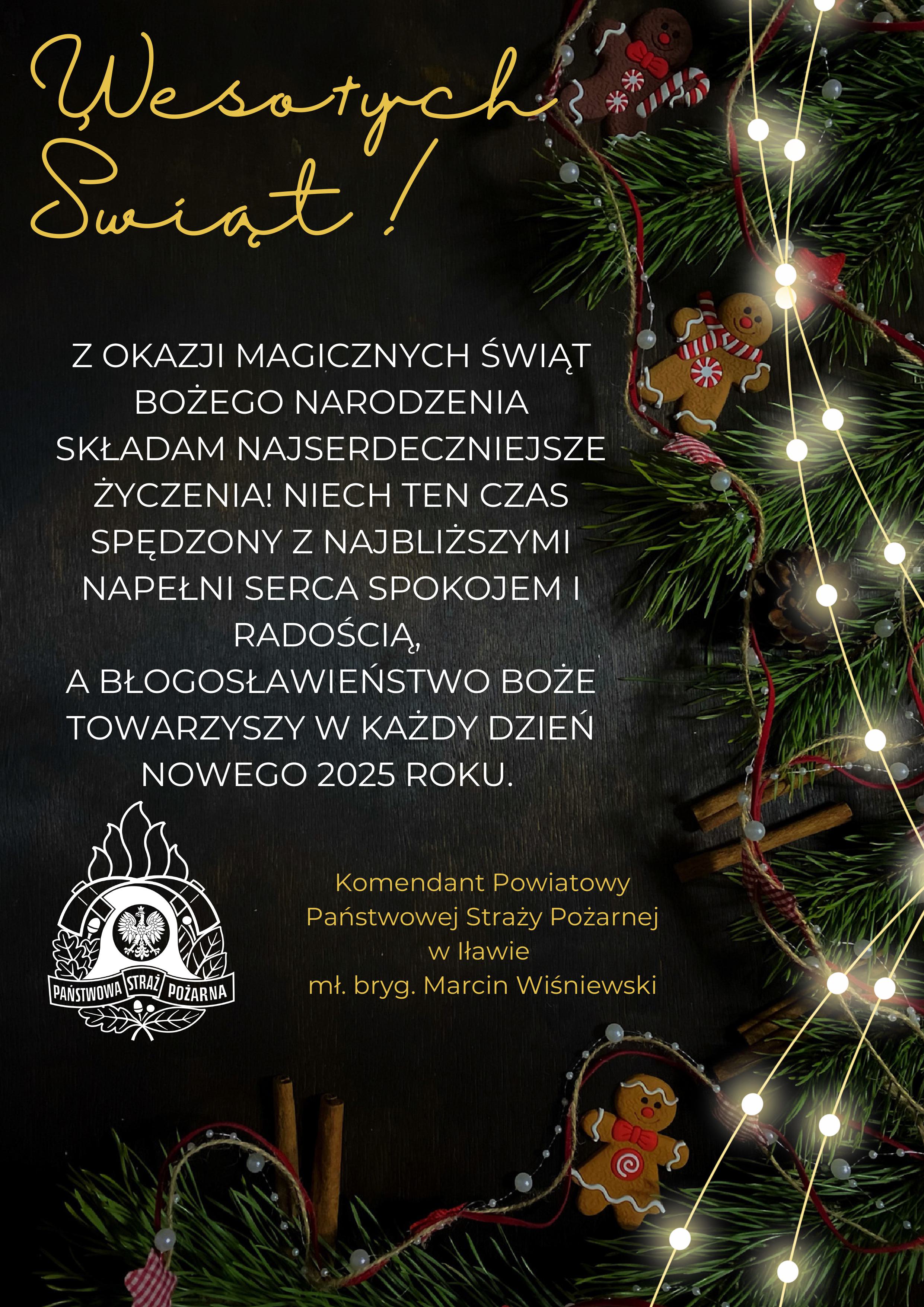 Życzenia świąteczne Komendanta Powiatowego PSP w Iławie 24.12.2024 Zdjęcia (1) Pokaż zdjęcie 1 z galerii.