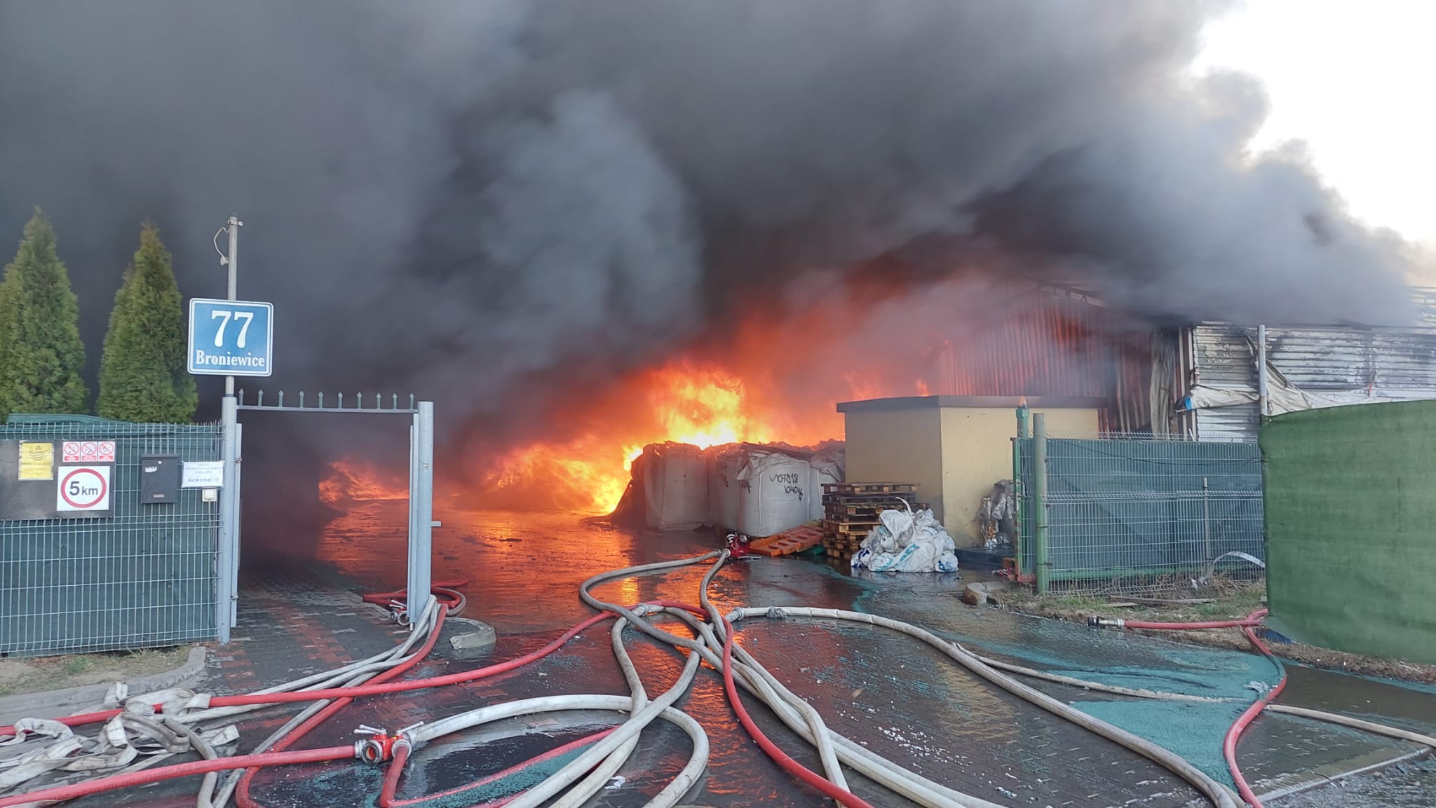 Bardzo duży pożar na terenie zakładu tworzyw sztucznych w Broniewicach