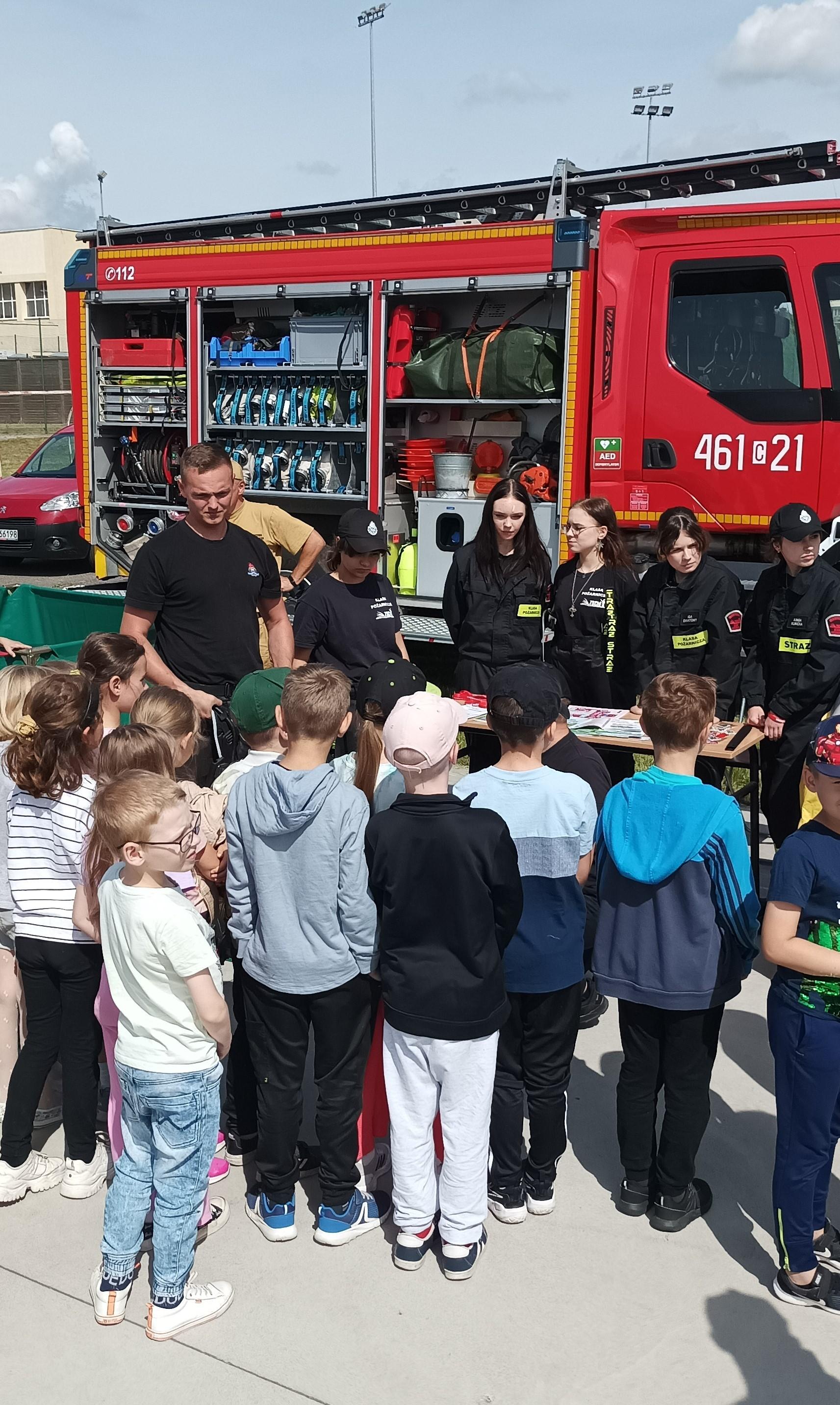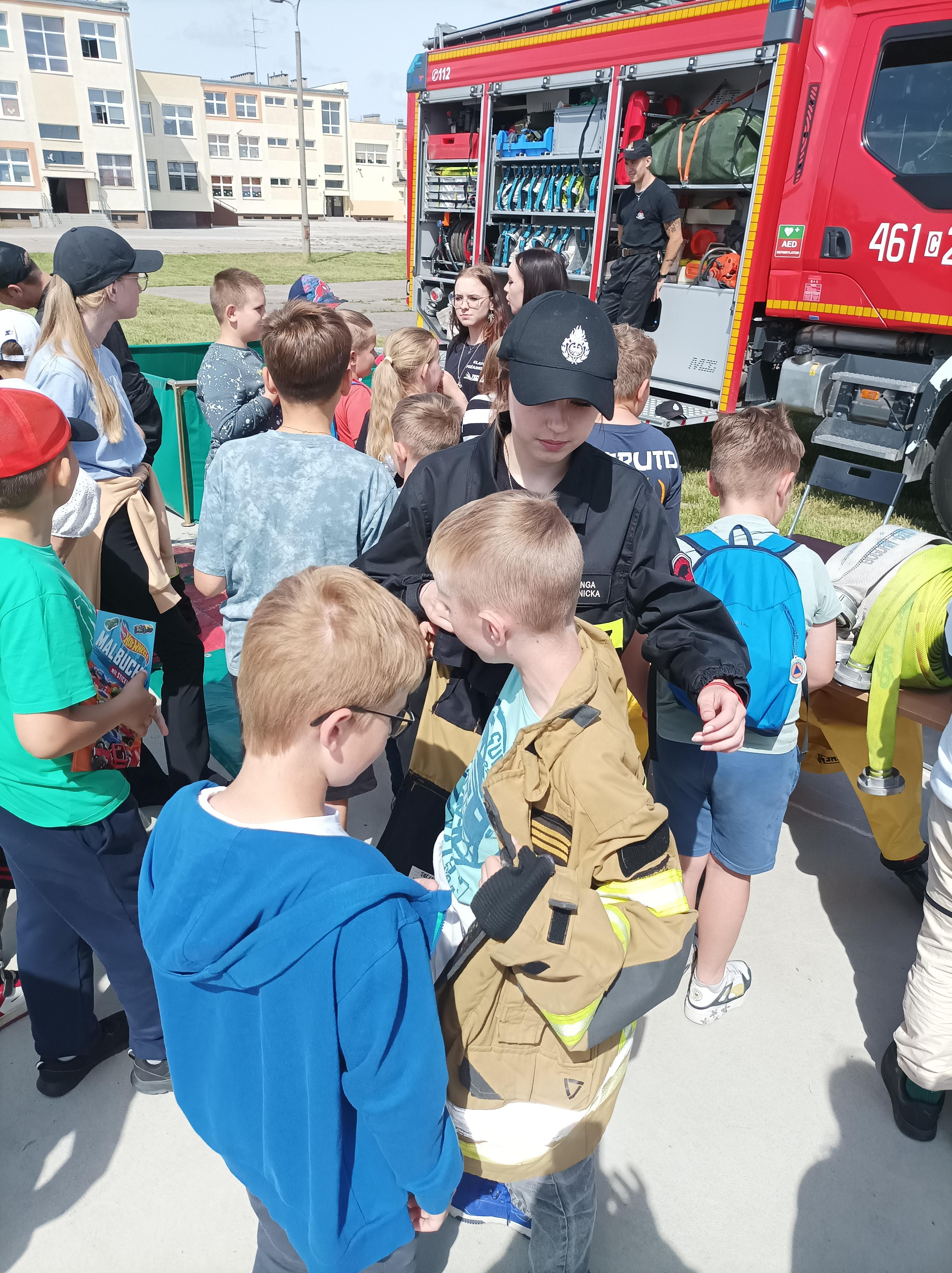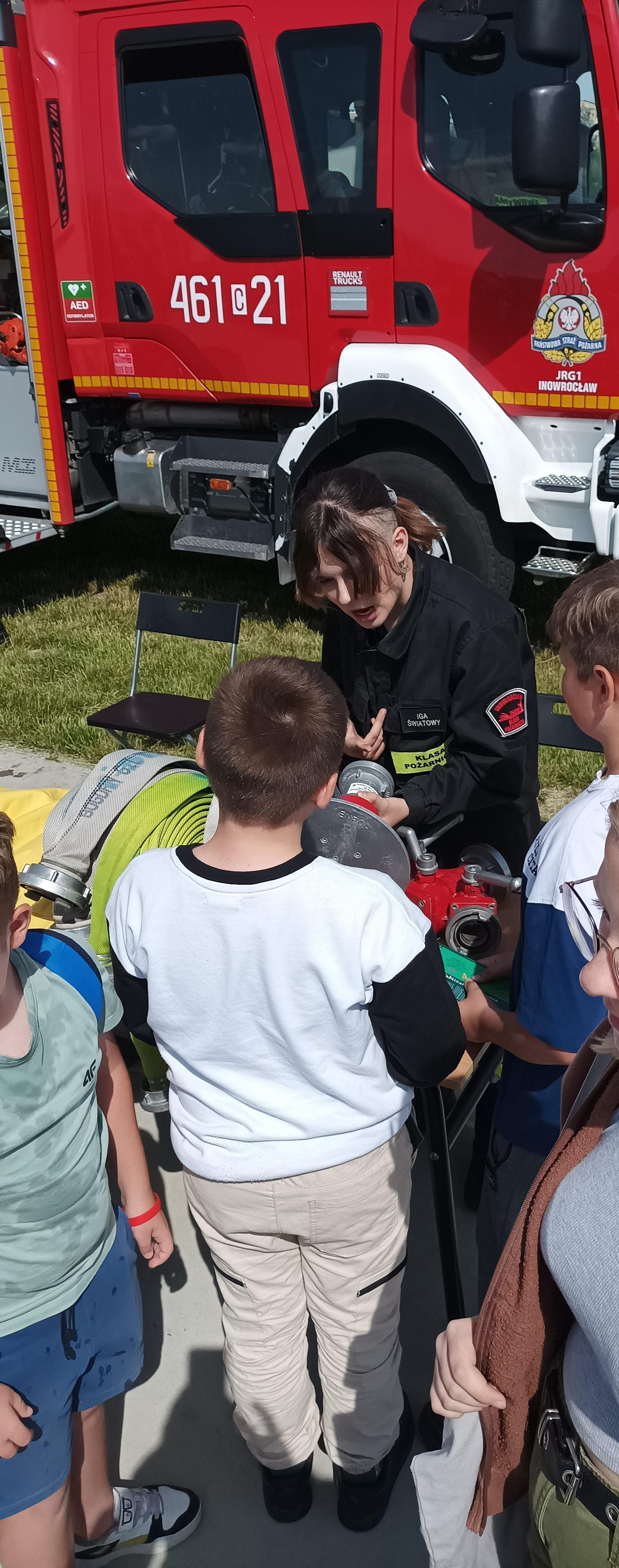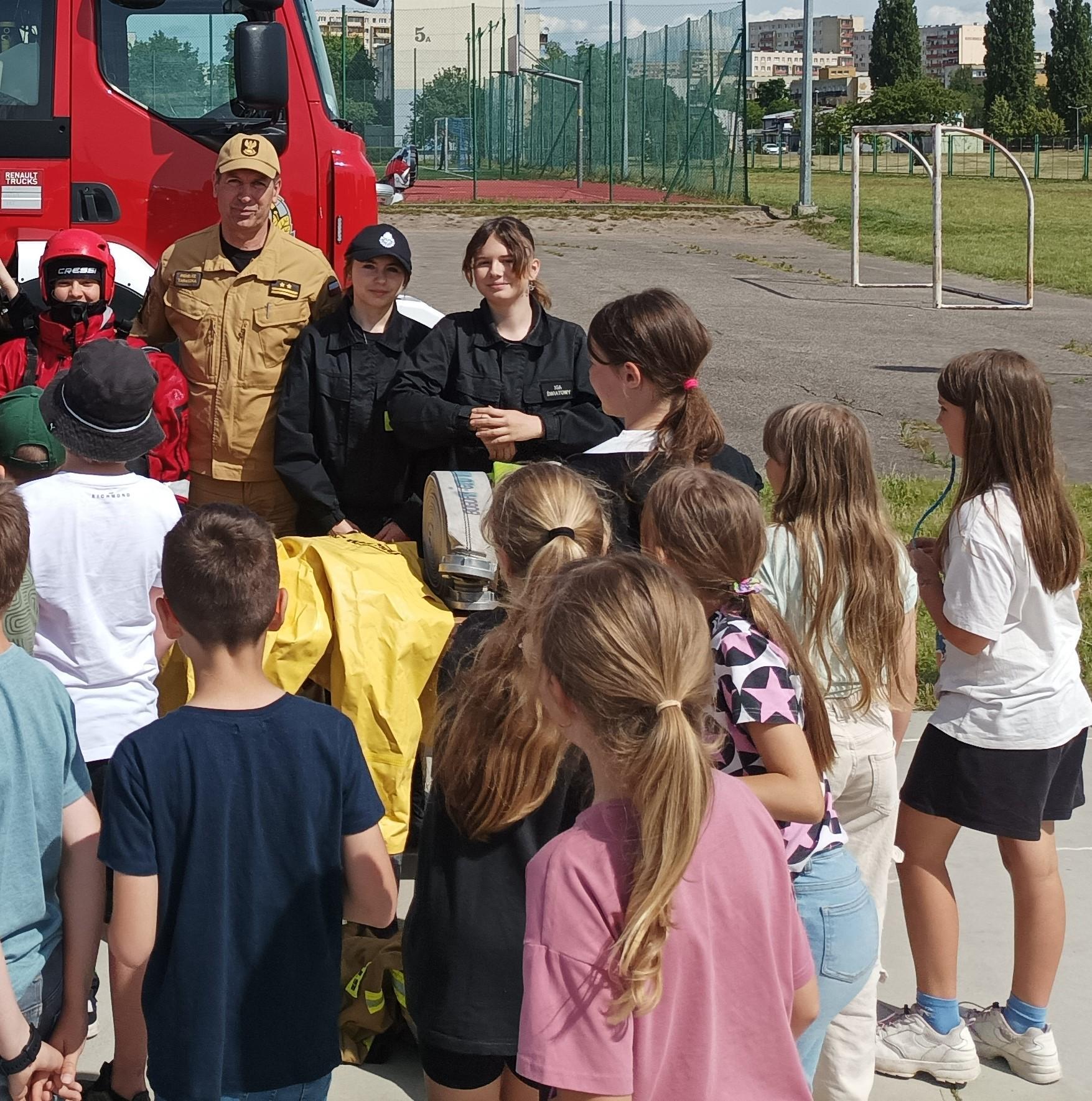 14 czerwca br. na terenie Szkoły Podstawowej nr 5 im. dra Józefa Krzymińskiego w Inowrocławiu, przy ul. Stanisława Kiełbasiewicza 7 odbył się festyn pod hasłem „Bezpieczne Wakacje 2024”. W inicjatywę czynnie włączyli się inowrocławscy strażacy oraz uczniowie Zespołu Szkół Chemiczno-Elektronicznych im. Jana Pawła II w Inowrocławiu, klasa Ia LO o profilu pożarniczym. Strażacy przygotowali między innymi pokaz sprzętu przeznaczonego do ratownictwa wodnego, a uczniowie przekazywali informacje na temat różnych zagrożeń w okresie wakacyjnym.