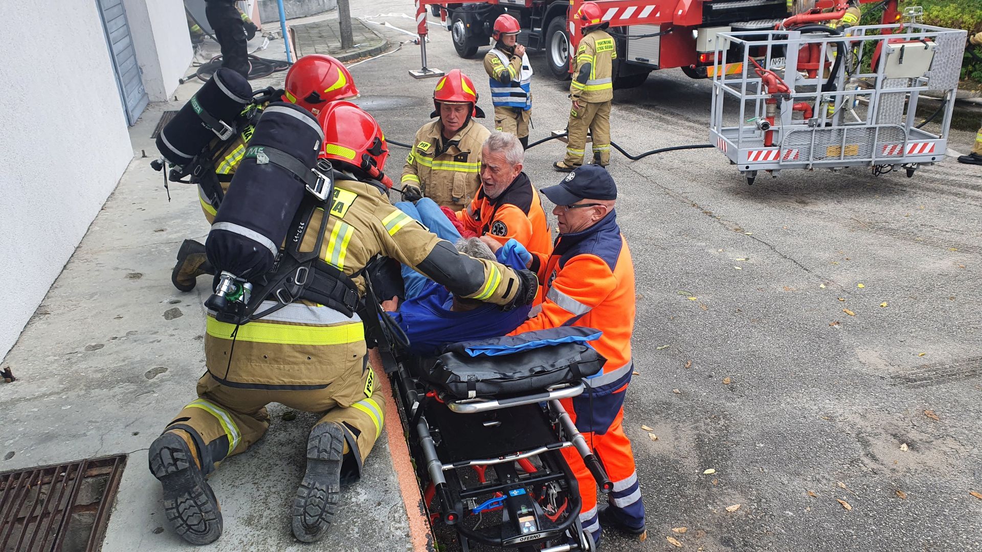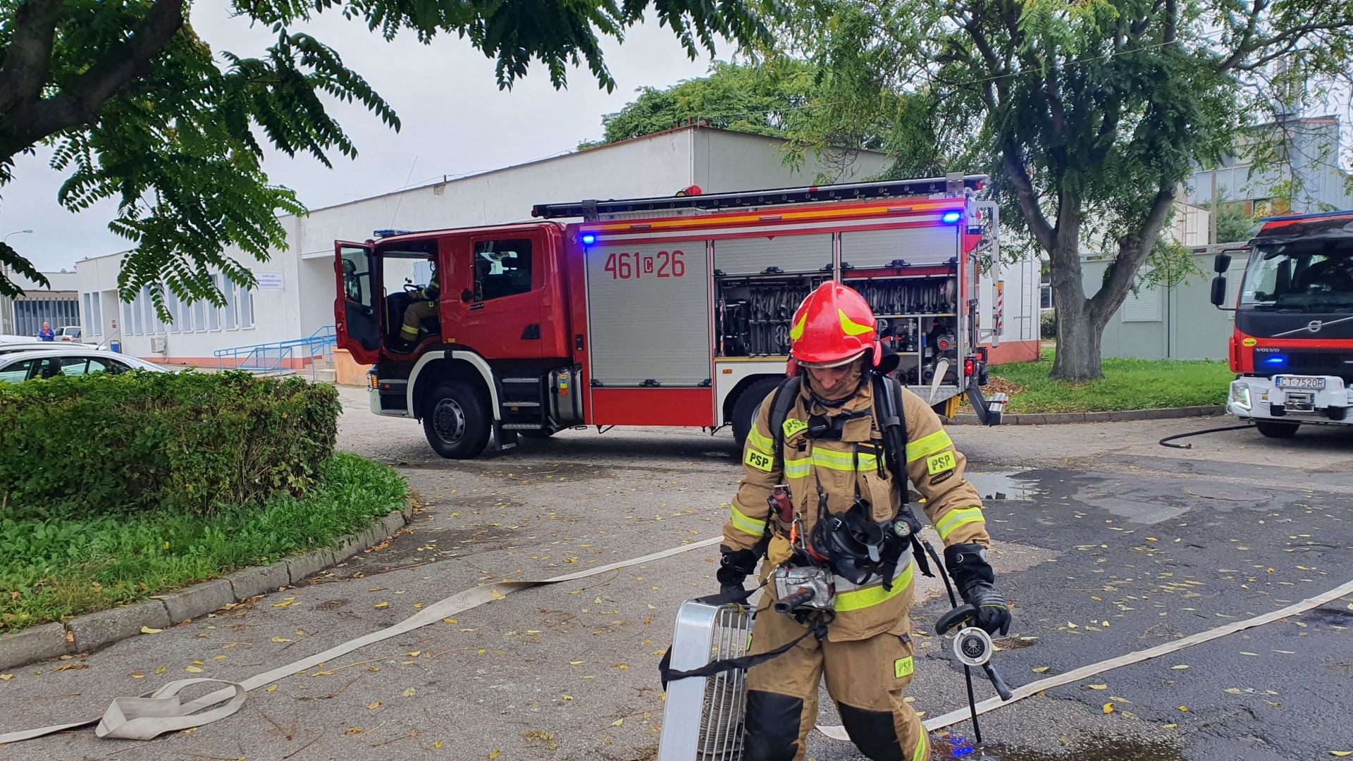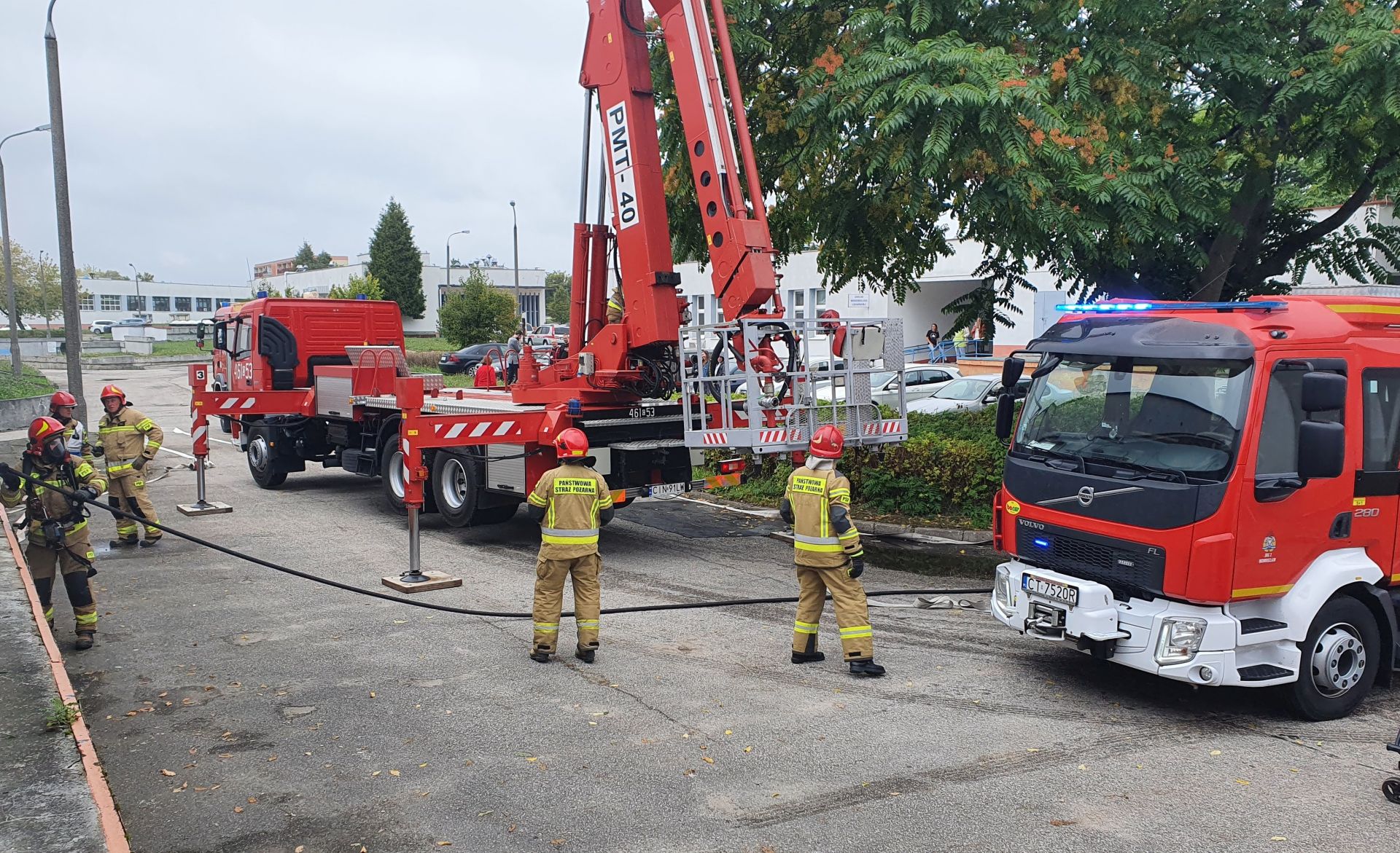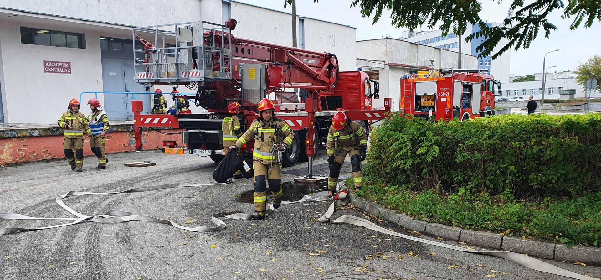 17.09.2021 r. zgodnie z rocznym planem szkolenia KP PSP Inowrocław odbyły się ćwiczenia na terenie Szpitala Powiatowego w Inowrocławiu (budynek archiwum) z zakresu ewakuacji oraz prowadzenia działań gaśniczych. Zadaniem funkcjonariuszy JRG 1 oraz JRG 2 była ewakuacja osób poszkodowanych oraz prowadzenie działań gaśniczych w wewnątrz budynku oraz na zewnątrz przy użyciu podnośnika.