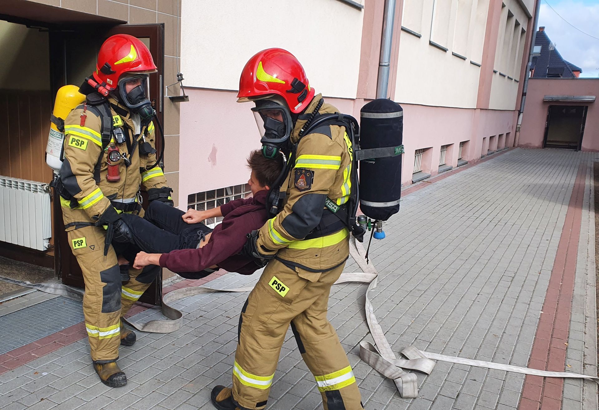 20.09.2021 na terenie Zespołu Szkół Chemiczno-Elektronicznych im. Jana Pawła II w Inowrocławiu odbyły się ćwiczenia dzienne na obiekcie. Udział wzięły zastępy z JRG 1 i 2 Inowrocław oraz OSP przy CIECH Soda Polska S.A. Celem ćwiczeń było między innymi przeprowadzenie próbnej ewakuacji uczniów oraz pracowników, a także prowadzenie działań gaśniczych wewnątrz budynku. Dzięki takim zajęciom można było sprawdzić współpracę strażaków z kadrą dydaktyczna przy ewakuacji, jak i również wypracować pewne techniki działań.