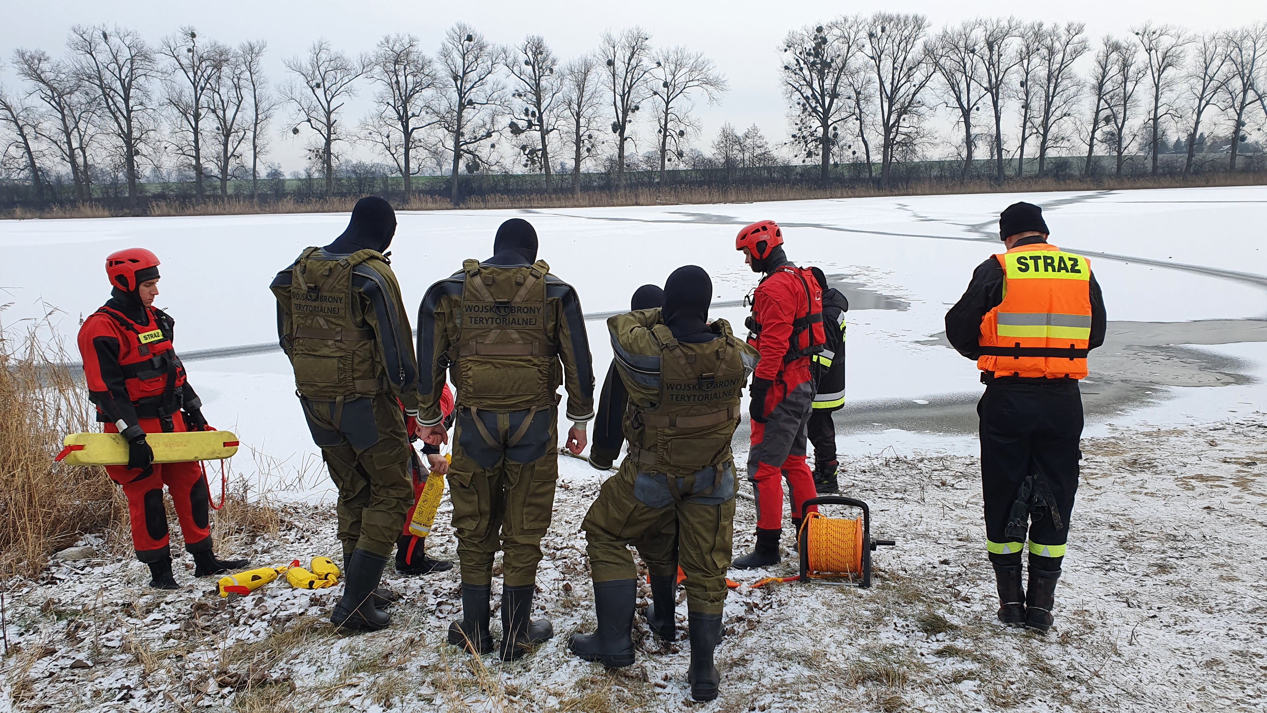 Aktualne warunki pogodowe umożliwiają przeprowadzenie ćwiczeń w zakresie ratownictwa lodowego. 22 -23 grudnia 2021 roku funkcjonariusze KP PSP w Inowrocławiu przeprowadzili takie szkolenie na akwenie w Łojewie. Szkolenie dedykowane było dla żołnierzy 8 Kujawsko – Pomorskiej Brygady Wojsk Obrony Terytorialnej. Terytorialsi uczyli się sposobów dotarcia do osoby poszkodowane znajdującej się w lodowatej wodzie, wykonania dostępu do poszkodowanego oraz jego ewakuacji do miejsca bezpiecznego, samoratowania po załamaniu się tafli lodowej, metod zabezpieczenia i asekuracji ratowników. Rolę instruktorów pełnili st. ogn. Łukasz Brzeziński oraz mł. ogn. Mateusz Matuszak. Nabyta wiedza i umiejętności będą przydatne żołnierzom podczas prowadzenia działań w warunkach zimowych.