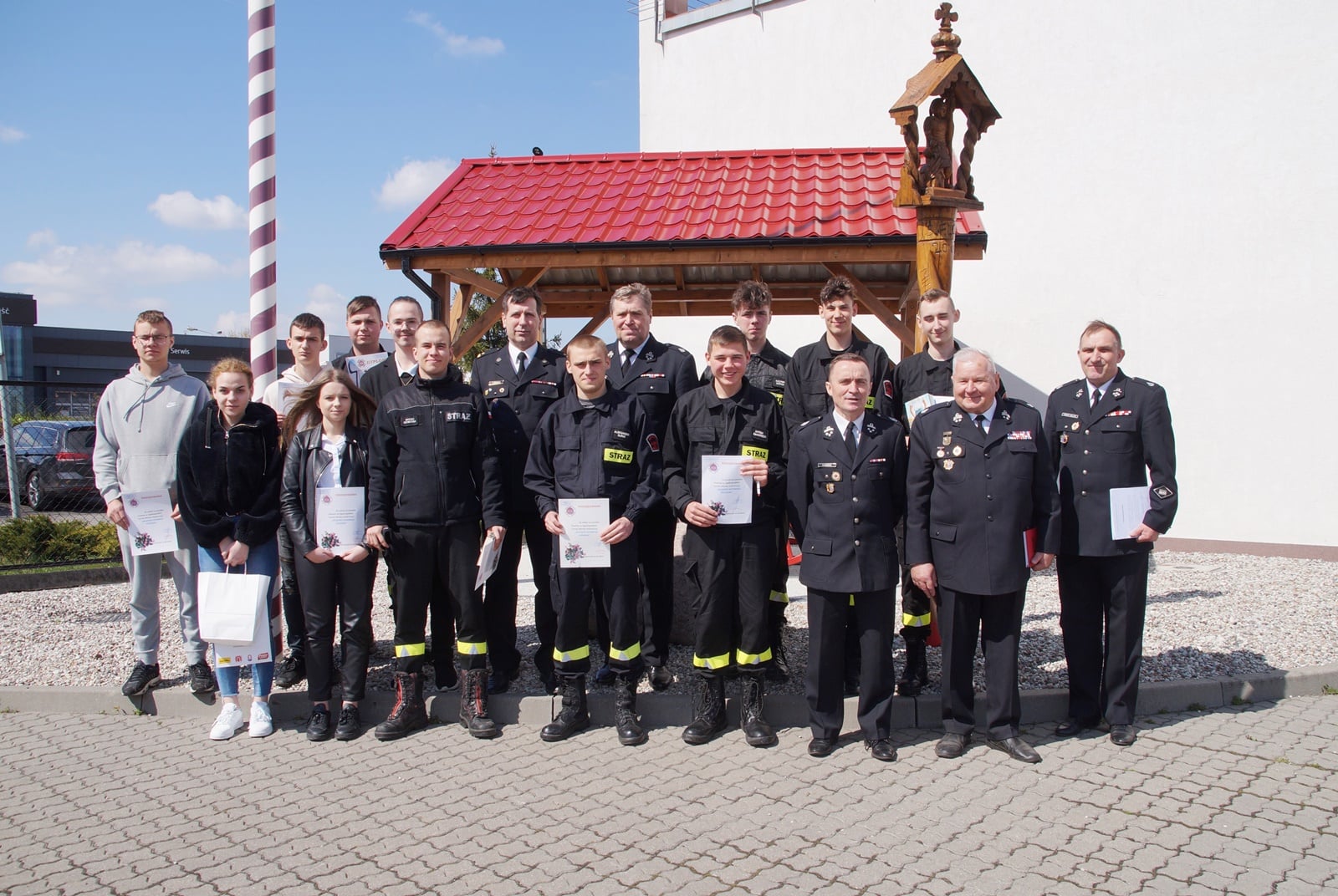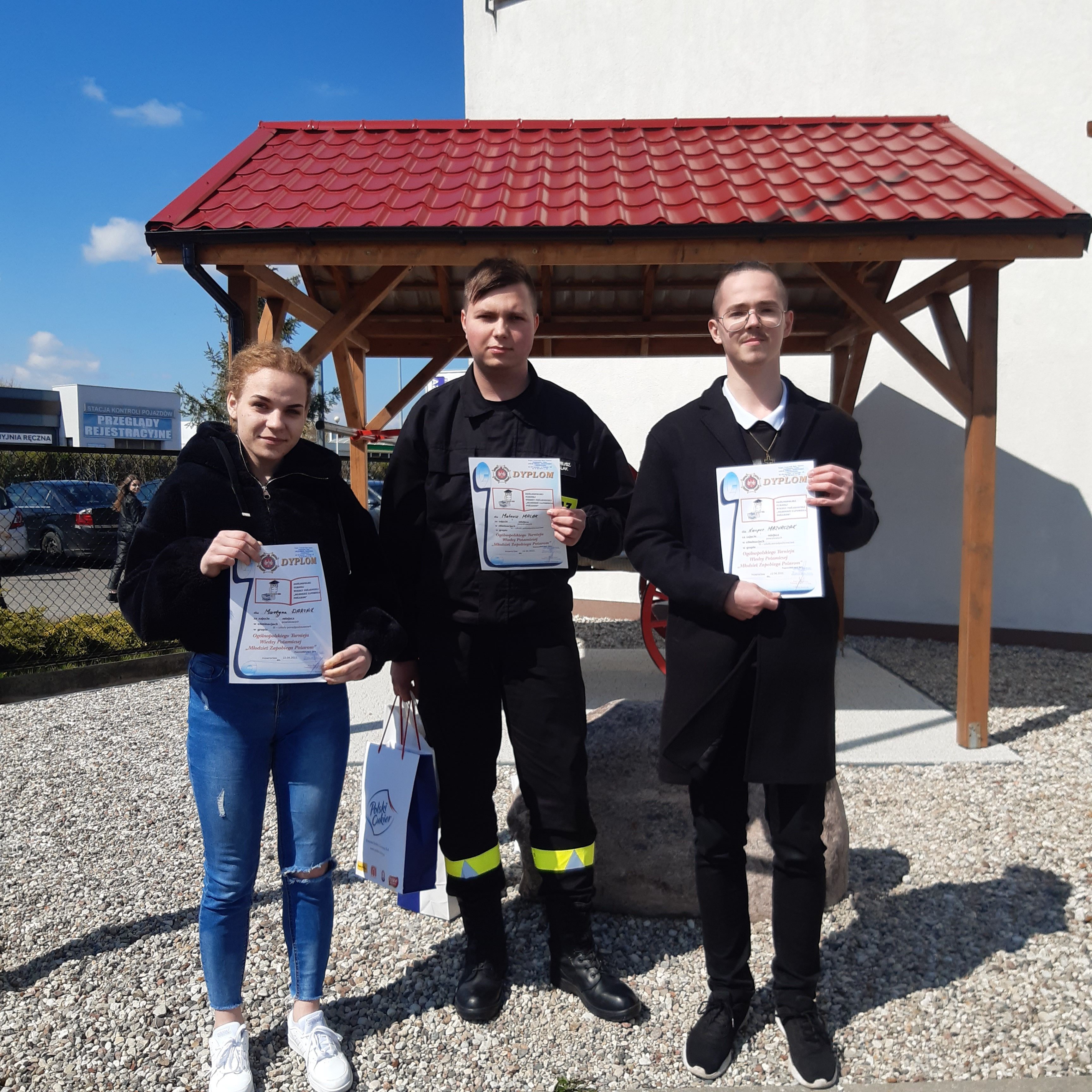 Zdjęcie: st. ogn. w stanie spocz. Mieczysław Kamiński, mł. ogn. Jakub Woźniak,