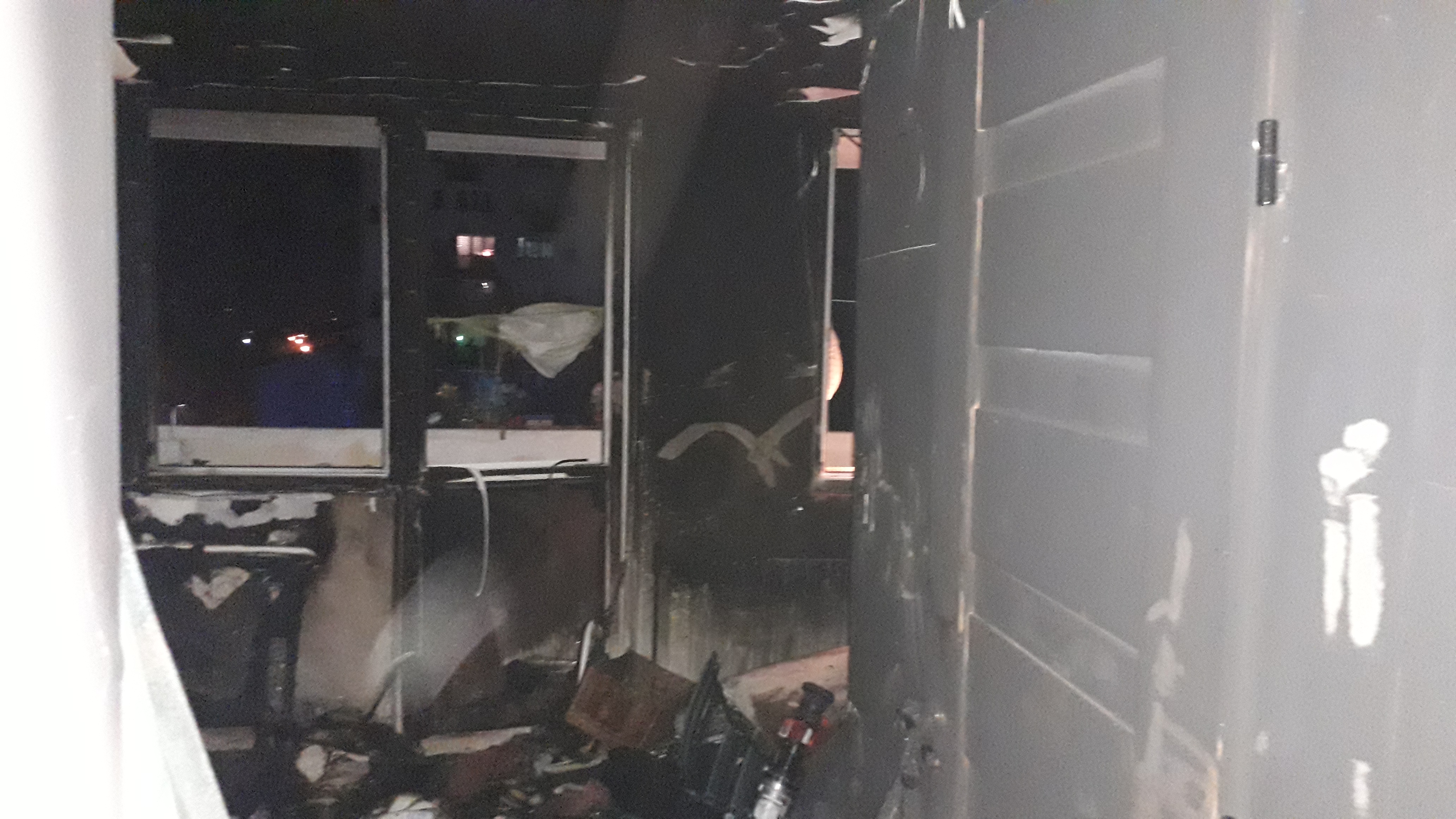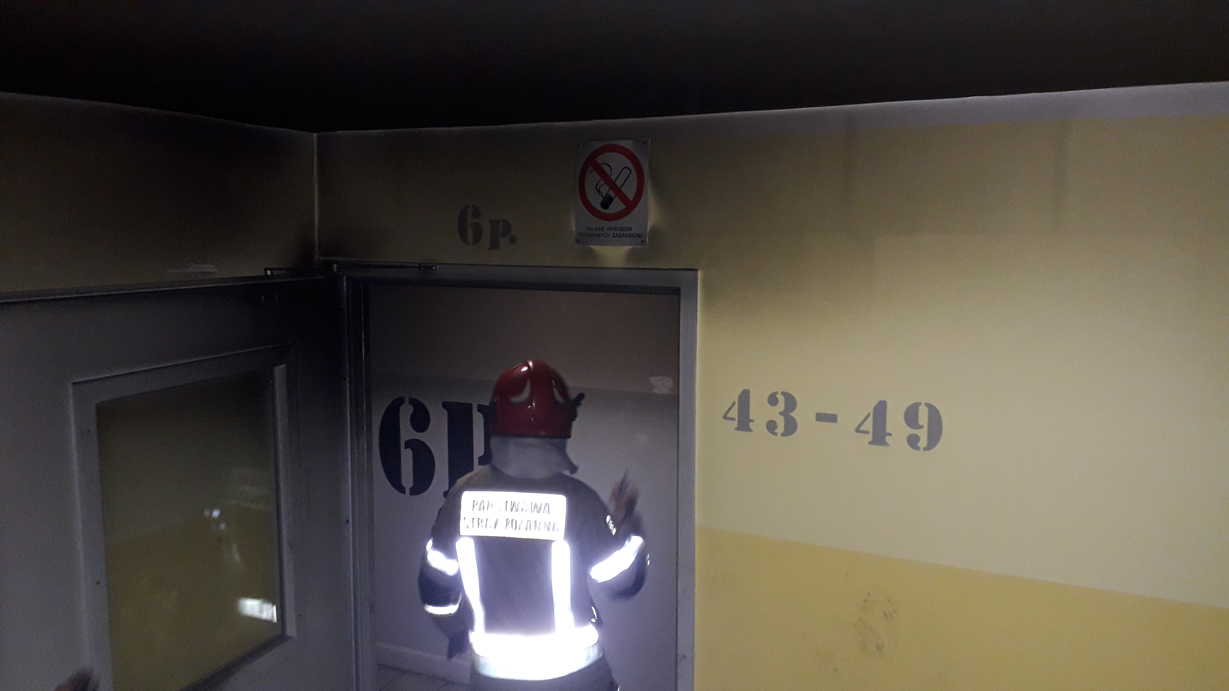 Spaleniu uległo wyposażenie mieszkania oraz okopceniu korytarz VI kondygnacji budynku.