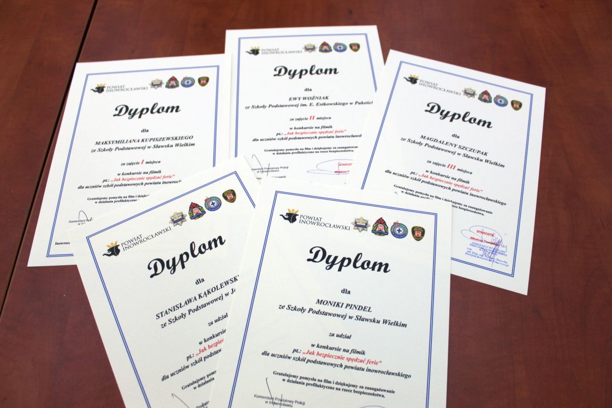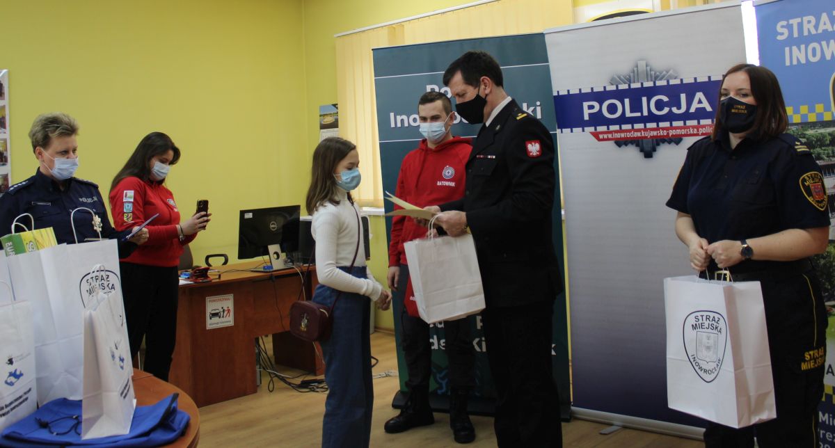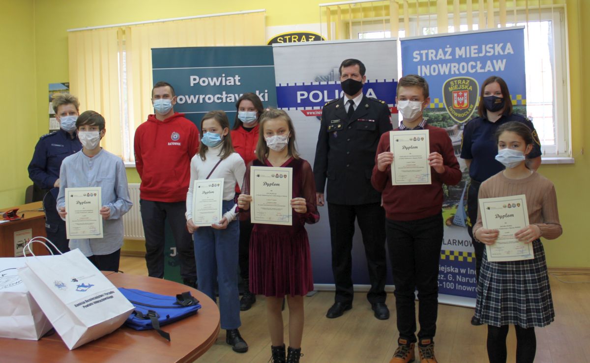 Komenda Powiatowa Policji w Inowrocławiu, Komenda Powiatowa Państwowej Straży Pożarnej w Inowrocławiu, Nadgoplańskie WOPR w Kruszwicy, Straż Miejska Inowrocław oraz Powiat Inowrocławski nagrodzili uczestników konkursu. Celem inicjatywy profilaktycznej była edukacja na temat zasad bezpieczeństwa poprzez propagowanie sposobów spędzania czasu wolnego. Zadaniem uczestników było nagranie filmiku ze swoim udziałem, który pokazuje jak bezpiecznie spędzać ferie. Pięciu laureatom udało się to zrobić w sposób najbardziej ciekawy. Komisja w składzie: Zastępca Komendanta Straży Miejskiej Sylwia Przebieracz, Zastępca Komendanta Powiatowego Państwowej Straży Pożarnej mł. bryg. Ireneusz Taraszka, przedstawiciel Nadgoplańskiego WOPR w Kruszwicy Jarosław Wiśniewski oraz policjantki st. asp. Justyna Piątkowska i asp. szt. Izabella Drobniecka, przyznała trzy miejsca i dwa wyróżnienia. Laureaci wraz z rodzicami zostali zaproszeni do siedziby Straży Miejskiej w Inowrocławiu. Tam zostały wręczone nagrody, które ufundowali organizatorzy. Oto zwycięzcy: