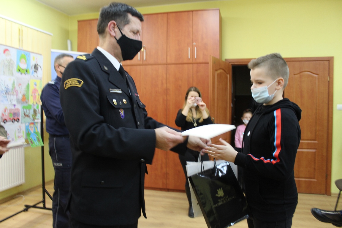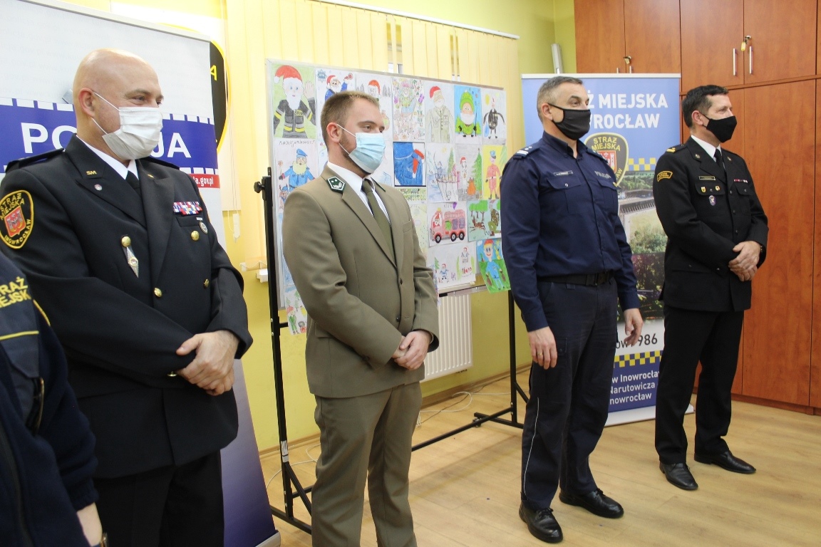 Komisja składająca się z przedstawicieli organizatorów konkursu wybrała 25 prac i zadecydowała, że wszyscy ich autorzy otrzymują równorzędne Pierwsze Miejsca. Wczoraj (02.12.21r.) w siedzibie inowrocławskich strażników miejskich odbyło spotkanie z laureatami. Nagrody wręczali: Komendant Straży Miejskiej w Inowrocławiu Marcin Ratajczak wraz ze swoją Zastępcą Sylwią Przebieracz, Komendant Powiatowy Policji w Inowrocławiu mł. insp. Karol Konopacki, Zastępca Komendanta Państwowej Straży Pożarnej mł. bryg. Ireneusz Taraszka i Rzecznik Nadleśnictwa Gniewkowo Jakub Cichocki.