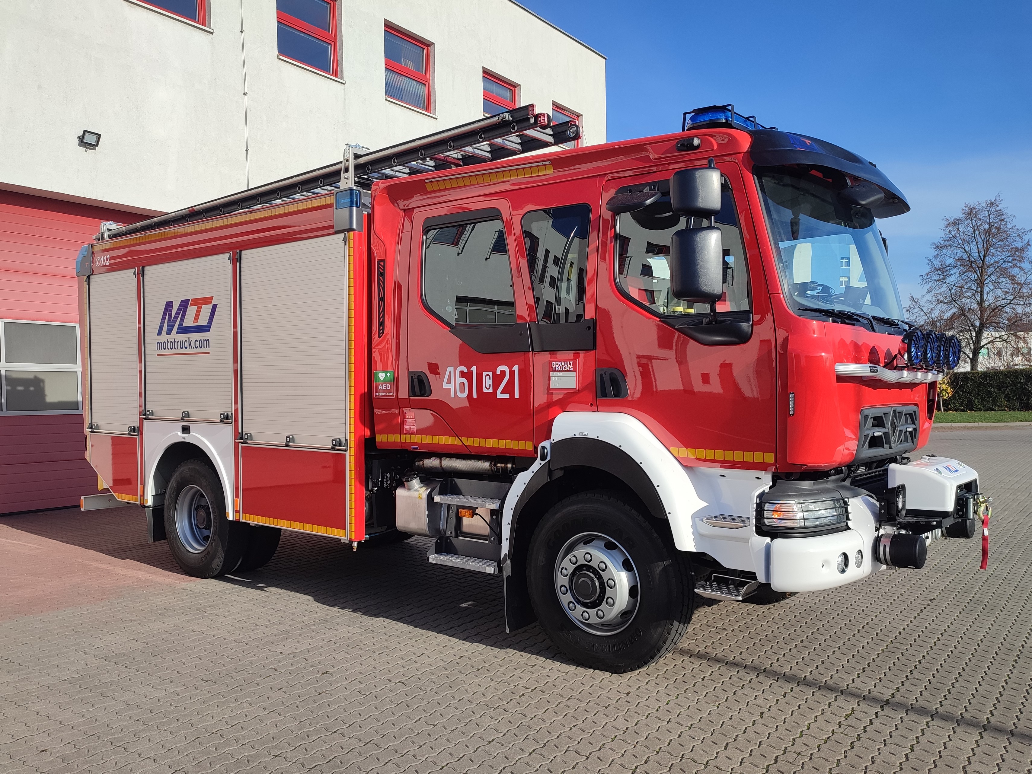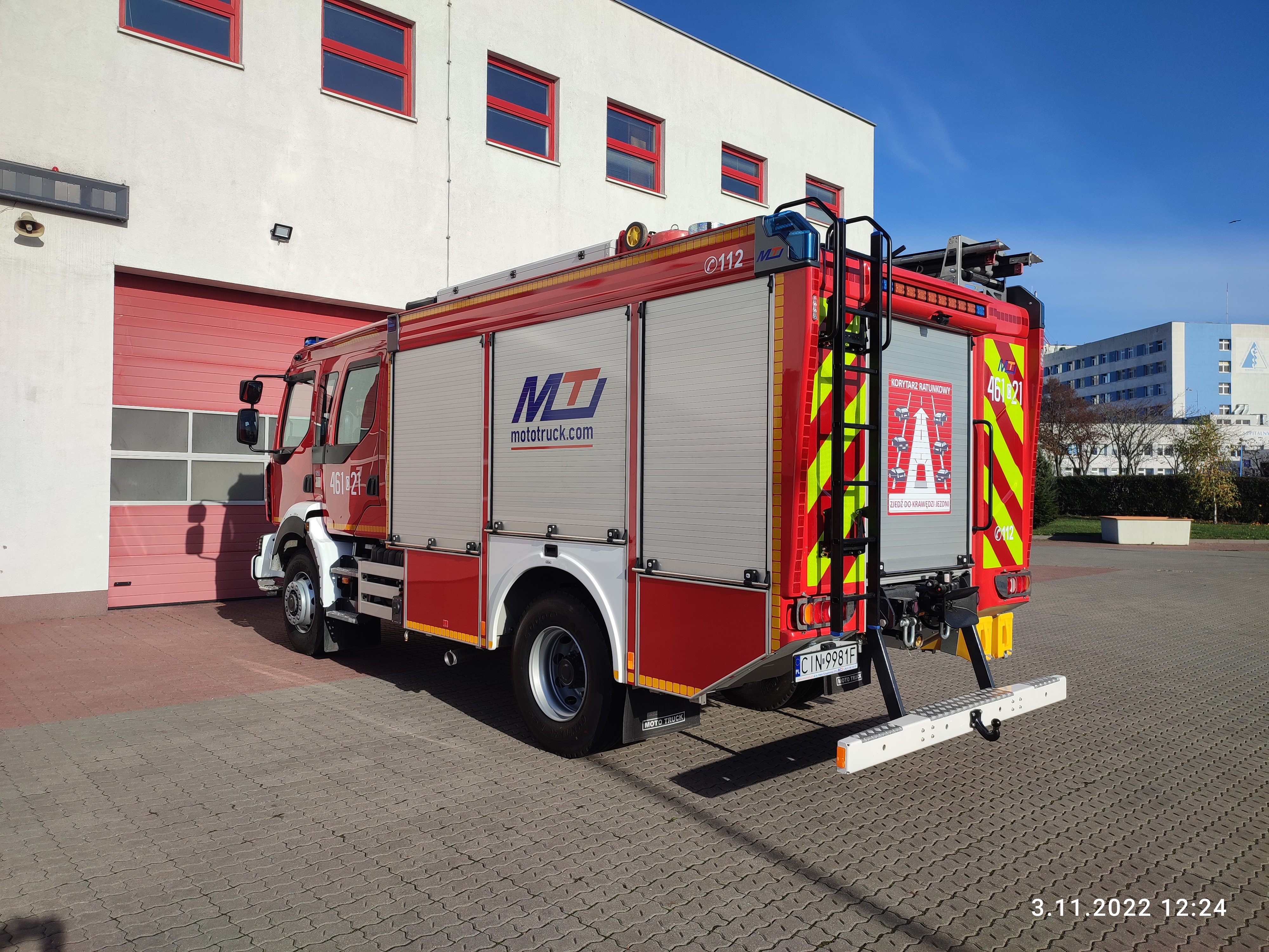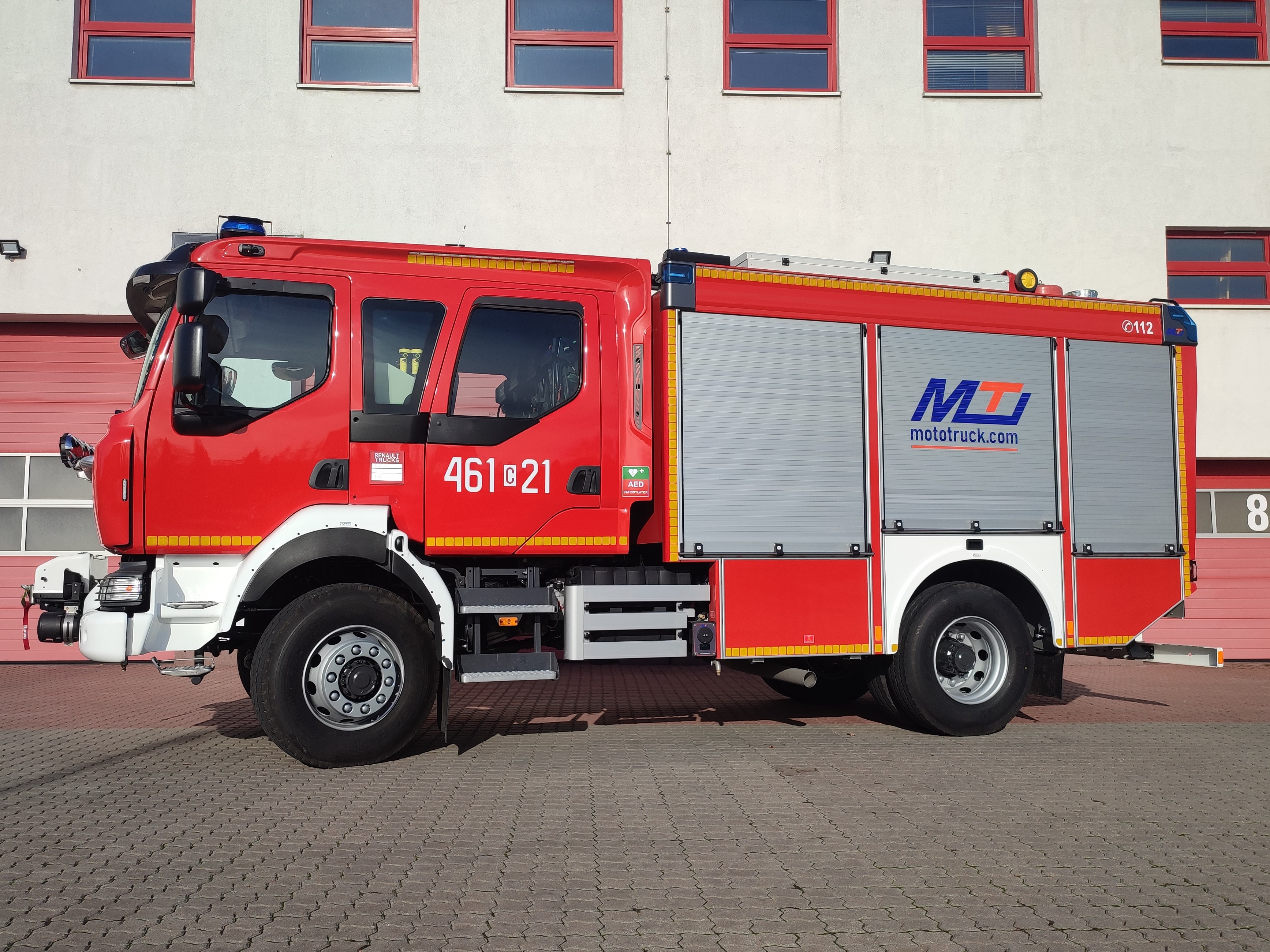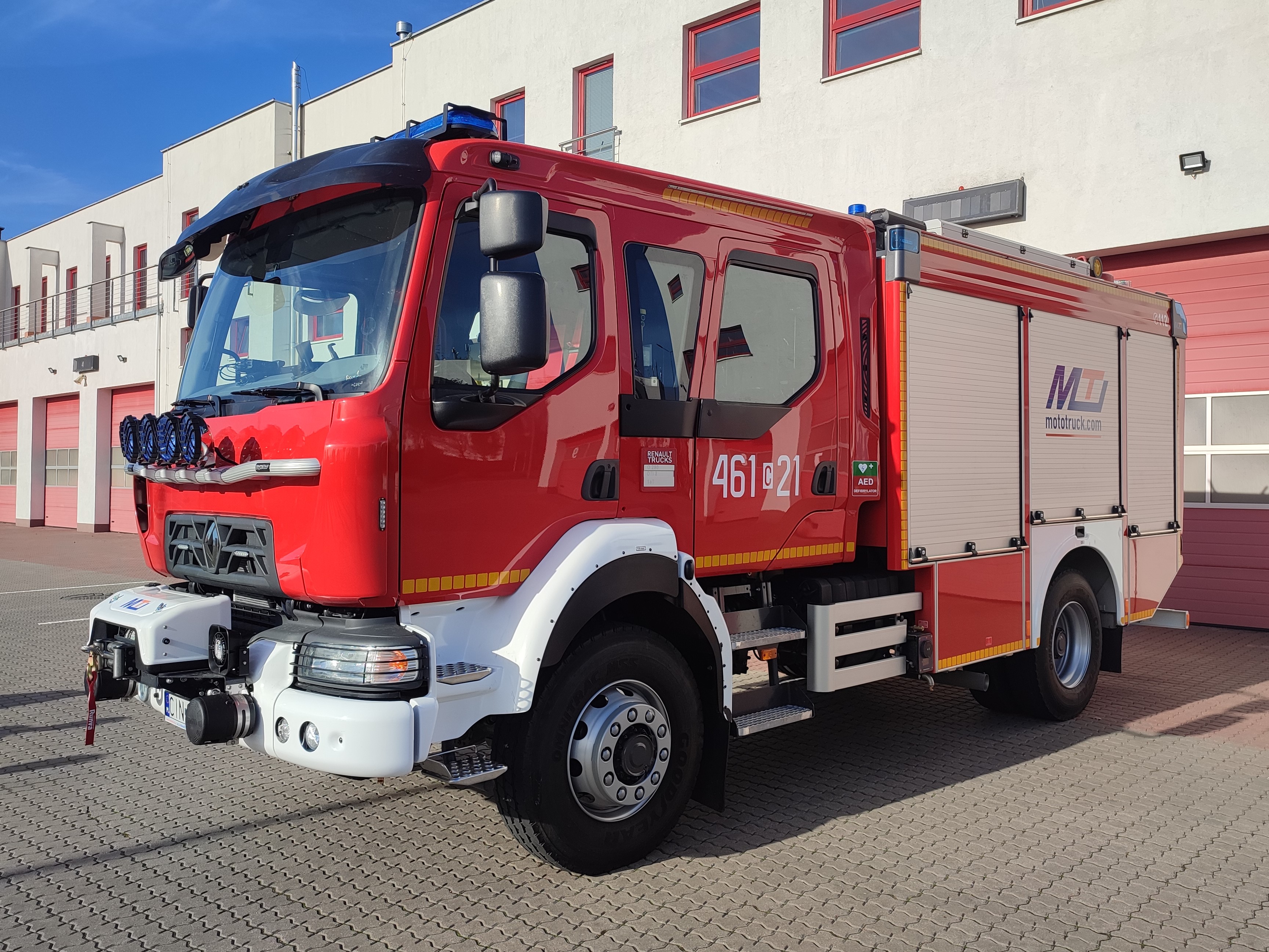 Komenda Powiatowa Państwowej Straży Pożarnej w Inowrocławiu pozyskała nowy średni samochód ratowniczo-gaśniczy na podwoziu Renault. Pojazd wyposażony w napęd 4x4, zbiornik wodny o pojemności 3000 litrów oraz autopompę o wydajności 1600l/min. Zabudowę pożarniczą wykonała firma MotoTruck z Kielc.