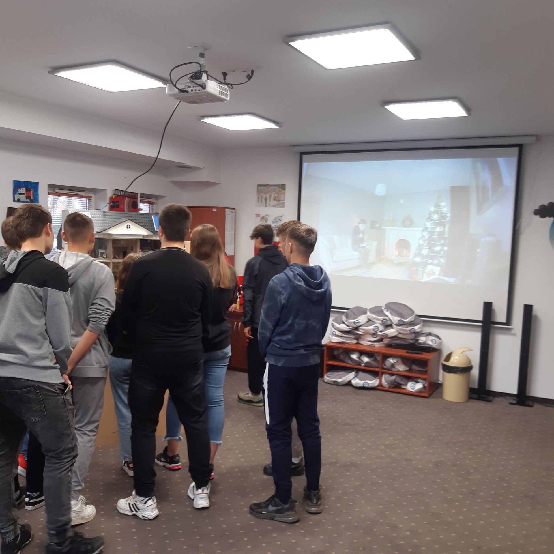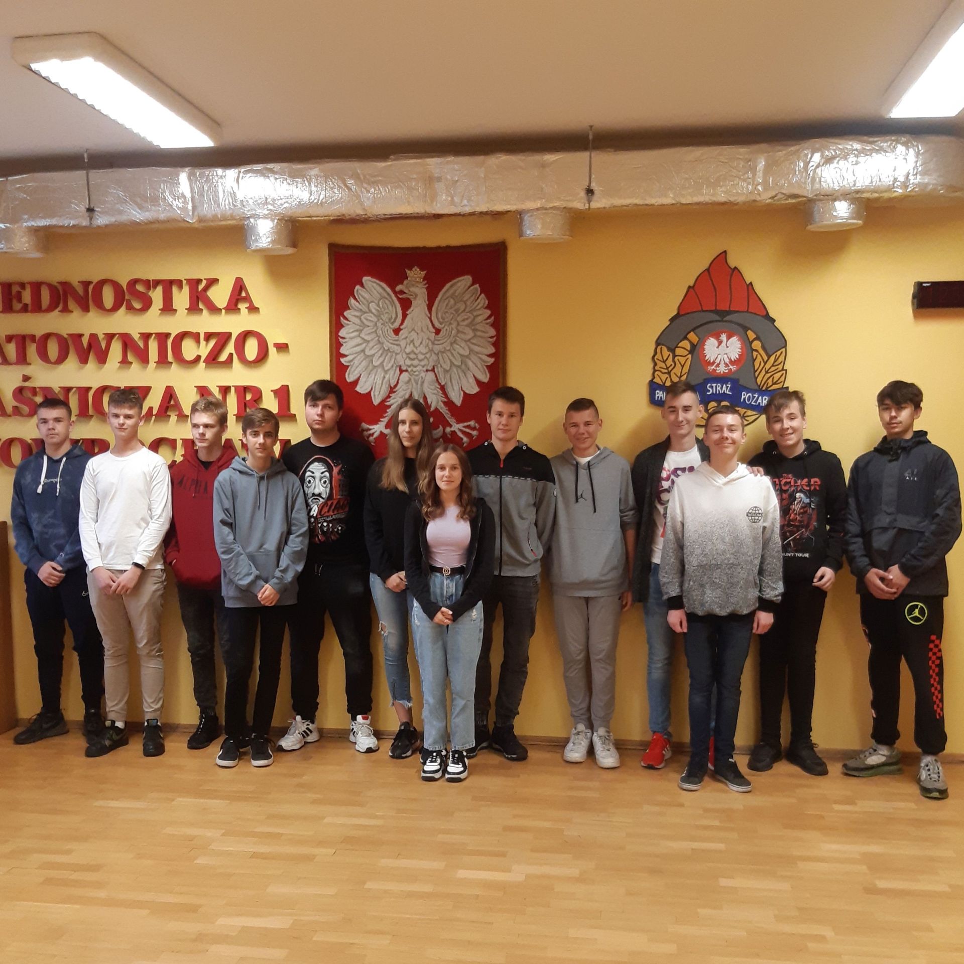20 października br. uczniowie klasy I LO o profilu pożarniczym ZSCH-E im. Jana Pawła II odwiedzili strażaków z KP PSP Inowrocław. Podczas spotkania zapoznali się m. in. z domkiem zagrożeń. Jest to mobilny symulator zagrożeń pożarowych w budynku mieszkalnym. Dzięki zainstalowanej w domku zadymiarce można obrazowo pokazać rozprzestrzenianie się dymu w budynku, np. podczas pożaru sadzy w kominie, a także zademonstrować w jaki sposób działają czujki dymu, czy tlenku węgla. W symulatorze wydzielone są różne pomieszczenia takie jak: kuchnia, pokój dziecka, łazienka, sypialnia, salon oraz kotłownia. Jest to profesjonalna makieta z pełnym wyposażeniem. Młodzieży została przybliżona również historia sikawki hydroforowej do zaprzęgu konnego wyeksponowanej przed budynkiem komendy.