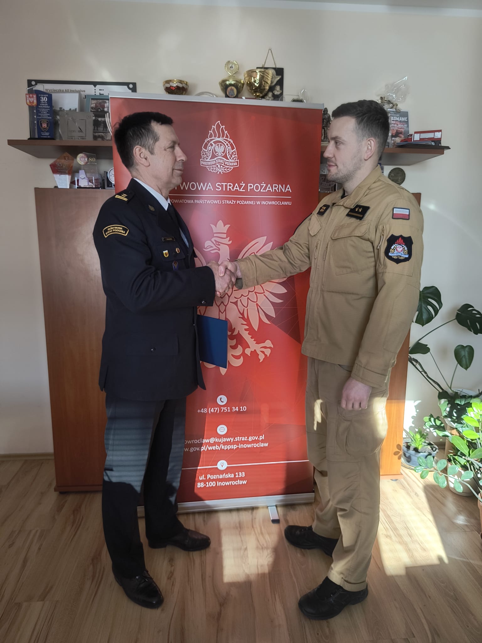 Komendant Powiatowy Państwowej Straży Pożarnej w Inowrocławiu z dniem 1 kwietnia 2026 r. powierzył obowiązki na stanowisku młodszego specjalisty w Sekcji Kontrolno- Rozpoznawczej mł. kpt. Robertowi Ziętarze.