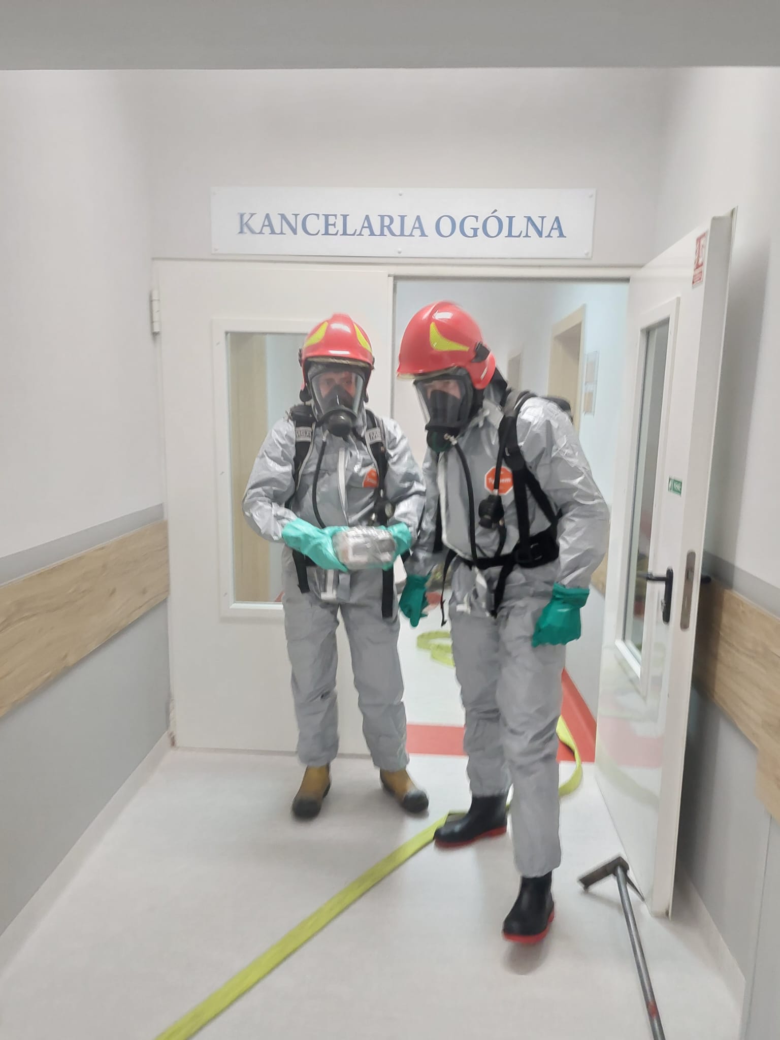 Ćwiczenia zrealizowane były z narracją, która miała na celu objaśnienie oraz wytłumaczenie procedur i działań dla ewakuowanych pracowników Starostwa Powiatowego.