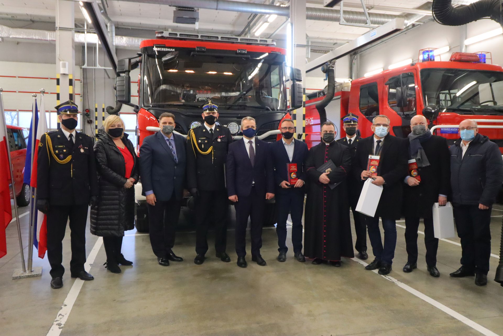 W uroczystość udział wzięli: Pan Mikołaj Bogdanowicz – Wojewoda Kujawsko-Pomorski, st. bryg. Sławomir Herbowski - Zastępca Kujawsko-Pomorskiego Komendanta Wojewódzkiego PSP, Pan Ireneusz Stachowiak – Prezes Zarządu Wojewódzkiego Funduszu Ochrony Środowiska i Gospodarki Wodnej. Obecni byli również przedstawiciele jednostek samorządu terytorialnego z Panią Wiesława Pawłowską – Starostą Inowrocławskim na czele, przedstawiciele służb mundurowych oraz awansowani i wyróżnieni strażacy Komendy Powiatowej PSP w Inowrocławiu. Obchody przebiegały z zachowaniem zasad reżimu sanitarnego.