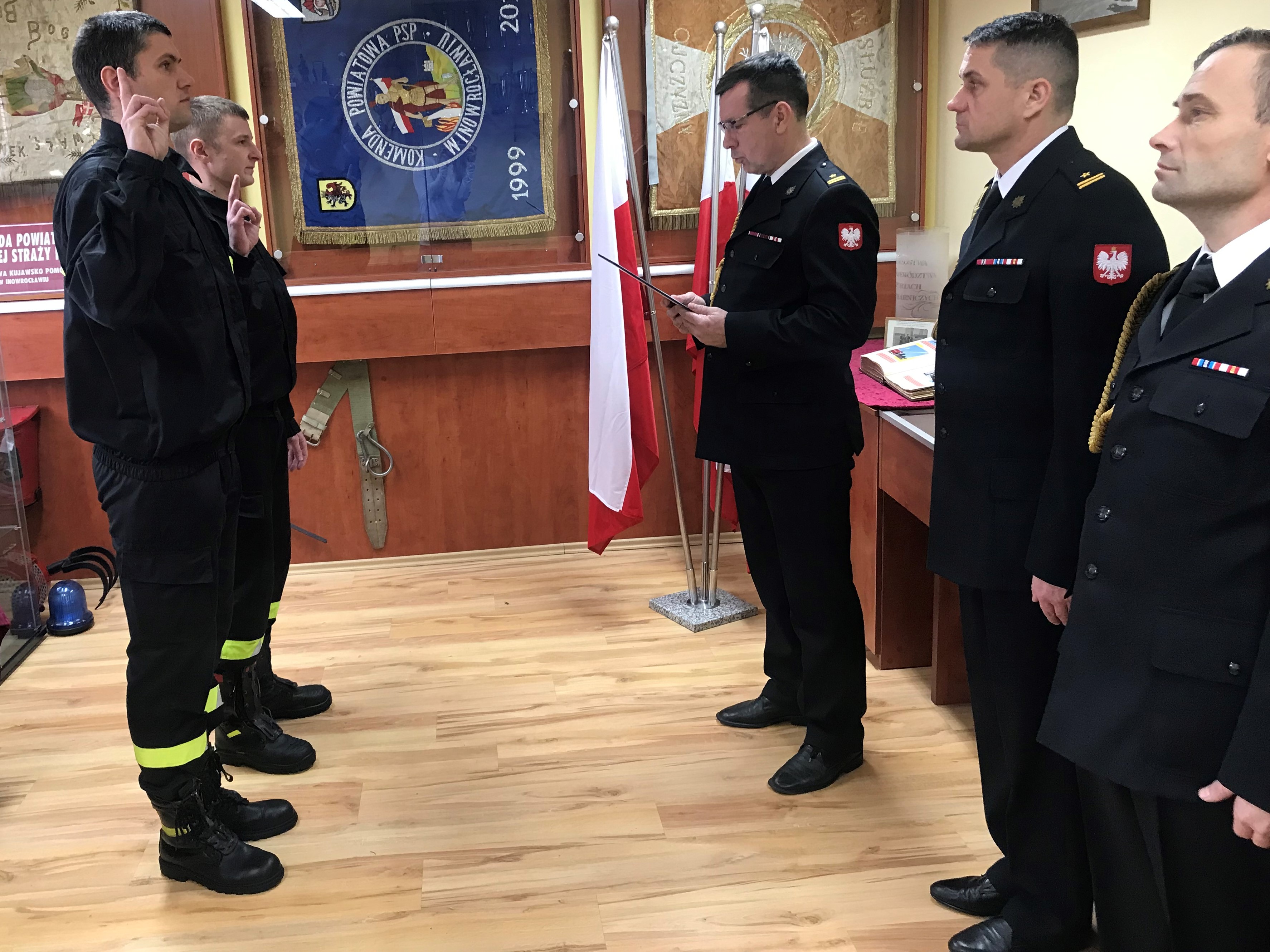 3 lutego 2023 roku w Komendzie Powiatowej Państwowej Straży Pożarnej w Inowrocławiu, odbyło się uroczyste ślubowanie strażaka Jakuba Roszaka oraz strażaka Dawida Olejniczaka którzy rozpoczęli służbę w Jednostce Ratowniczo-Gaśniczej Nr 1 i Nr 2 w Inowrocławiu. Ślubowanie przyjął Zastępca Komendanta Powiatowego PSP w Inowrocławiu mł. bryg. Ireneusz Taraszka