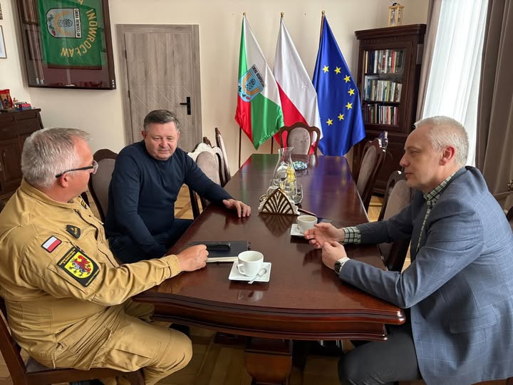 Wójt gminy Inowrocław Grzegorz Piątek spotkał się ze st. bryg. mgr inż. Jakubem Politowskim, Komendantem Państwowej Straż Pożarnej w Inowrocławiu. Rozmawiano o współpracy, potrzebach jednostek oraz planach na najbliższe miesiące.