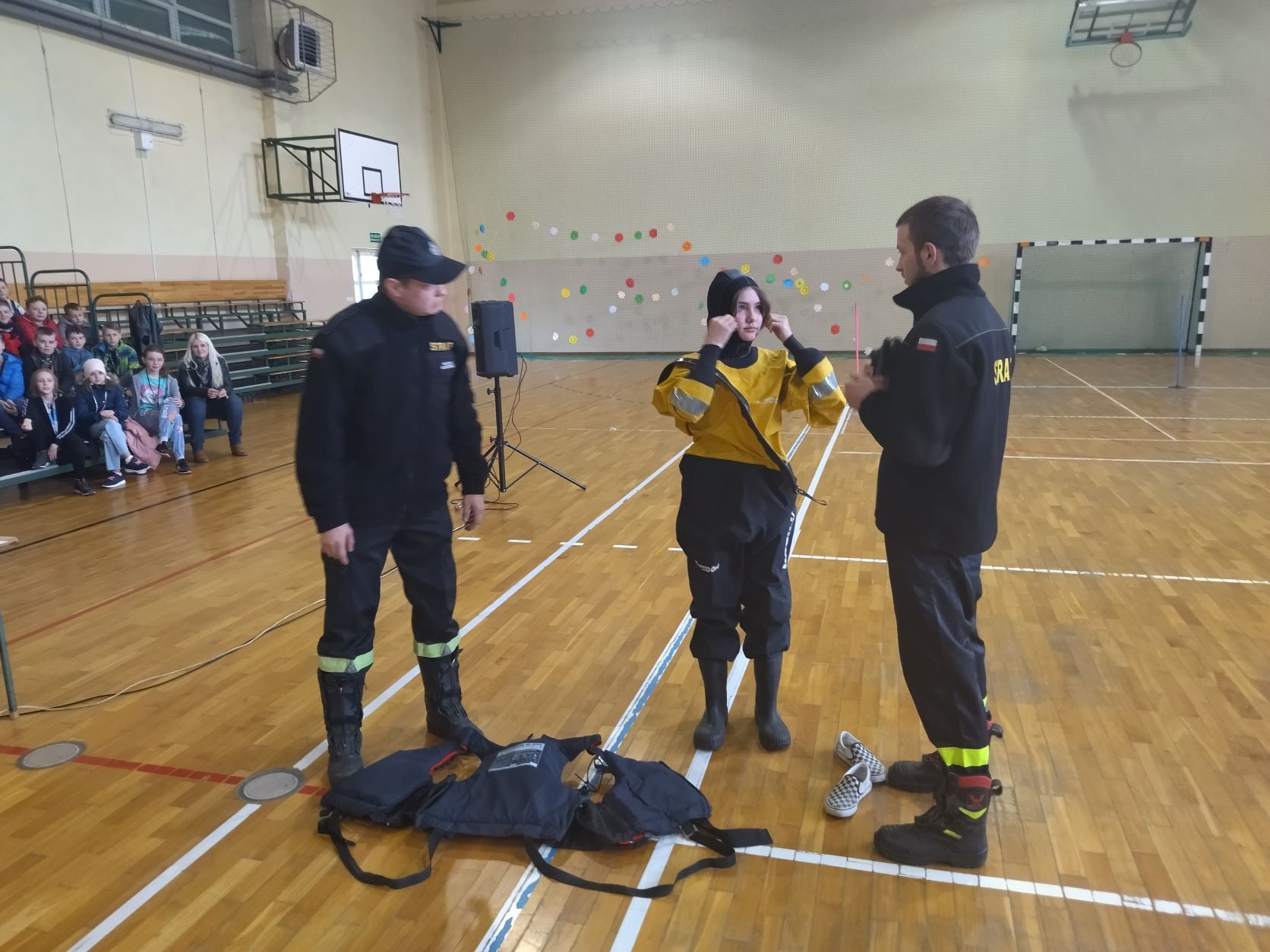 Strażacy z wizytą w Szkole Podstawowej nr 2 w Gniewkowie w ramach Programu Szkoła Przyjazna Wodzie „Aktywni Błękitni”