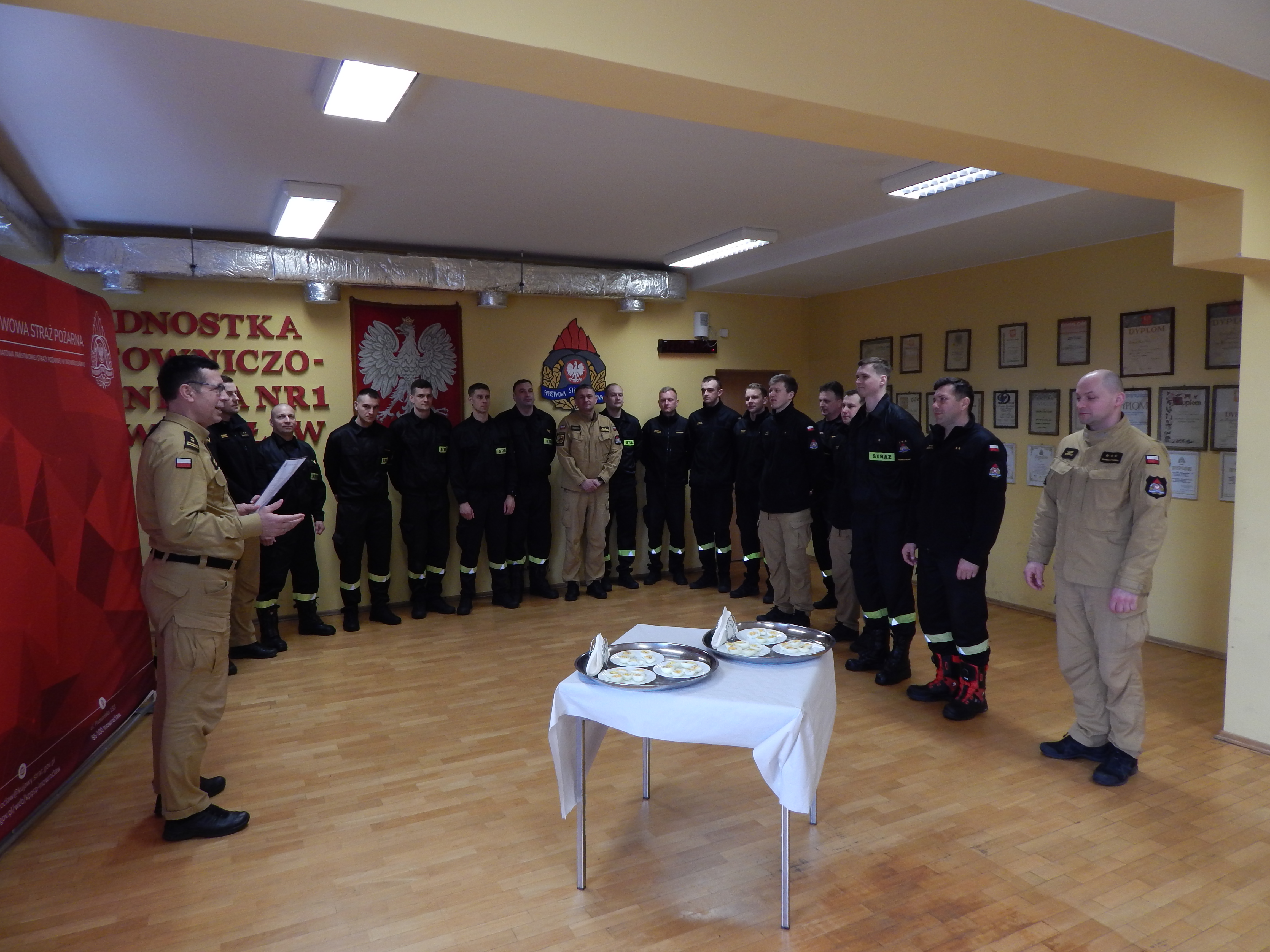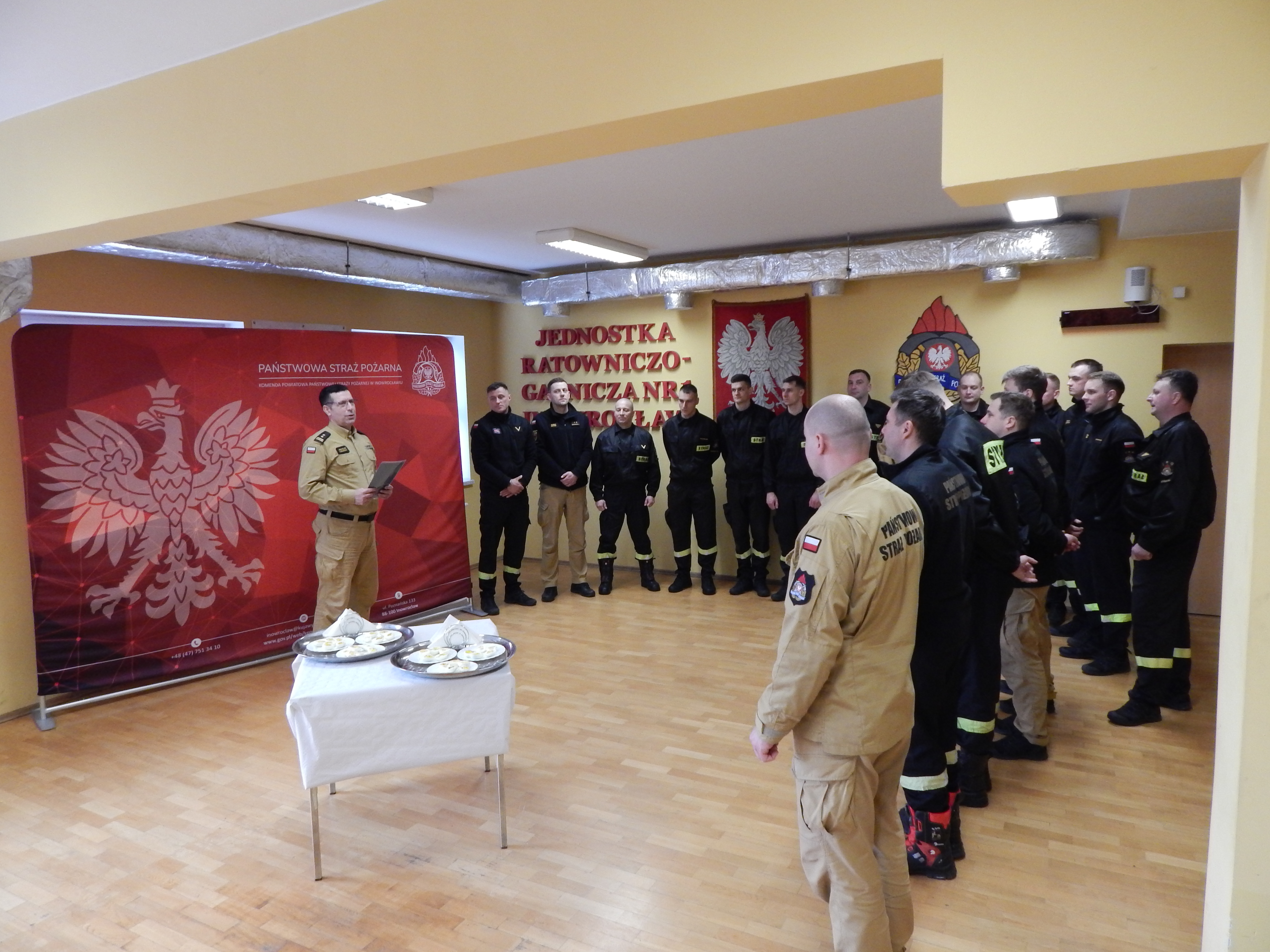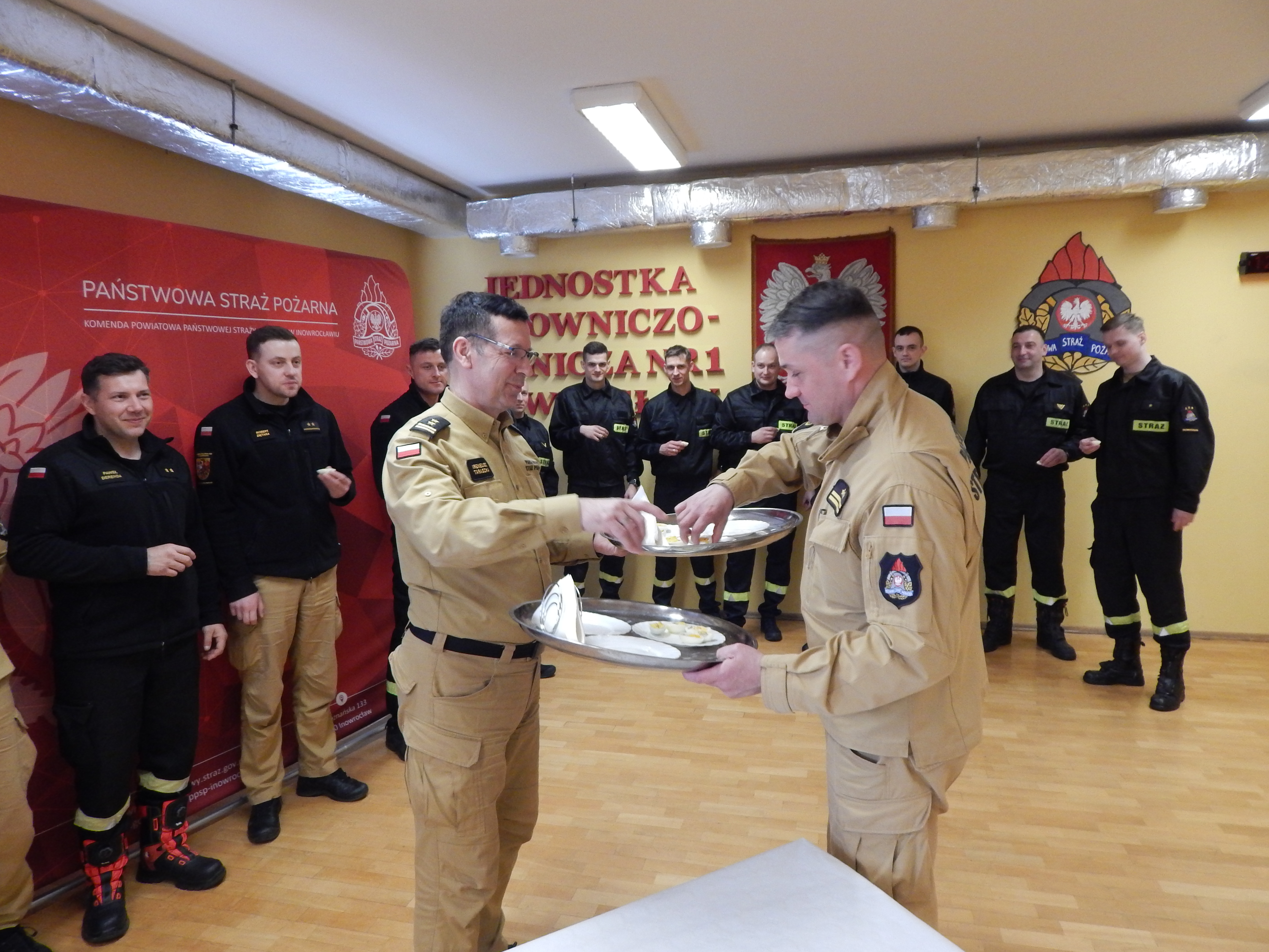 3 kwietnia 2026 roku w Komendzie Powiatowej Państwowej Straży Pożarnej w Inowrocławiu odbyło się świąteczne spotkanie wielkanocne, w którym uczestniczyli strażacy oraz pracownicy cywilni. Podczas spotkania bryg. Ireneusz Taraszka, Zastępca Komendanta Powiatowego PSP w Inowrocławiu, złożył wszystkim życzenia z okazji Świąt Wielkanocnych. Po części oficjalnej w której m. in. zostały odczytane życzenia świąteczne Ministra Spraw Wewnętrznych i Administracji Marcina Kierwińskiego, Komendanta Głównego PSP nadbryg. Wojciecha Kruczka oraz Starosty Inowrocławskiego Wiesławy Pawłowskiej uczestnicy podzielili się symbolicznym jajkiem.