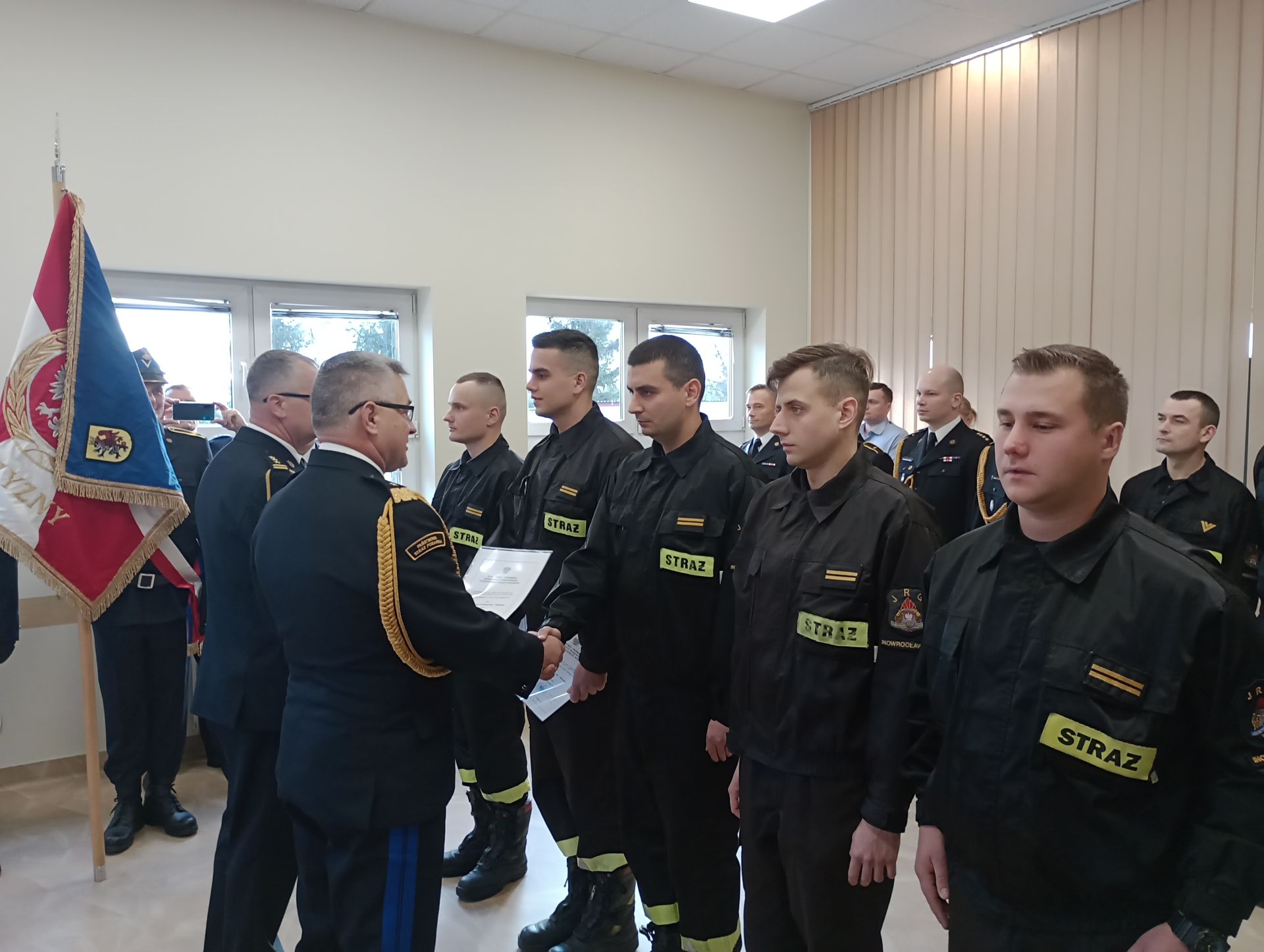 18 listopada br. na terenie Jednostki Ratowniczo-Gaśniczej nr 2 w Inowrocławiu, odbyła się uroczysta zbiórka z udziałem funkcjonariuszy i pracowników cywilnych komendy powiatowej PSP w Inowrocławiu. Swoją obecnością zaszczycił nadbrygadier Jacek Kaczmarek Kujawsko-Pomorski Komendant Wojewódzki PSP w Toruniu. Podczas spotkania wręczono awanse na wyższe stanowiska i stopnie służbowe oraz nagrody jubileuszowe.