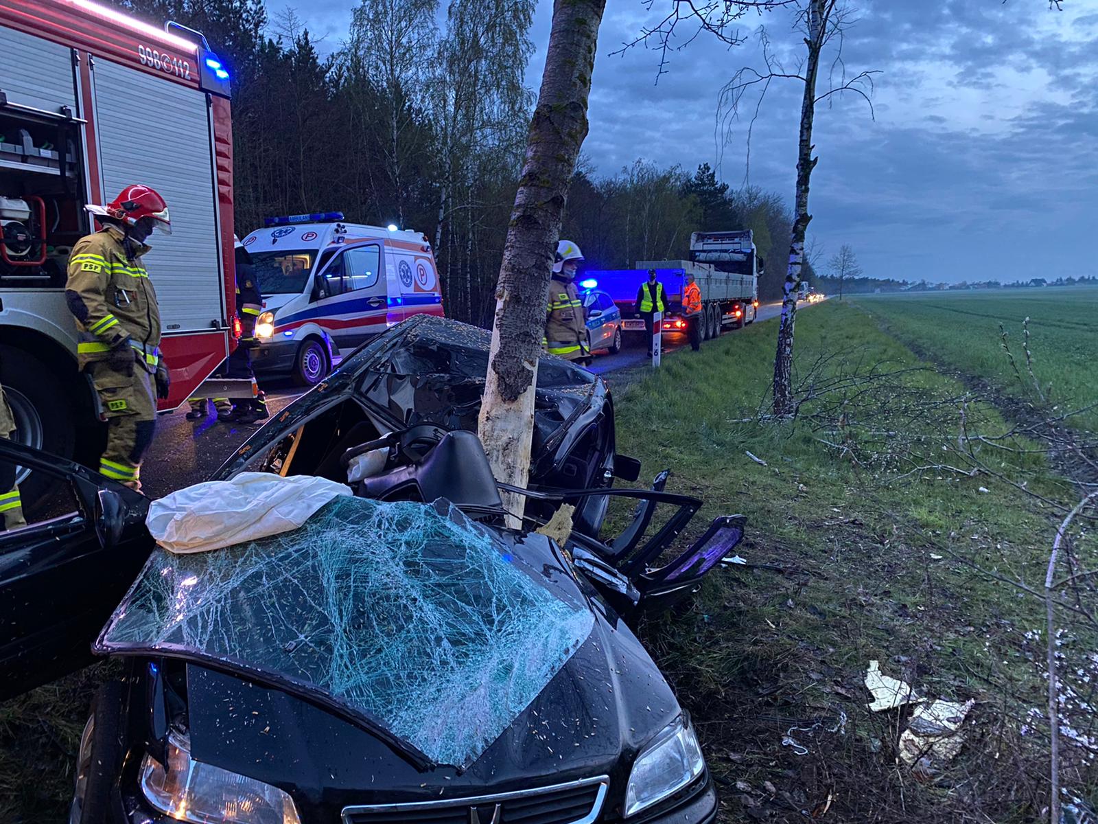 Na miejsce niezwłocznie zadysponowano dwa zastępy z JRG Jarocin, OSP Wilkowyja oraz OSP Tarce. Po przybyciu na miejsce zdarzenia zabezpieczono i oświetlono teren prowadzonych działań. Działania ratowników polegały na udzieleniu kwalifikowanej pierwszej pomocy osobom poszkodowanym, stabilizacji pojazdu oraz wykonaniu dostępu do osoby uwięzionej we wraku pojazdu przy pomocy narzędzi hydraulicznych. Po wykonaniu dostępu do poszkodowanego mężczyzny, ułożono go na desce ortopedycznej i przekazano ratownikom ZRM. W trakcie działań ratowniczych pozostałych uczestników wypadku przekazano ratownikom ZRM. Ostatecznie 3 osoby zostały przetransportowane do szpitali. Równolegle do prowadzonych działań medycznych strażacy odłączyli akumulator w pojeździe oraz posypali wyciekłe płyny eksploatacyjne sorbentem. Podczas prowadzonych działań ruch na drodze wojewódzkiej został wstrzymany. Aby wydobyć wrak pojazdu niezbędne okazało się wycięcie przydrożnego drzewa, w które uderzył pojazd. Po czynnościach dochodzeniowych prowadzonych przez policje pojazd wraz z pozostałościami powypadkowymi został zabrany przez przybyłą na miejsce zdarzenia pomoc drogową. Działania trwały niespełna trzy godziny.