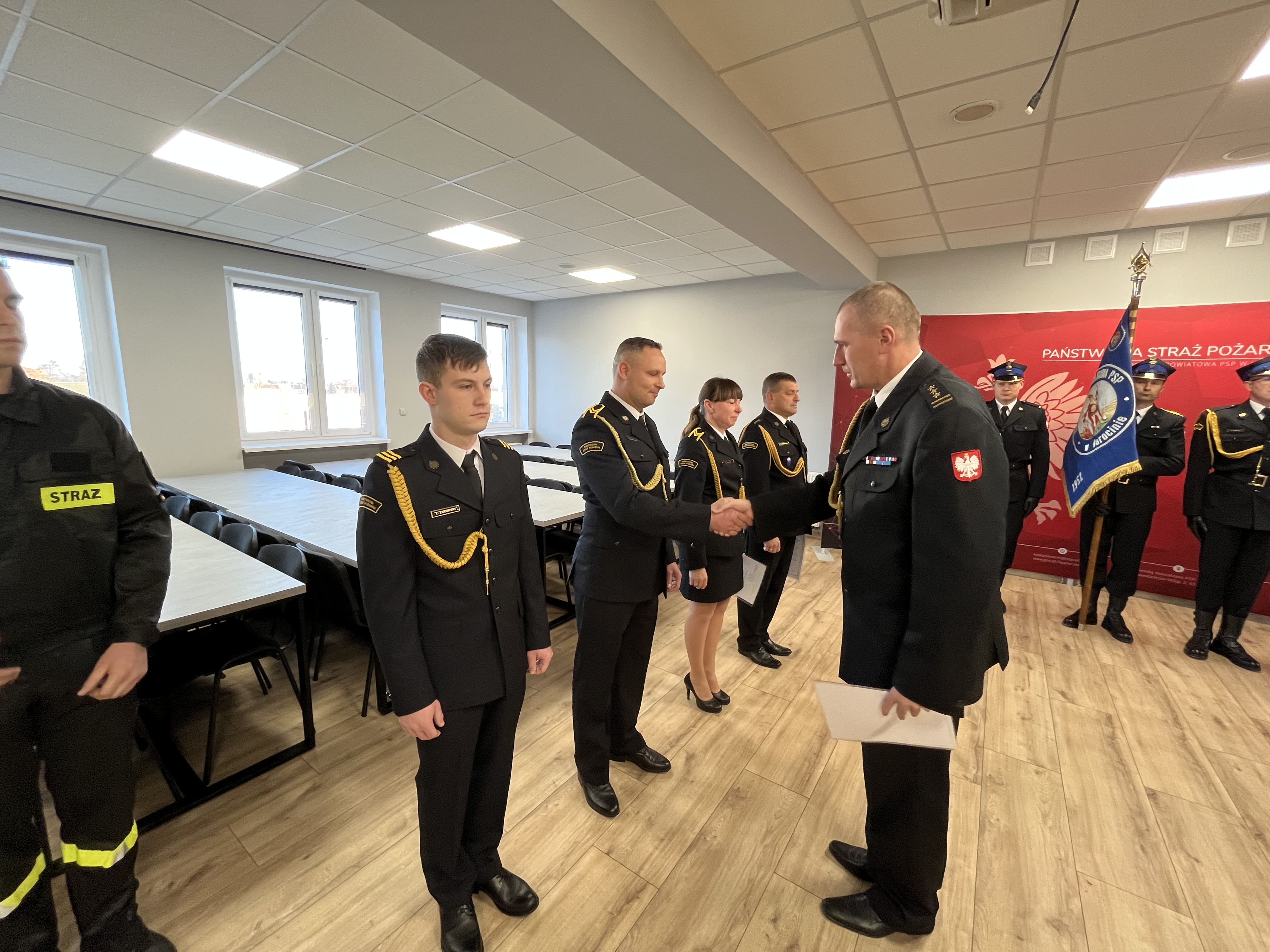 22 listopada 2024 r. w Komendzie Powiatowej Państwowej Straży Pożarnej w Jarocinie odbyła się uroczysta zbiórka z okazji Narodowego Święta Niepodległości, podczas której sześciu strażakom wręczone zostały awanse na wyższe stopnie służbowe oraz nowoprzyjęty strażak złożył ślubowanie.