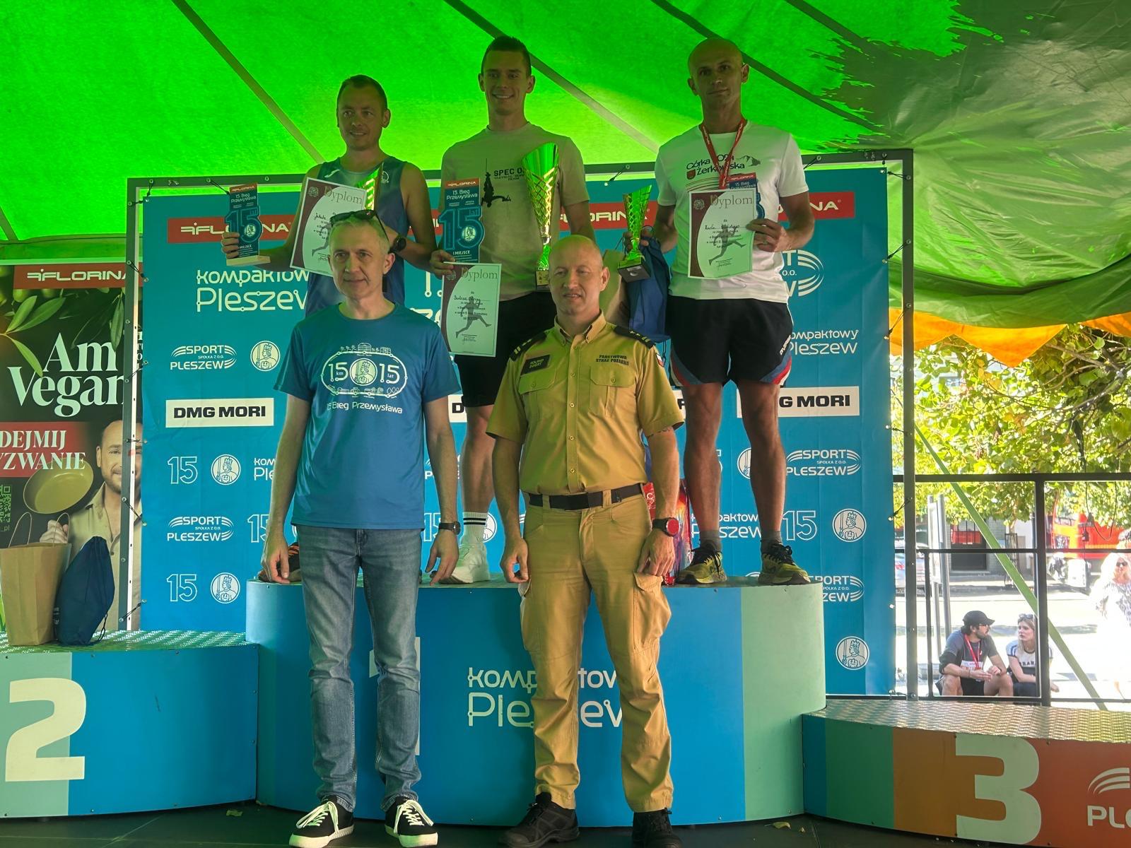 W dniu 21 września 2025 roku w Pleszewie odbył się Bieg Służb Mundurowych w ramach Biegu „Przemysława” na dystansie 10 km pod patronatem Wielkopolskiego Komendanta Wojewódzkiego Państwowej Straży Pożarnej w Poznaniu. W biegu tym Komendę reprezentował st. ogn. Paweł Pawlicki. Nasz kolega walczył dzielnie i w klasyfikacji służb mundurowych zajął III miejsce. W ogólnej klasyfikacji wiekowej Paweł zajął I miejsce, w klasyfikacji całego biegu 7 miejsce. Gratulujemy serdecznie tak dobrego wyniku i życzymy kolejnych sukcesów.