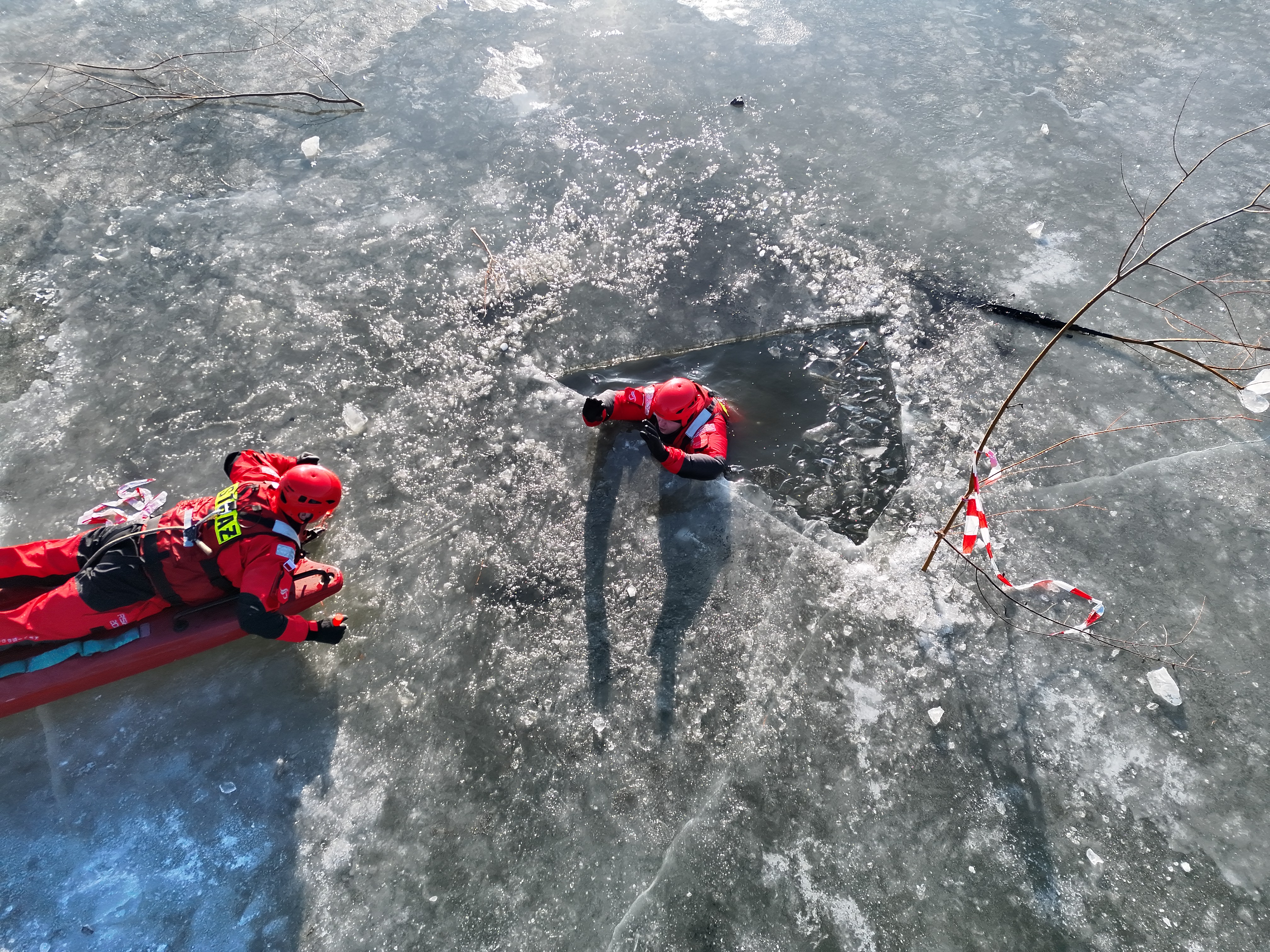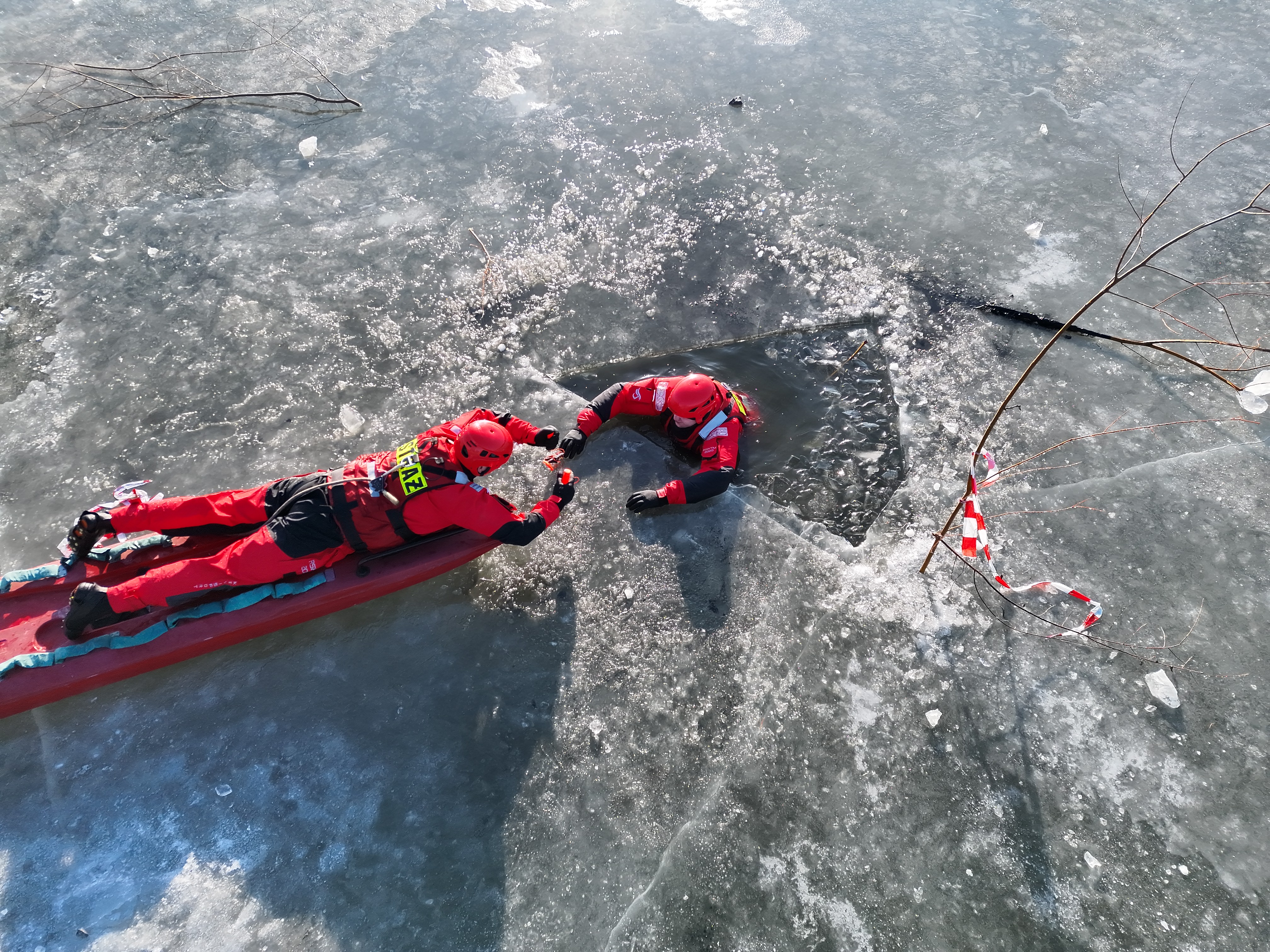 Straż pożarna przypomina jednocześnie o zachowaniu szczególnej ostrożności w pobliżu zbiorników wodnych zimą oraz o unikaniu wchodzenia na lód.