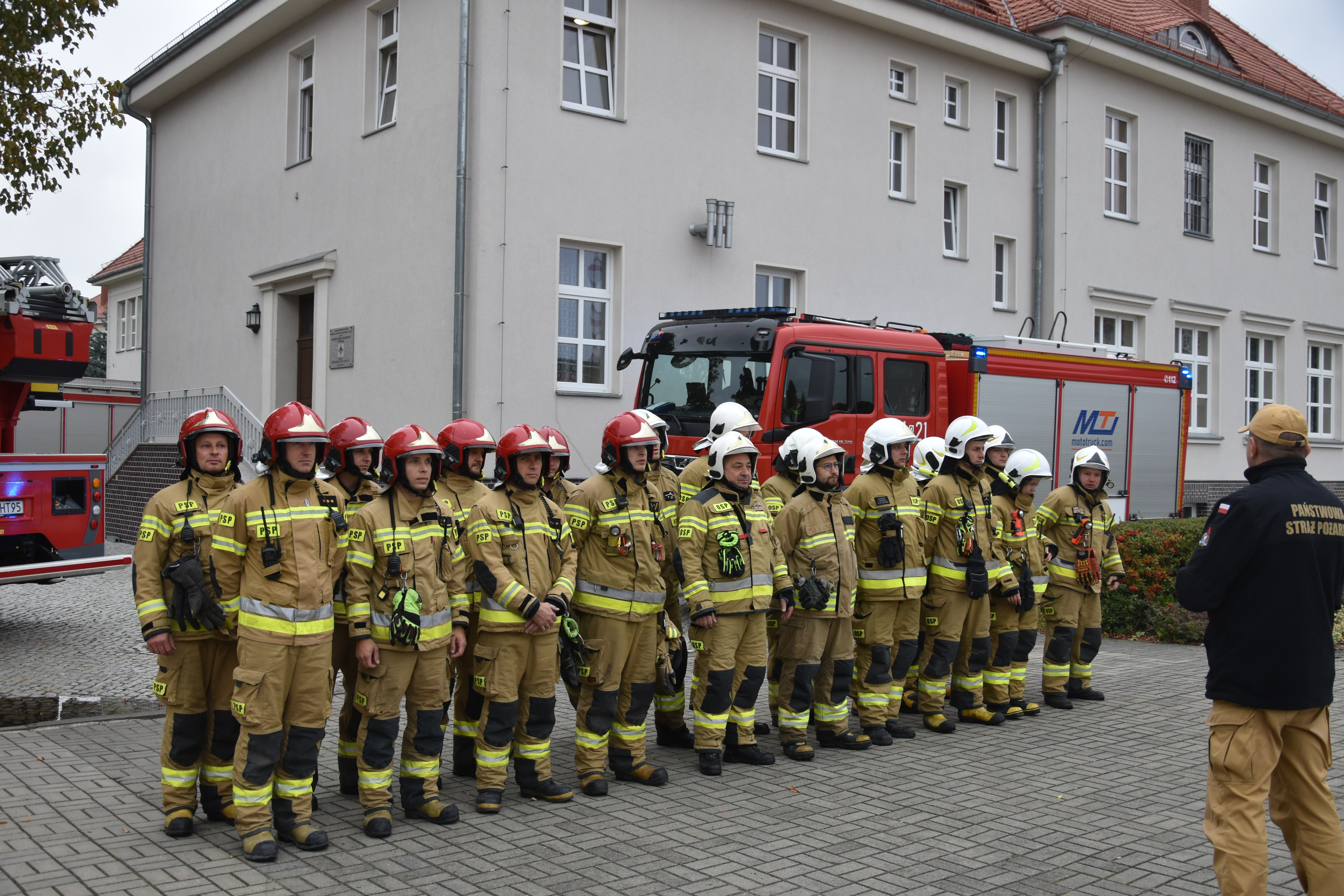 Scenariusz ćwiczeń zakładał powstanie pożaru na parterze jednego z budynków znajdujących się na terenie jednostki. Do działań gaśniczych wprowadzono dwie roty strażaków. Z budynku ewakuowano trzy osoby poszkodowane – jedną z poziomu parteru, natomiast dwie kolejne z piętra przy użyciu drabiny mechanicznej.
