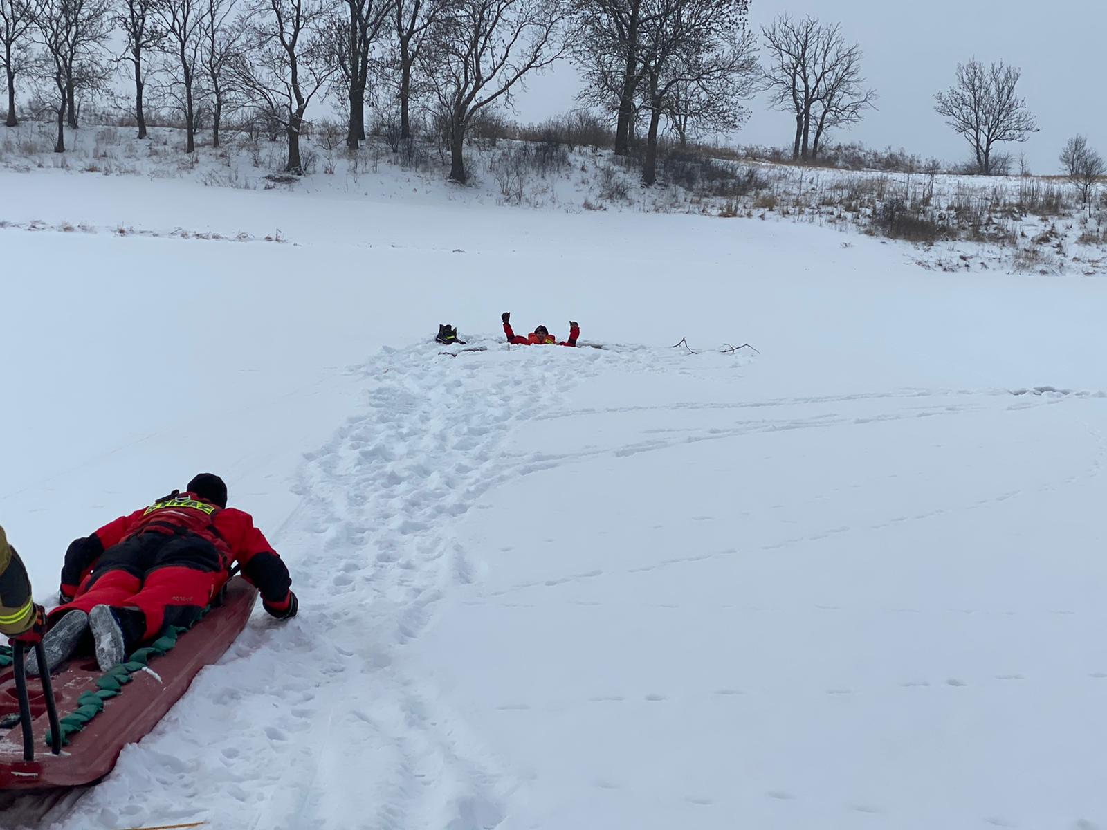 W miesiącu lutym 2021 roku strażacy wszystkich zmian służbowych Jednostki Ratowniczo Gaśniczej w Jarocinie, w ramach doskonalenia zawodowego przeprowadzili ćwiczenia z zakresu ratownictwa wodno-lodowego na terenie zamarzniętego zbiornika wodnego w Roszkowie.