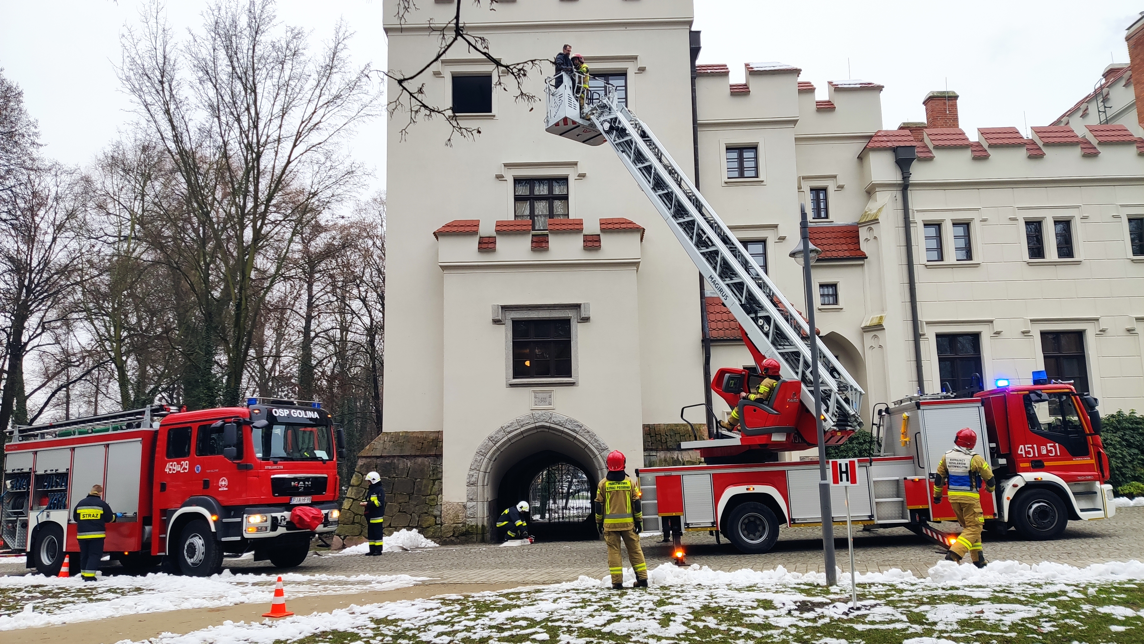 W dniu 24 stycznia 2023 roku po godz. 14.00 w budynku Pałacu Radolińskich w Jarocinie odbyło się praktyczne sprawdzenie organizacji oraz warunków ewakuacji połączone z ćwiczeniami zastępów z Jednostki Ratowniczo – Gaśniczej z Jarocina oraz jednostek Ochotniczych Straży Pożarnych z terenu gminy Jarocin. Podczas realizacji założenia przeprowadzono ewakuację osoby z wyższych kondygnacji przy użyciu drabiny mechanicznej, przeszukano budynek z wykorzystaniem kamery termowizyjnej celem lokalizacji osób poszkodowanych oraz źródła pożaru.