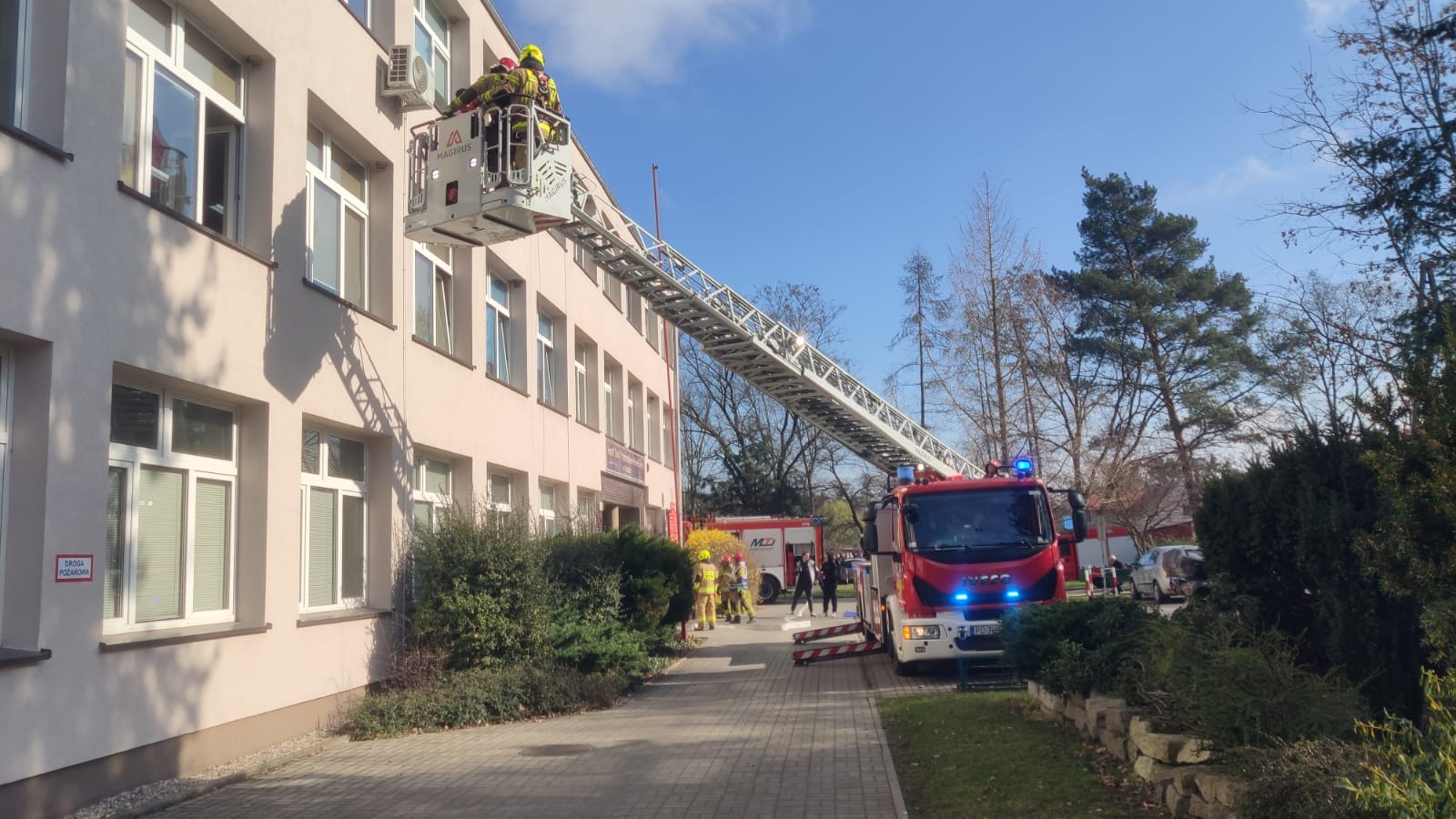 Założeniem ćwiczeń było przeprowadzenie próbnej ewakuacji przez pracowników szkoły oraz powiadomienie służb ratowniczych o pożarze w jednej z sal lekcyjnych. Po dotarciu na miejsce Kierujący Działaniem Ratowniczym otrzymał informacje, że po przeliczeniu wszystkich ewakuowanych brakuje dwóch nauczycieli. W tym celu przeszukano wszystkie pomieszczenia. W trakcie tych działań jedną osobę ewakuowano przy użyciu drabiny mechanicznej, a drugą ewakuowano z parteru szkoły z sali lekcyjnej. Osobom poszkodowanym udzielono udzielono kwalifikowanej pierwszej pomocy w miejscu bezpiecznym.