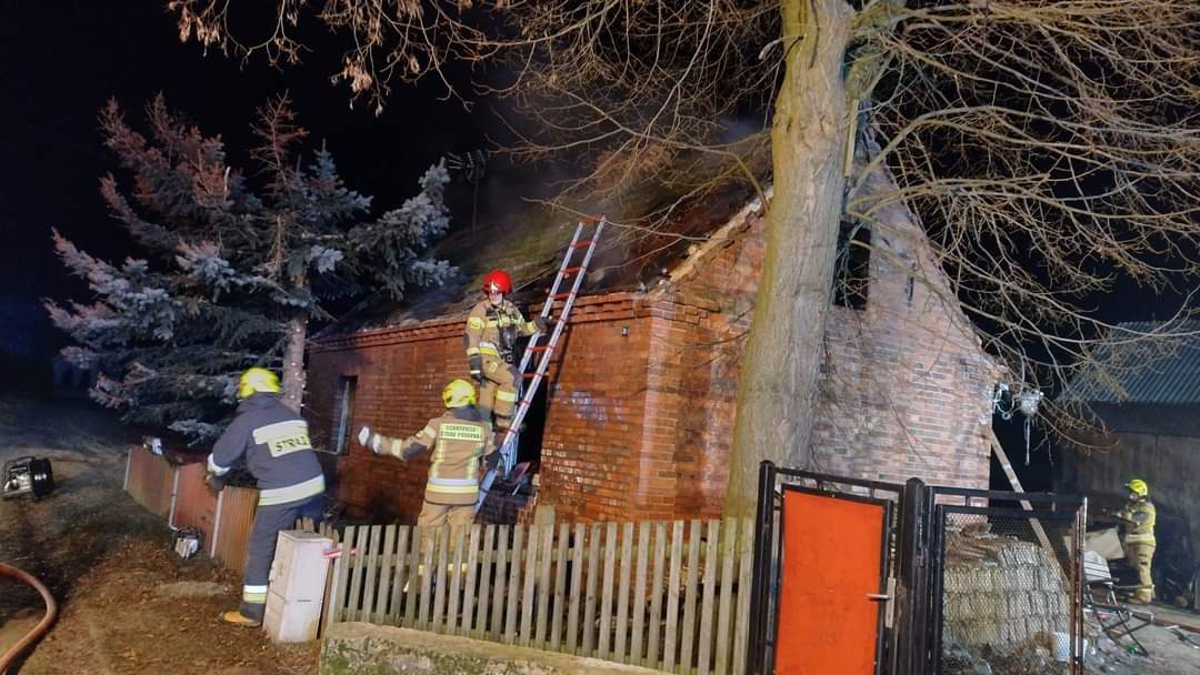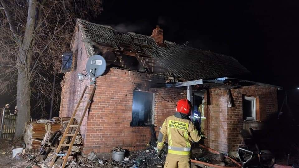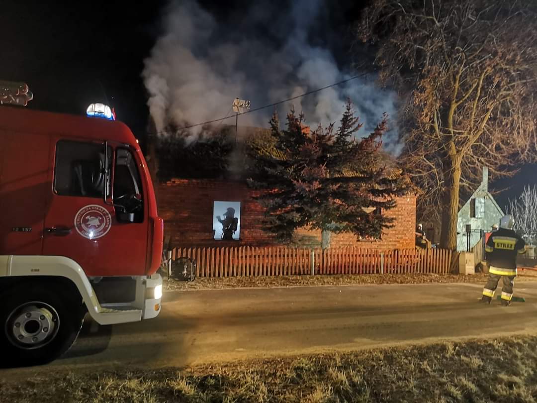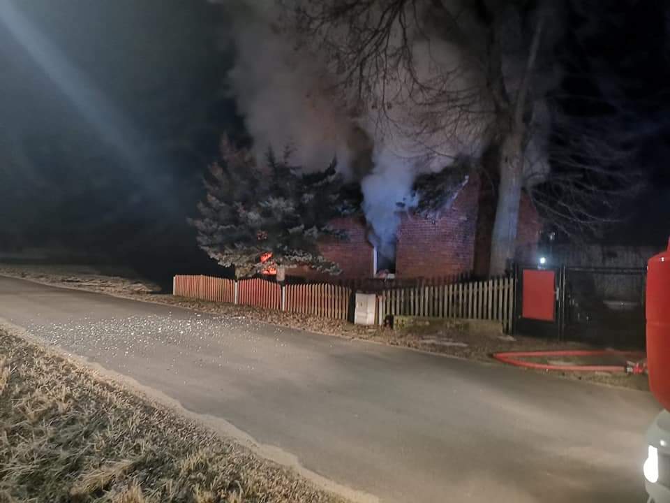 W dniu 02 marca 2023 roku o godzinie 01:14 do Stanowiska Kierowania Komendanta Powiatowego PSP w Jarocinie wpłynęło zgłoszenie o pożarze domu jednorodzinnego w miejscowości Kadziak. Do działań zadysponowano 5 zastępów straży pożarnej. Działania ratowników polegały na odłączeniu dopływu mediów do budynku, podaniu dwóch skutecznych prądów wody oraz udzieleniu kwalifikowanej pierwszej pomocy osobie poszkodowanej. Działania prowadzono w sprzęcie ODO. Miejsce przewietrzono i oddymiono.