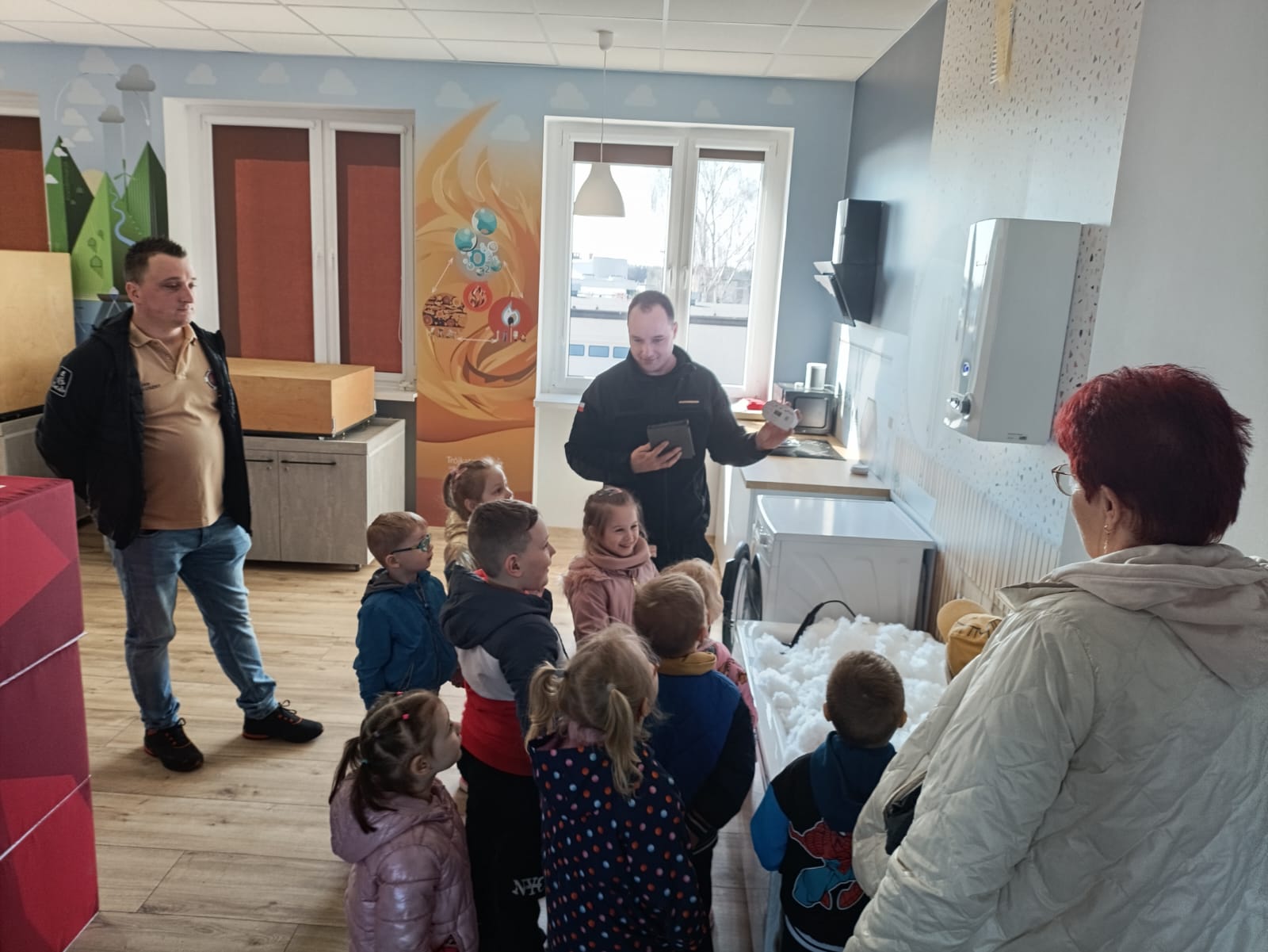 z niebezpieczeństwami pożarowymi oraz możliwościami zapobiegania im na bazie salki edukacyjnej Ognik. Strażacy zaprezentowali zasadę działania i alarmowania autonomicznej czujki tlenku węgla jednocześnie podkreślając istotę zabezpieczenia domów w autonomiczne czujki. Strażacy poruszyli również zagadnienia związane z pierwszą pomocą oraz zachowaniami ekologicznymi podczas okresów wakacyjnych. Następnie strażacy zaprezentowali sprzęt oraz pojazdy strażackie, które znajdują się w jednostce ratowniczo-gaśniczej. Największe zainteresowanie wśród zwiedzających dzieci wzbudziły zawody w strącaniu słupków ostrzegawczych prądem wody z linii gaśniczej.