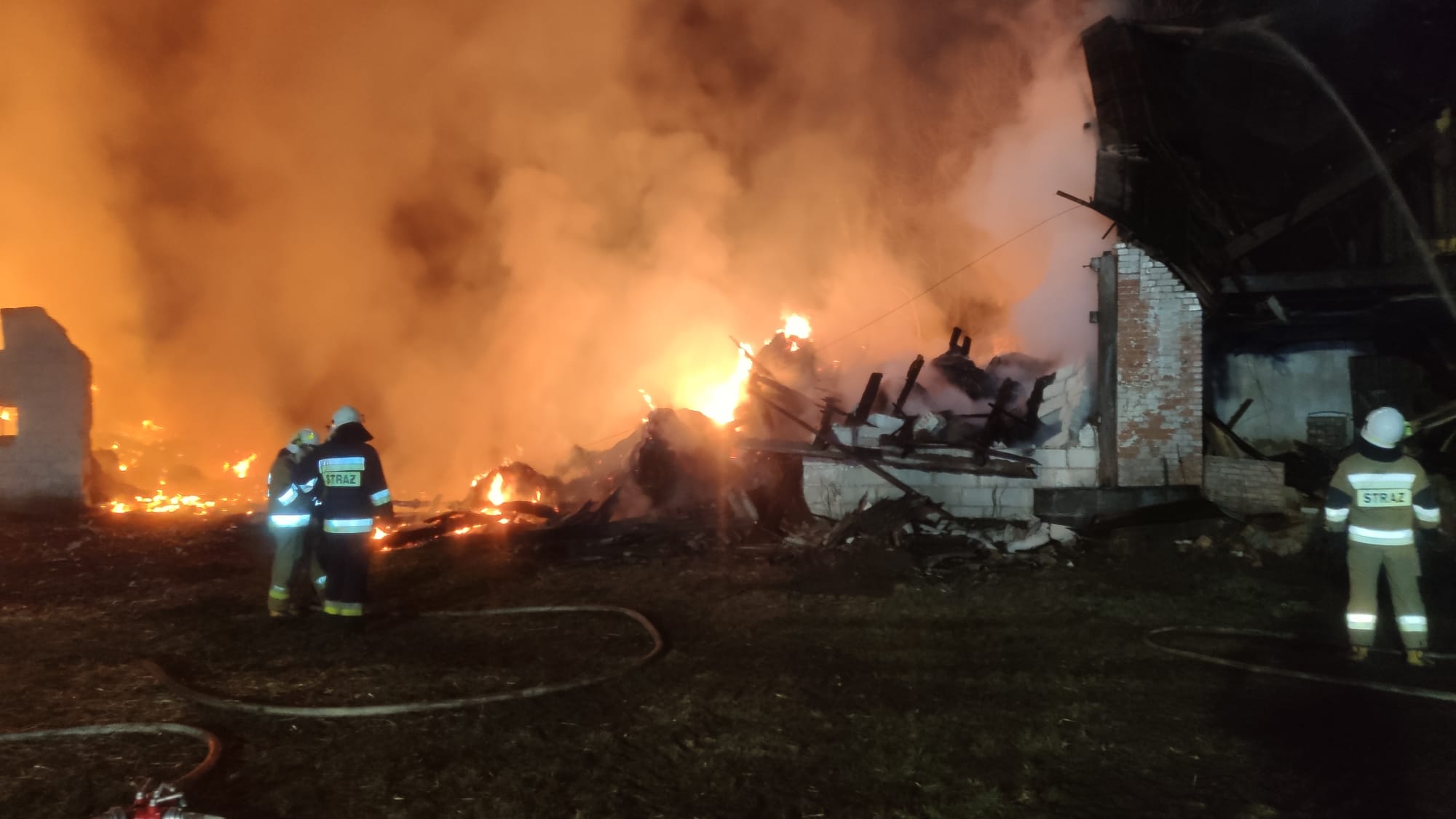 Z uwagi na rozmiar pożaru, pierwsze działania skupiły się na obronie niepalącej się wiaty, a dopiero po dotarciu kolejnych zastępów podjęto działania gaśnicze palącej się części, będącej budynkiem stodoły. Strażacy realizowali również działania polegające na dostarczaniu wody potrzebnej do gaszenia z okolicznych miejscowości. Po lokalizacji pożaru nadpaloną słomę wywożono i dogaszano na pobliskim placu.