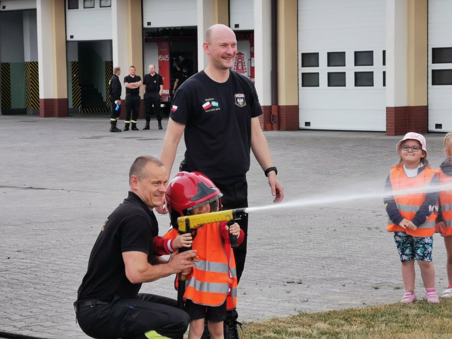 Strażacy opowiedzieli dzieciom na czym polega specyfika zawodu strażaka oraz zaprezentowali sprzęt będący na wyposażeniu Jednostki Ratowniczo-Gaśniczej. Wśród dzieci sprawdzono także znajomość numerów alarmowych i przedstawiono zasady zgłaszania zdarzeń na numery alarmowe. Na zakończenie największą radość dzieciom sprawiło podawanie prądu wody.