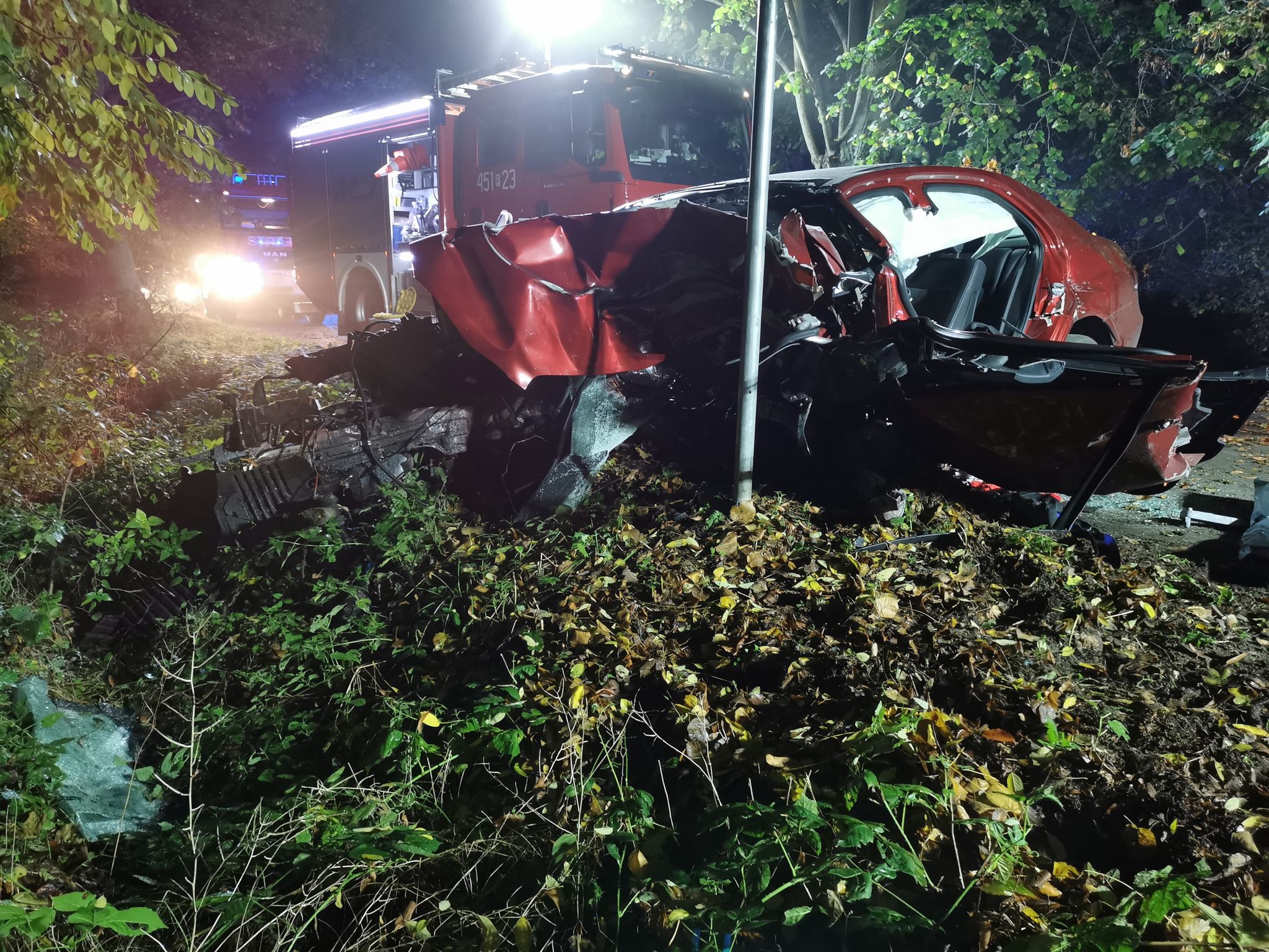 W dniu 1 listopada 2020 roku o godzinie 2:40 Stanowisko Kierowania Komendanta Powiatowego w Jarocinie otrzymało zgłoszenie o wypadku samochodu osobowego, który uderzył w drzewo na drodze Wilkowyja-Tarce. Na miejsce zadysponowane zostały trzy zastępy straży pożarnej. Po dotarciu na miejsce zdarzenia zastano rozbity samochód osobowy z zakleszczonym wewnątrz kierowcą. Działania ratowników polegały na zabezpieczeniu terenu prowadzonych działań, wykonaniu dostępu do osoby poszkodowanej przy użyciu narzędzi hydraulicznych. Kierowca pojazdu został przekazany przybyłemu na miejsce zdarzenia ZRM, niestety na skutek zbyt rozległych obrażeń stwierdzono zgon mężczyzny. Po wykonaniu czynności dochodzeniowych prowadzonych przez policję pod nadzorem prokuratora, wyciekłe płyny eksploatacyjne wraz z pozostałościami powypadkowymi usunięto z jezdni. Na miejsce zdarzenia przybył Komendant Powiatowy PSP w Jarocinie.