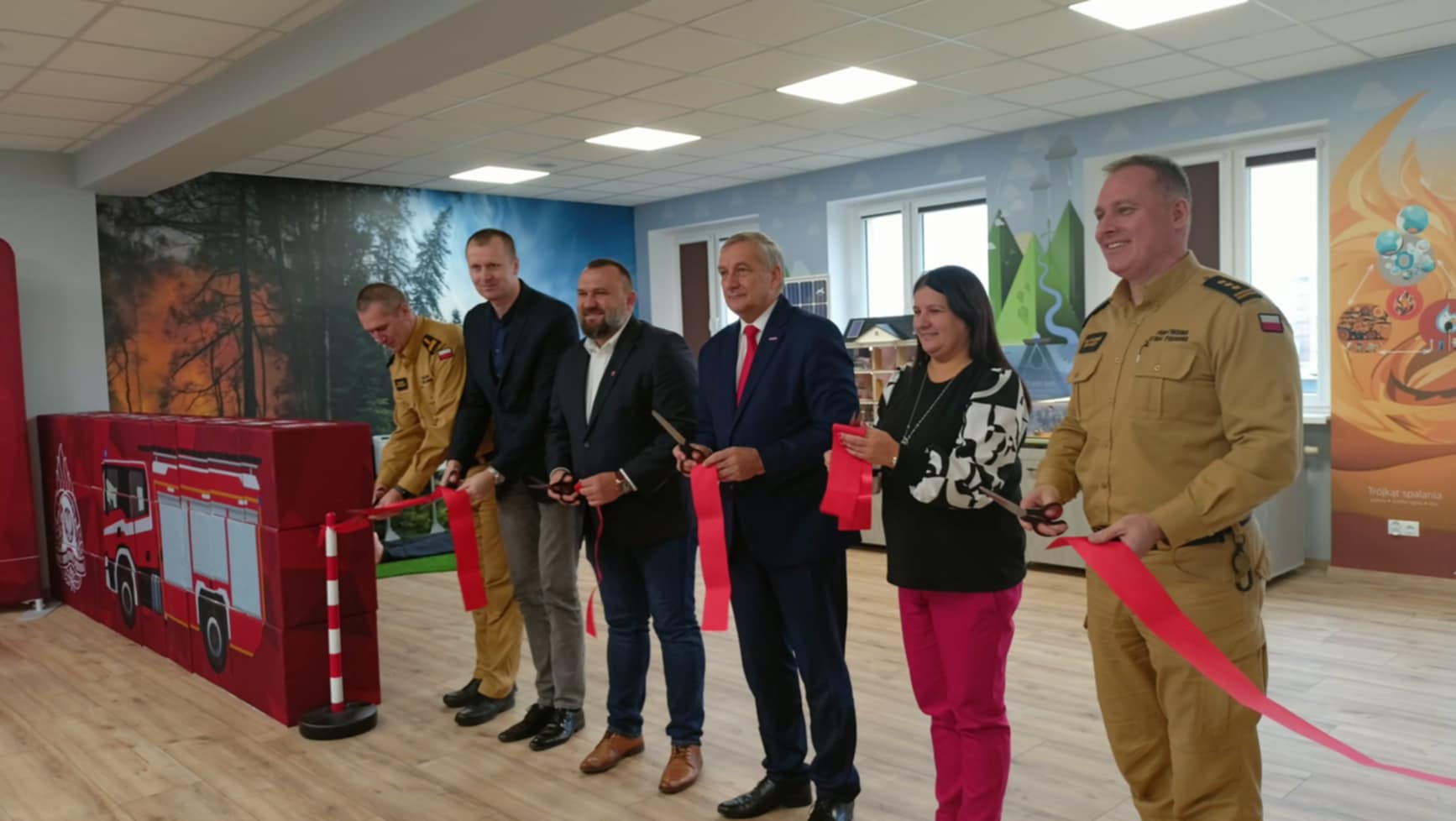 Przybyłych gości przywitał Komendant Powiatowy PSP w Jarocinie st. bryg. Tomasz Krawczyk. Po krótkiej przemowie i podziękowaniach zaproszeni goście dokonali uroczystego przecięcia wstęgi, które symbolizowało otwarcie nowej ścieżki edukacyjnej. Następnie głos zabrali przybyli na uroczystość goście. Na zakończenie wszystkim zgromadzonym przedstawiono możliwości i funkcjonalność oraz efekty dźwiękowe i świetlne, jakie można zaprezentować podczas realizacji spotkań z najmłodszymi adeptami pożarnictwa.