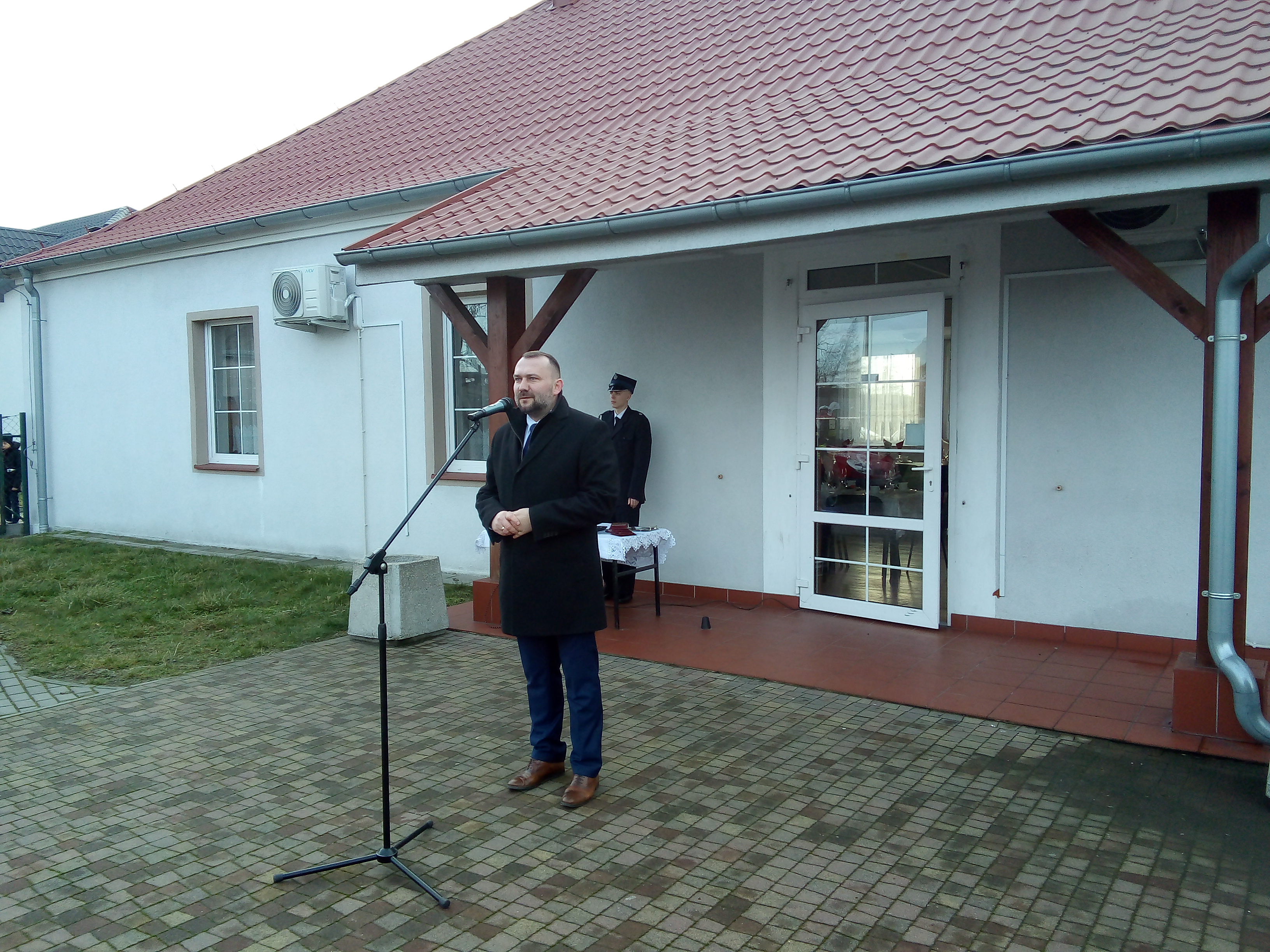 Po złożonych gratulacjach przez zaproszonych gości głos zabrał Komendant Powiatowy PSP w Jarocinie bryg. Tomasz Krawczyk, który również przyłączył się do wcześniejszych gratulacji i złożył podziękowania dla: Sekretarza Stanu w Kancelarii Prezesa Rady, Komendanta Głównego Państwowej Straży Pożarnej, Wielkopolskiego Komendanta Wojewódzkiego Państwowej Straży Pożarnej za wspieranie działalności jednostek OSP poprzez m.in. doposażanie w pojazdy i specjalistyczny sprzęt jednostek OSP.