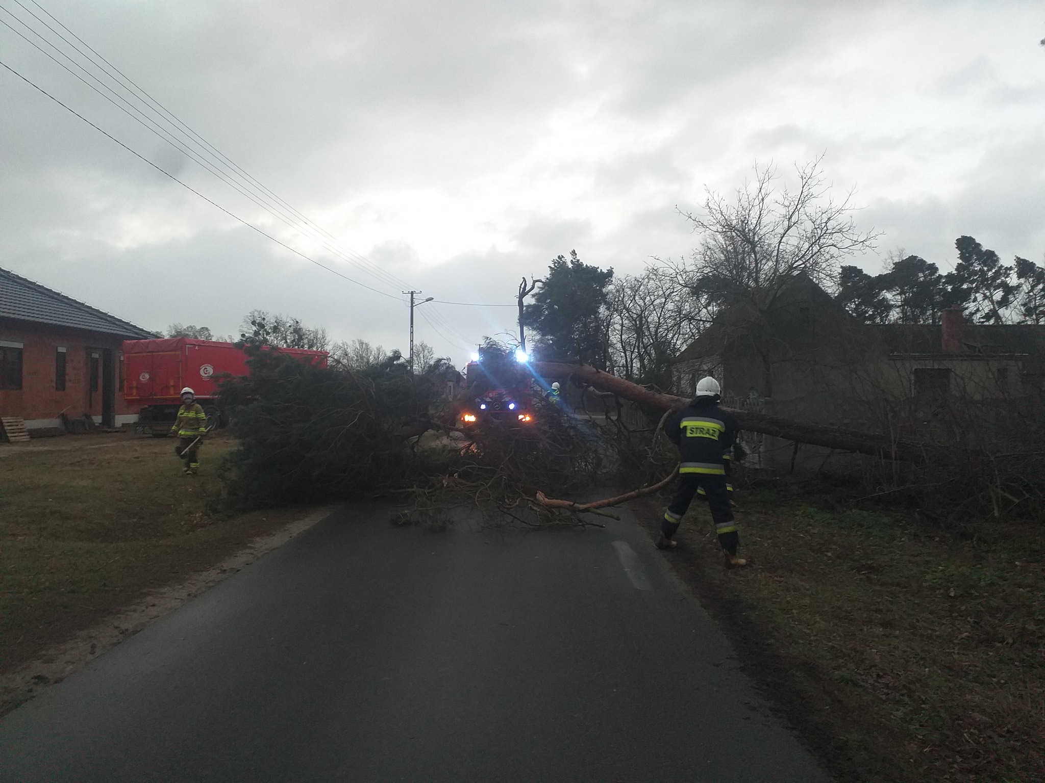 Tego samego dnia powiat jarociński dotknęły skutki wichur. Podczas weekendu odnotowano blisko 60 zdarzeń. Strażacy najczęściej wjeżdżali do powalonych drzew, które blokowały przejazd. Wiatrołomy uszkodziły budynki mieszkalne, gospodarcze oraz instalacje fotowoltaiczne. Działania strażaków polegały przede wszystkim na usuwaniu powalonych drzew z ciągów komunikacyjnych. Natomiast w budynkach, w których zostały uszkodzone i zerwane dachy nasze działania w głównej mierze polegały na zabezpieczeniu elementów poszycia dachu stwarzające zagrożenie oraz zabezpieczeniu obiektów przy pomocy plandek. Odnotowano 3 zdarzenia związane z uszkodzeniem paneli fotowoltaicznych, które w skutek silnego wiatru uległy przemieszczeniu lub spadły z dachu. Ratownicy po przybyciu na miejsce zdarzenia odłączyli zasilanie w instalacji oraz usunęli zagrożenie.