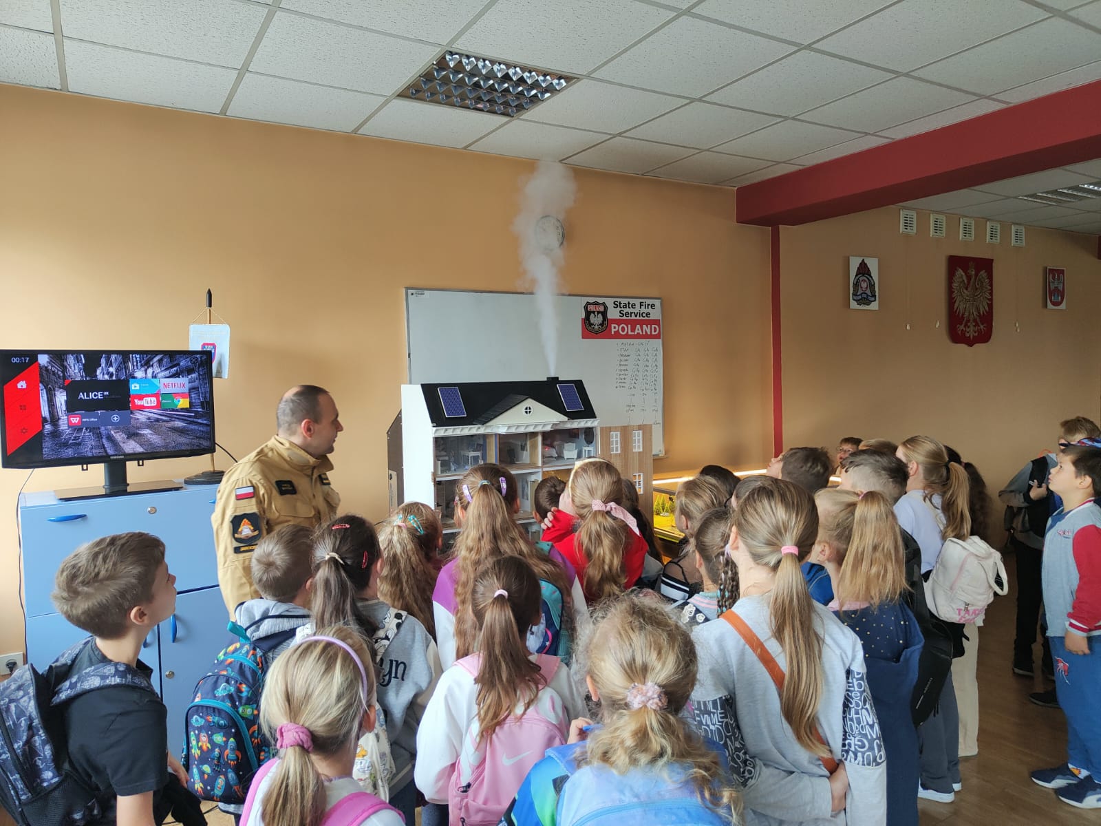 W dniu 02 października 2023 roku Komendę Powiatową Państwowej Straży Pożarnej w Jarocinie odwiedzili uczniowie z klas I, II i III Szkoły podstawowej im. Stanisława Mikołajczyka w Borzęcicach. Strażacy opowiedzieli dzieciom na czym polega specyfika zawodu strażaka oraz zaprezentowali sprzęt będący na wyposażeniu Jednostki Ratowniczo-Gaśniczej. U dzieci sprawdzono także znajomość numerów alarmowych i przedstawiono zasady zgłaszania zdarzeń na numery alarmowe. Na zakończenie udzielono wskazówek dzieciom związanych z bezpieczeństwem przeciwpożarowym i omówiono zjawiska pożarowe na Mobilnym Symulatorze Pożarów.