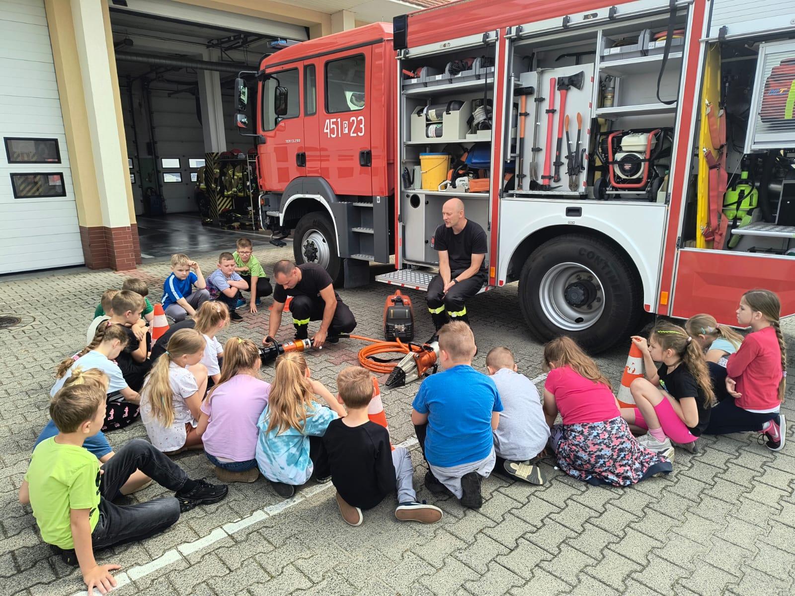 10 czerwca 2024 roku Komendę Powiatową Państwowej Straży Pożarnej w Jarocinie odwiedzili uczniowie klasy II ze Szkoły Podstawowej nr 3 im. ks. Jana Twardowskiego w Jarocinie. Strażacy przedstawili dzieciom sprzęt wykorzystywany w działaniach ratowniczych oraz opowiedzieli o specyfikacji zawodu strażaka. Na zakończenie udzielono wskazówek dzieciom związanych z bezpieczeństwem przeciwpożarowym i omówiono zjawiska pożarowe na Mobilnym Symulatorze Pożarów.