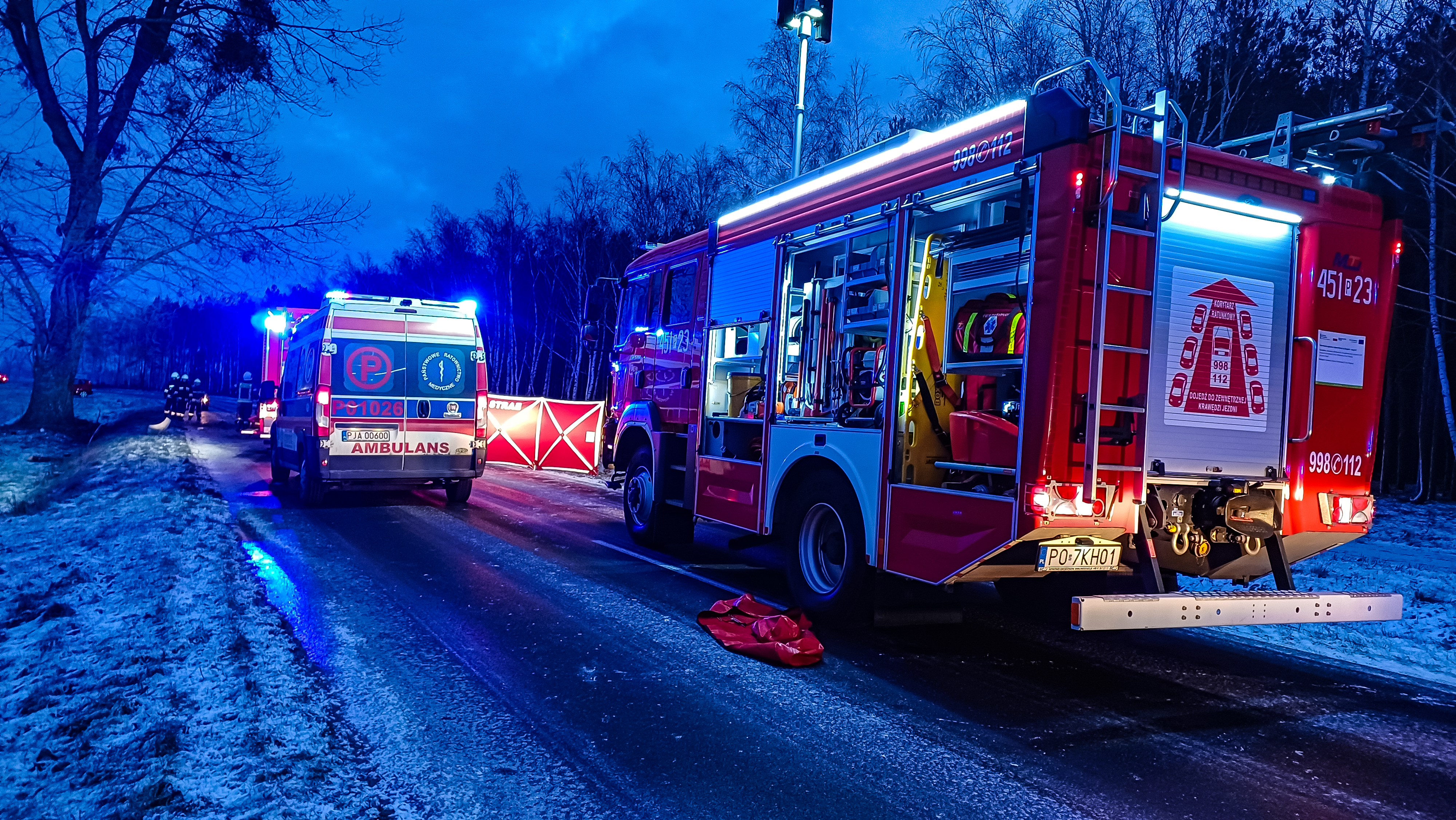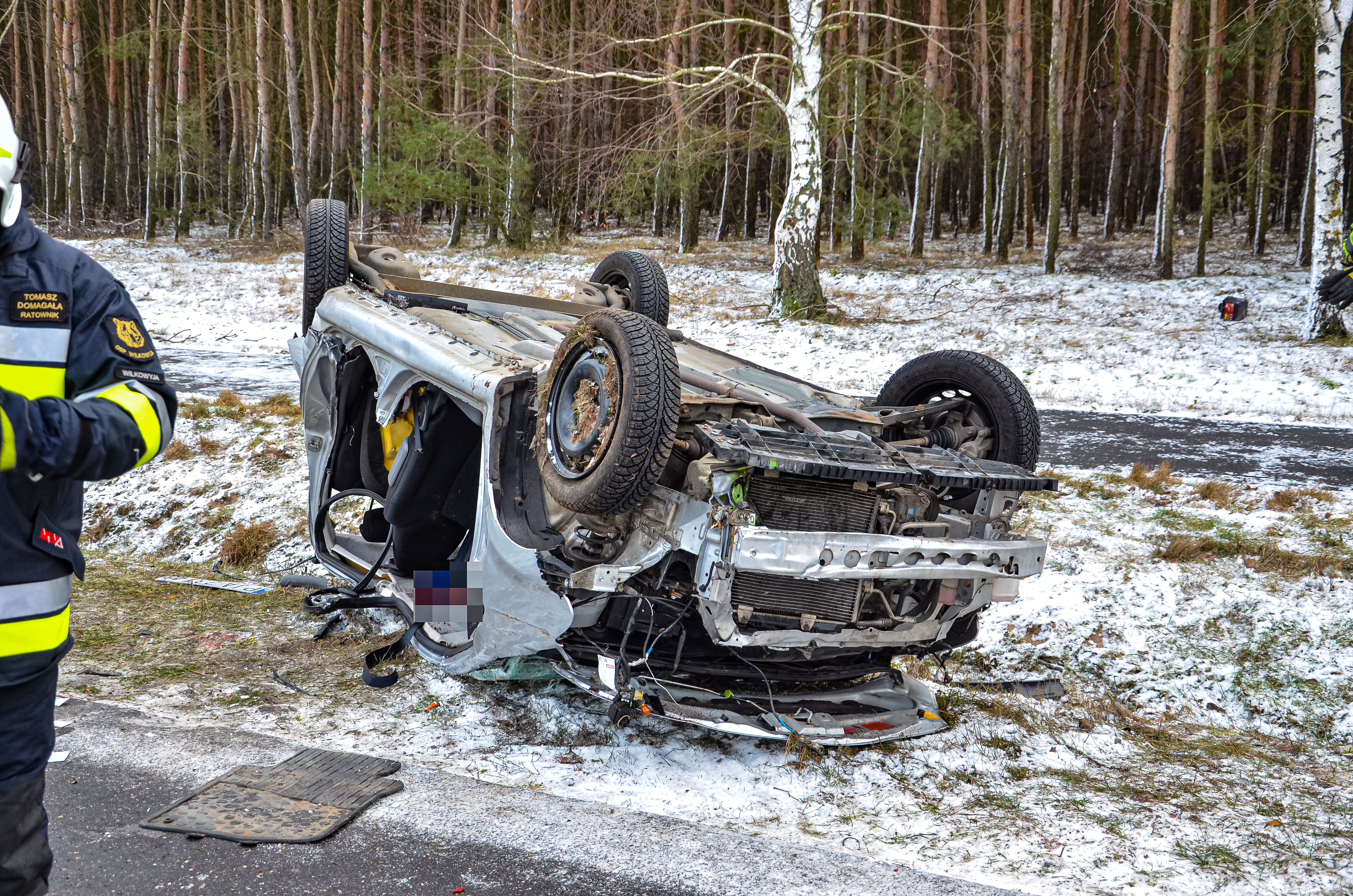 Ze zgłoszenia wynikało, że w pojeździe znajduje się zakleszczony kierowca, który potrzebuje pomocy medycznej. Na miejsce zadysponowano dwa zastępy z JRG Jarocin, OSP Wilkowyja i ZRM oraz Policję. Po przyjeździe na miejsce zdarzenia zabezpieczono teren prowadzonych działań. Za pomocą odpowiednich technik dotarcia, ratownicy wykonali dostęp do osoby poszkodowanej przy pomocy narzędzi hydraulicznych. Po ewakuacji i ocenie stanu, ratownicy podjęli natychmiastową reanimację poszkodowanej kobiety. Pomimo prowadzonej resuscytacji krążeniowo-oddechowej ratownik medyczny stwierdził zgon kobiety. W trakcie prowadzonych działań ruch na drodze powiatowej był wstrzymany. Na miejscu zdarzenia czynności dochodzeniowo - śledcze prowadziła policja wraz z prokuratorem, które miały na celu ustalenie okoliczności zaistniałego zdarzenia. Po ponad czterech godzinach zastępy wróciły do bazy.
