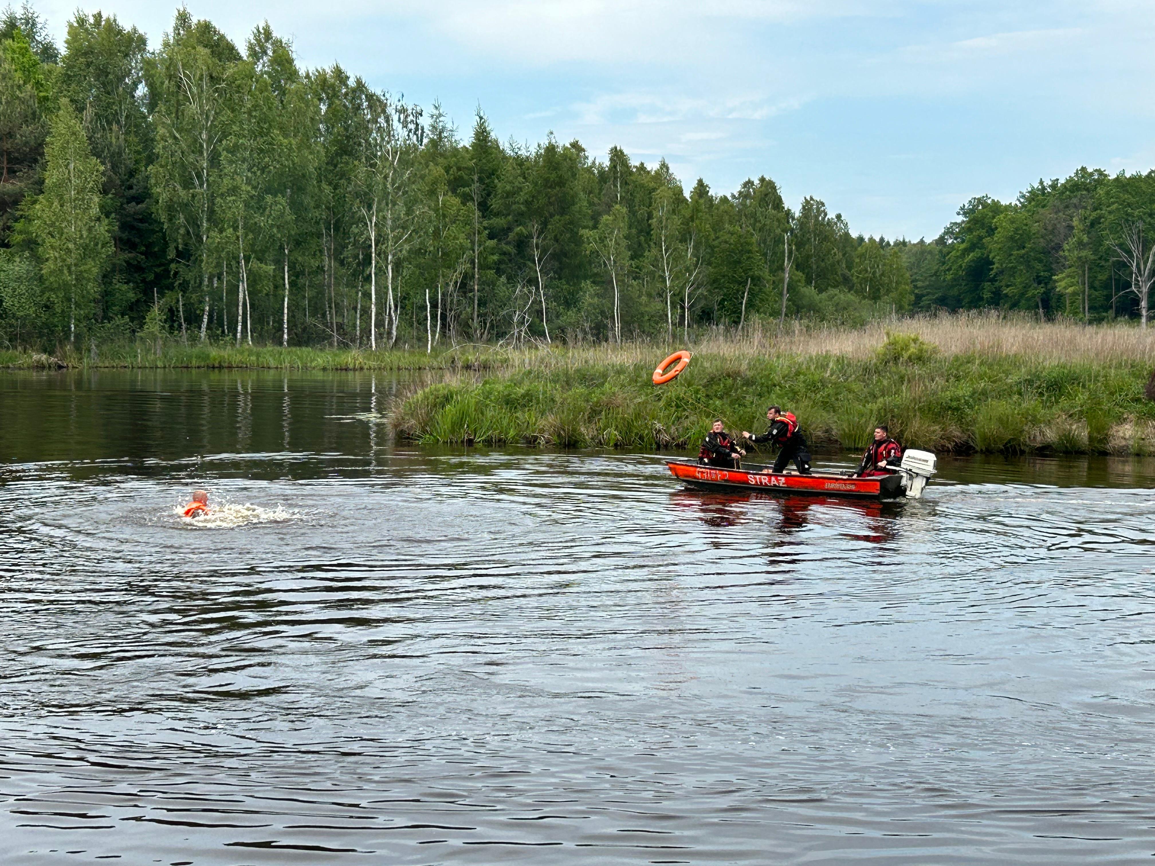 - ewakuacja osób poszkodowanych za pomocą dostępnego sprzętu z linii brzegowej, w tym celu przećwiczono rzuty: kołem ratowniczym oraz rzutką ratowniczą.