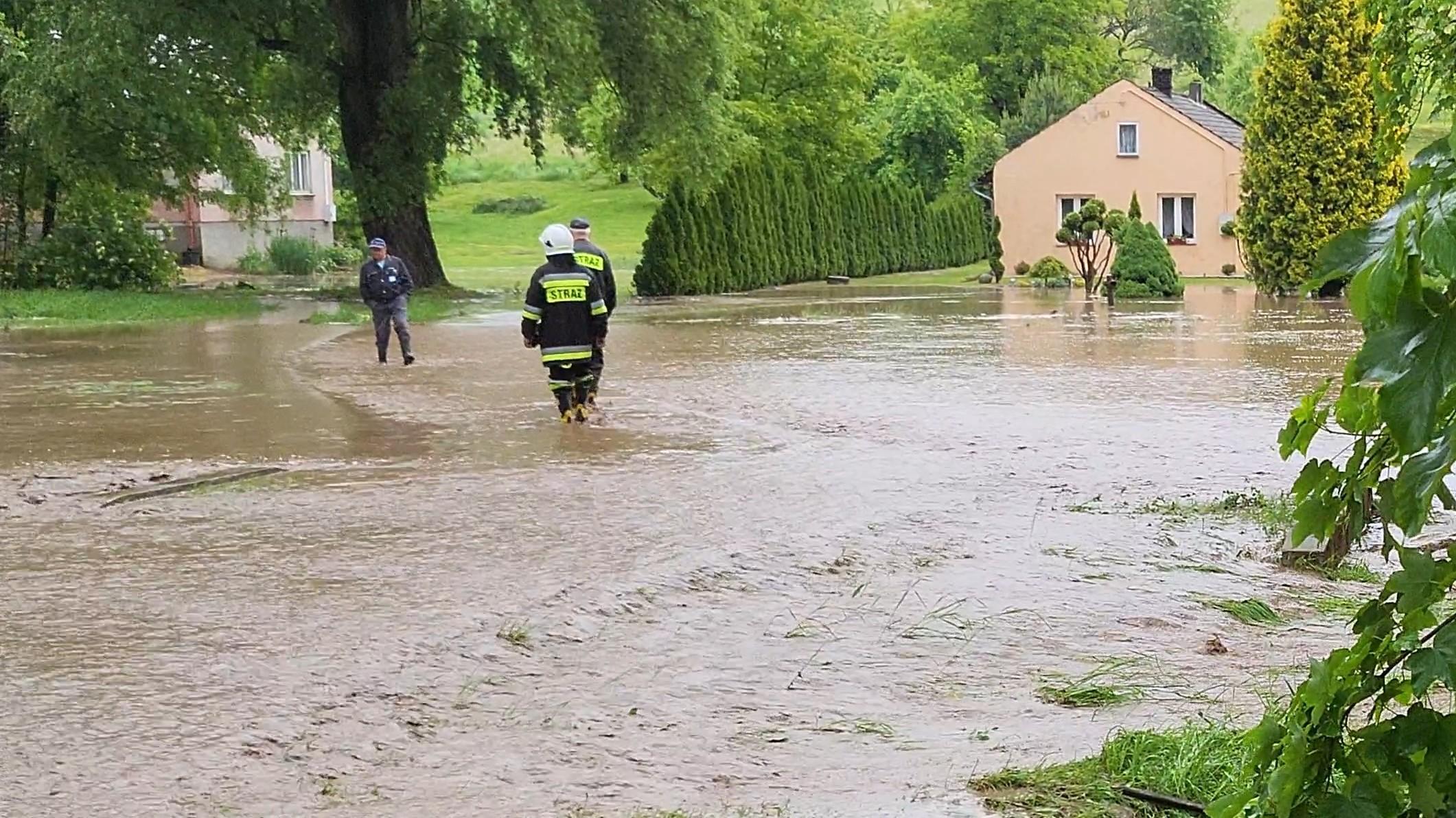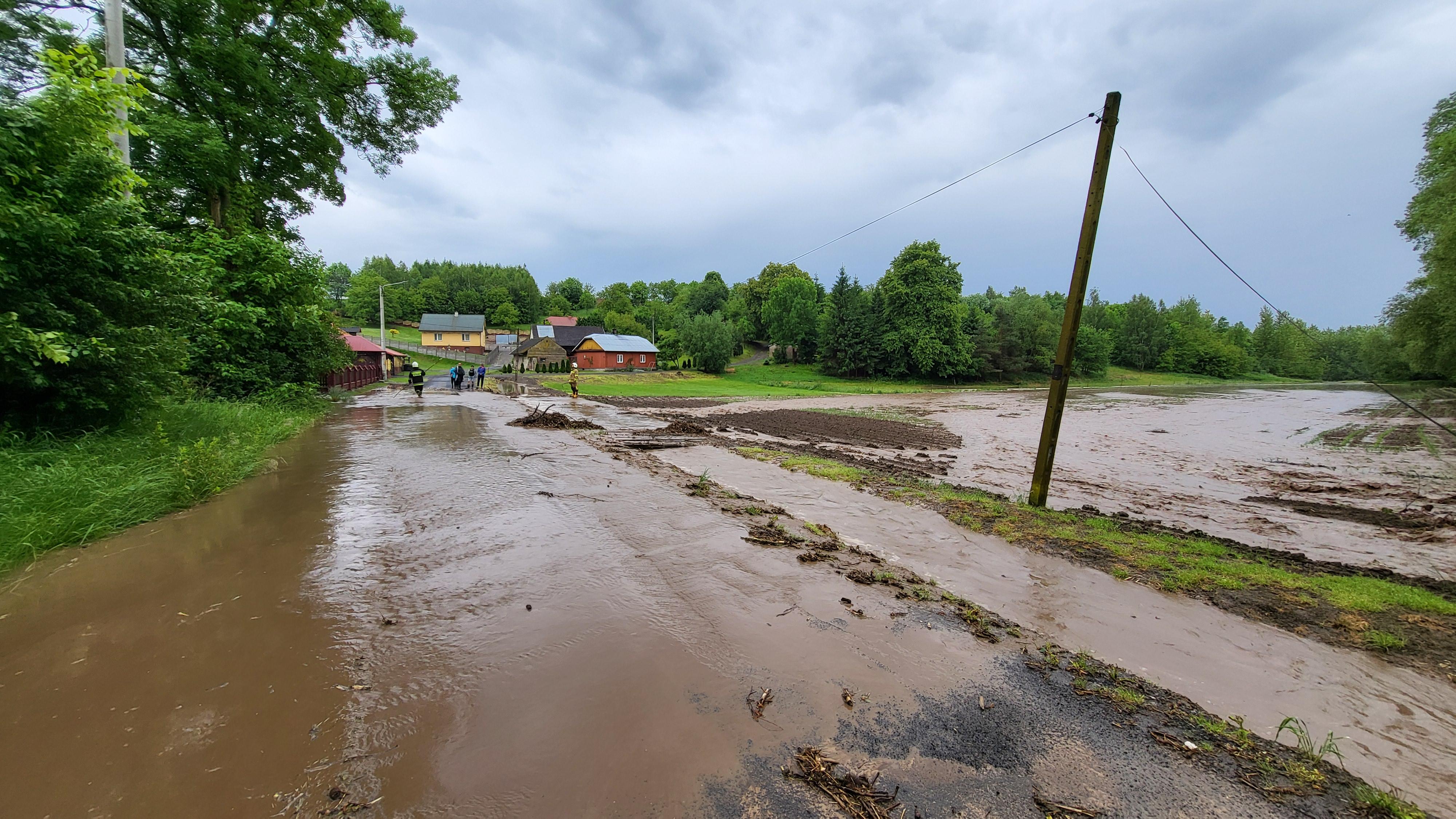 Nagłe i intensywne opady deszczu występujące w poniedziałek w godzinach popołudniowych w powiecie jarosławskim przyczyniły się do gwałtownego podniesienia stanów wód w potokach i przydrożnych rowach powodując realne zagrożenie dla budynków mieszkalnych, gospodarstw rolnych oraz infrastruktury drogowej.