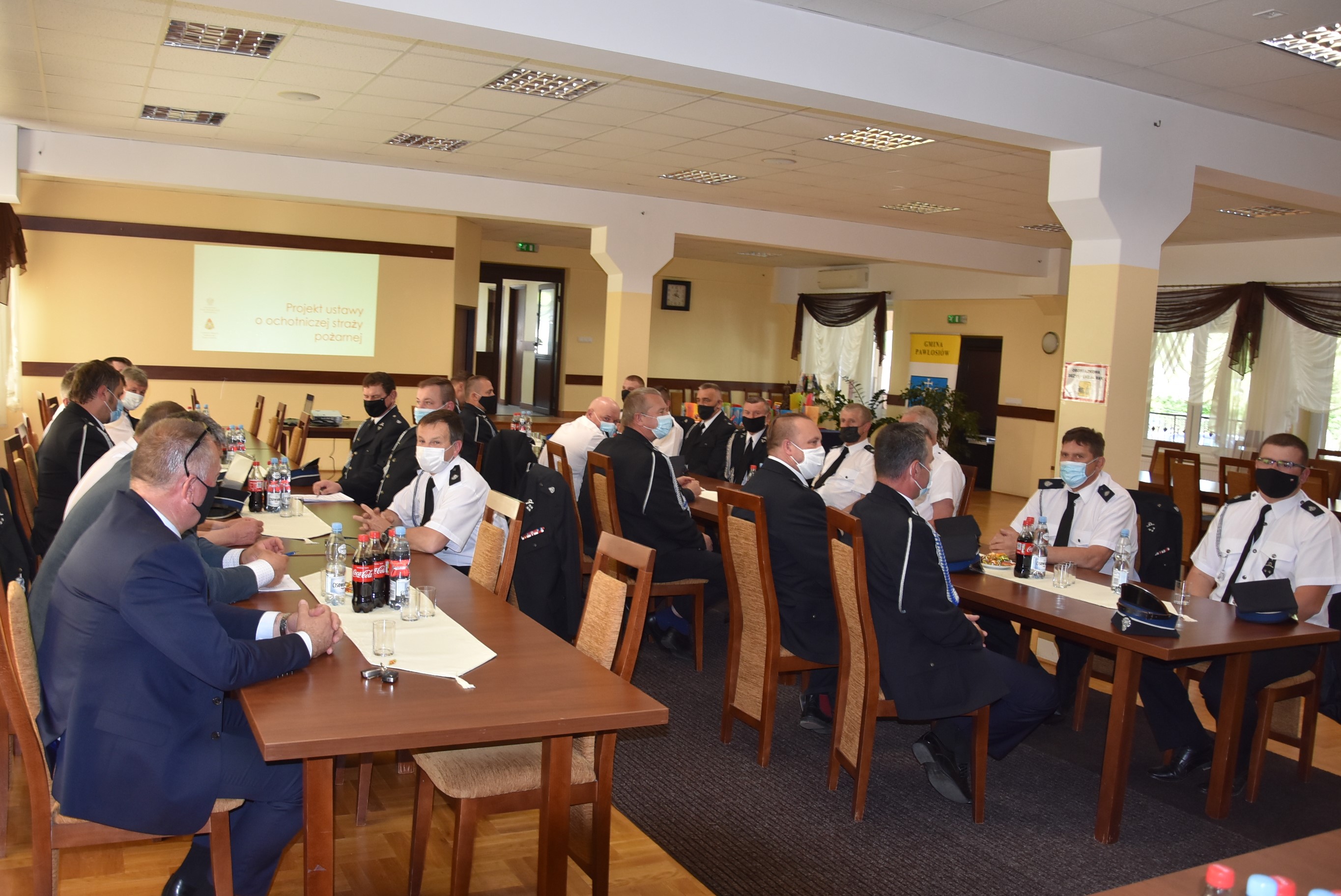 W dniu 17.05.2021 r. w Urzędzie Gminy w Pawłosiowie odbyły się konsultacje społeczne Ustawy o Ochotniczej Straży Pożarnej, w których udział wzięli przedstawiciele jednostek OSP z terenu powiatu jarosławskiego. Spotkanie prowadził Zastępca Podkarpackiego Komendanta Wojewódzkiego PSP st. bryg. Daniel Dryniak wraz z Komendantem Powiatowym PSP w Jarosławiu bryg. Krzysztofem Kowalem. Gospodarzem spotkania był Wójt Gminy Pawłosiów Mariusz Reń, a w naradzie brał również udział Prezes Zarządu Powiatowego ZOSP RP dh Stanisław Górski. Konsultacje rozpoczęły się od przemówienia st. bryg. Daniela Dryniaka, który szczegółowo omówił założenia projektu ustawy o OSP. W dalszej częsci głos zabrali zebrani druhowie, którzy przedstawiali swoje spostrzeżenia i uwagi dotyczące omawianego projektu. Zgłoszone przez druhów uwagi zostały zaprotokołowane i zostaną wzięte pod uwagę przy dalszych pracach nad ustawą.